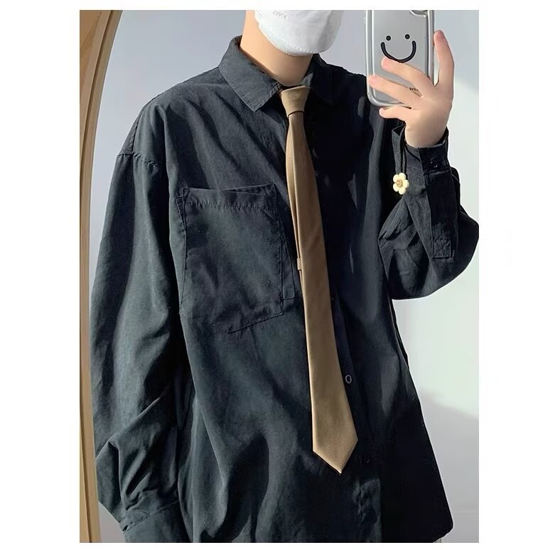 202 년 긴 소매 셔츠 일본 스타일 홍콩 스타일 느슨한 셔츠 소년 봄과 가을 유행 올 매치 캐주얼 셔츠스토어 가기