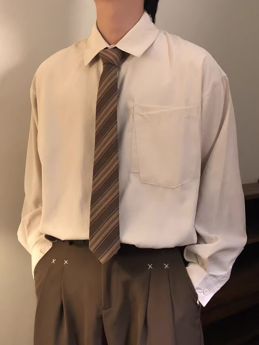 202 년 긴 소매 셔츠 일본 스타일 홍콩 스타일 느슨한 셔츠 소년 봄과 가을 유행 올 매치 캐주얼 셔츠