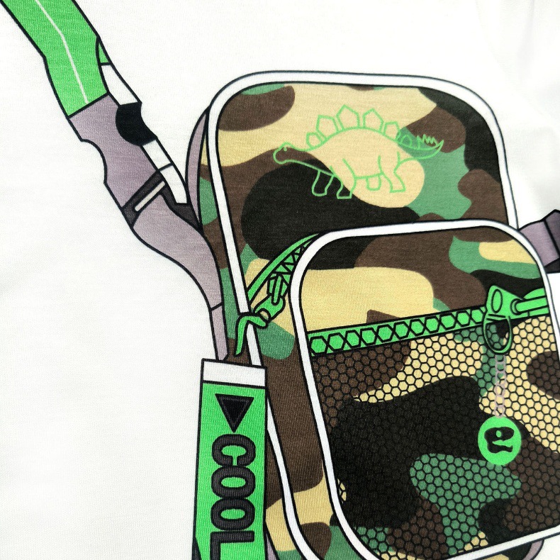 아마존 여름 새로운 크로스 국경 키즈 세트 배낭 인쇄 짧은 소매 티셔츠 위장 반바지 소년 세트