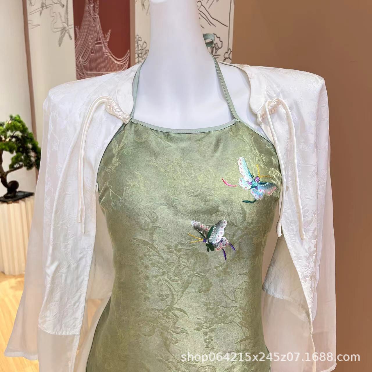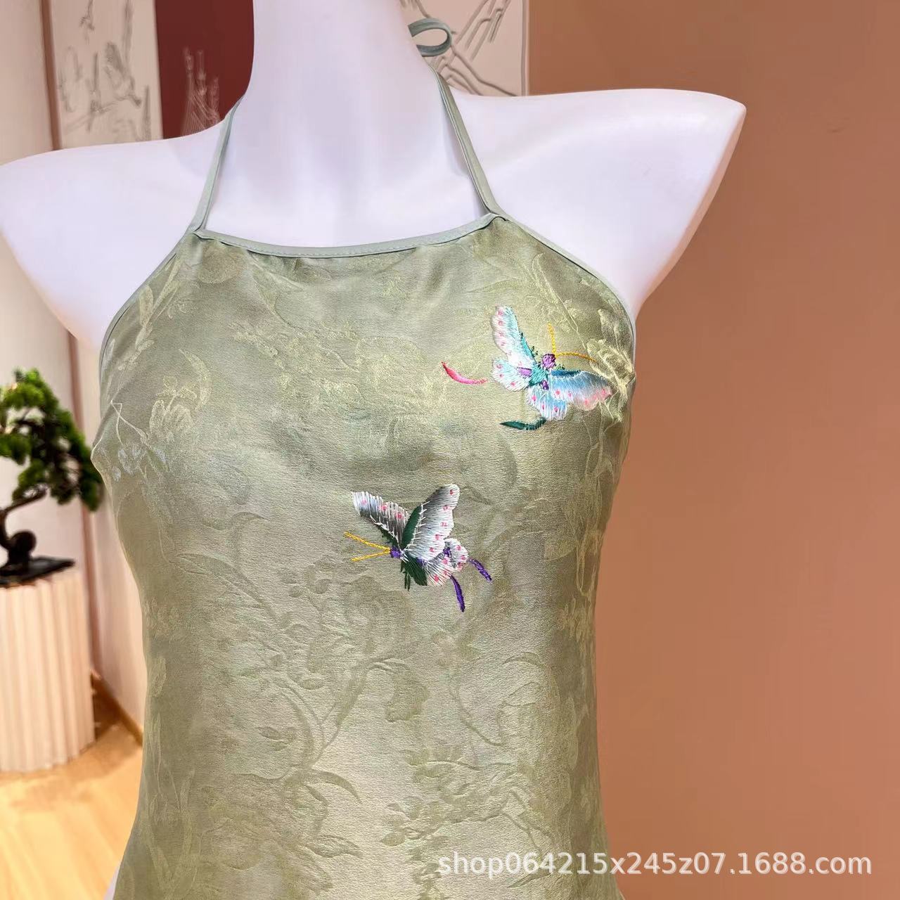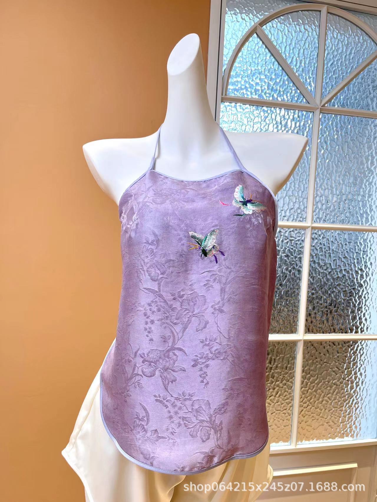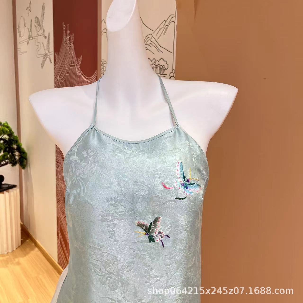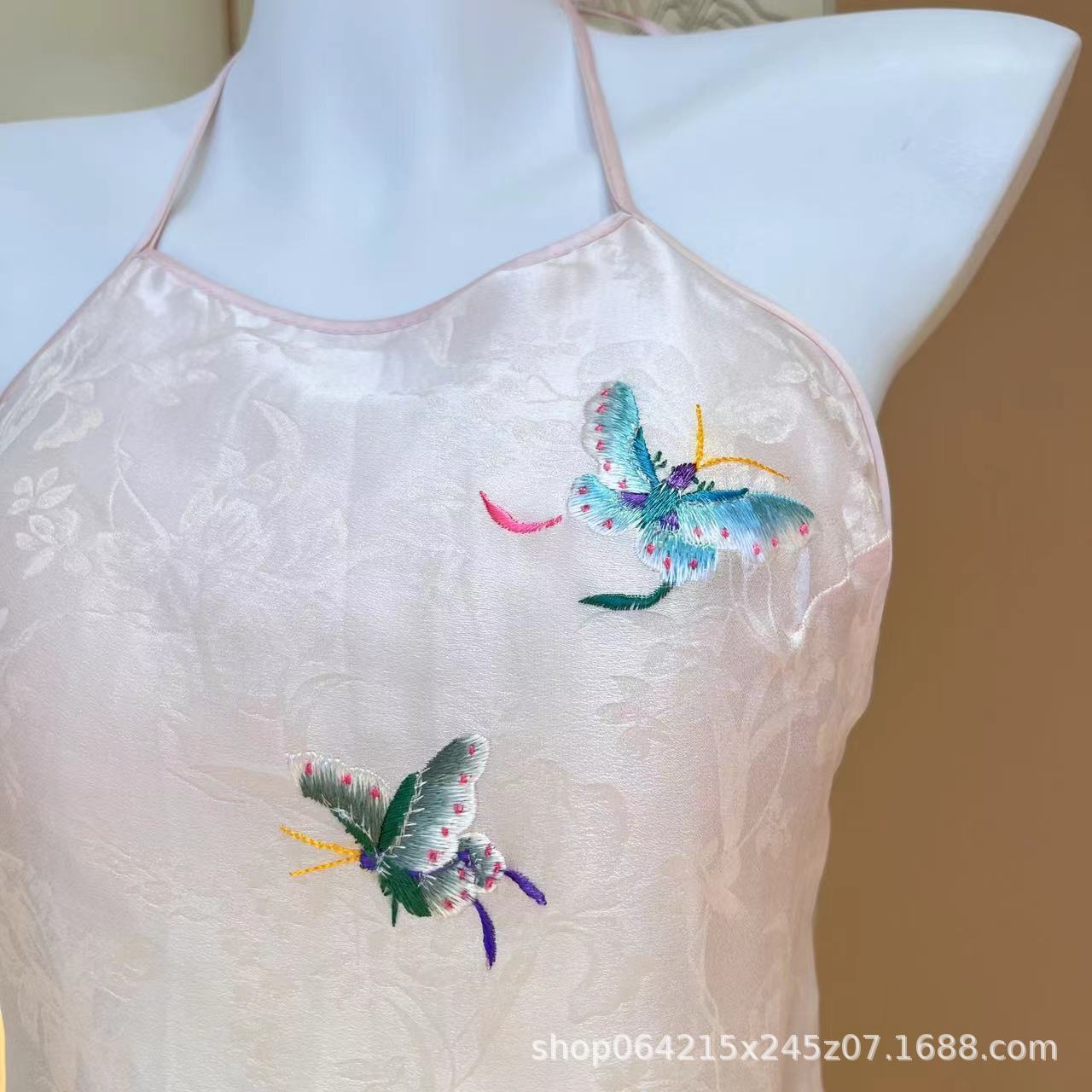 플러스 사이즈 자수 가슴 패드 벨리 밴드 섹시 파자마 여성 성인 중국 자수 골동품 속옷 백리스 얇은 슬링