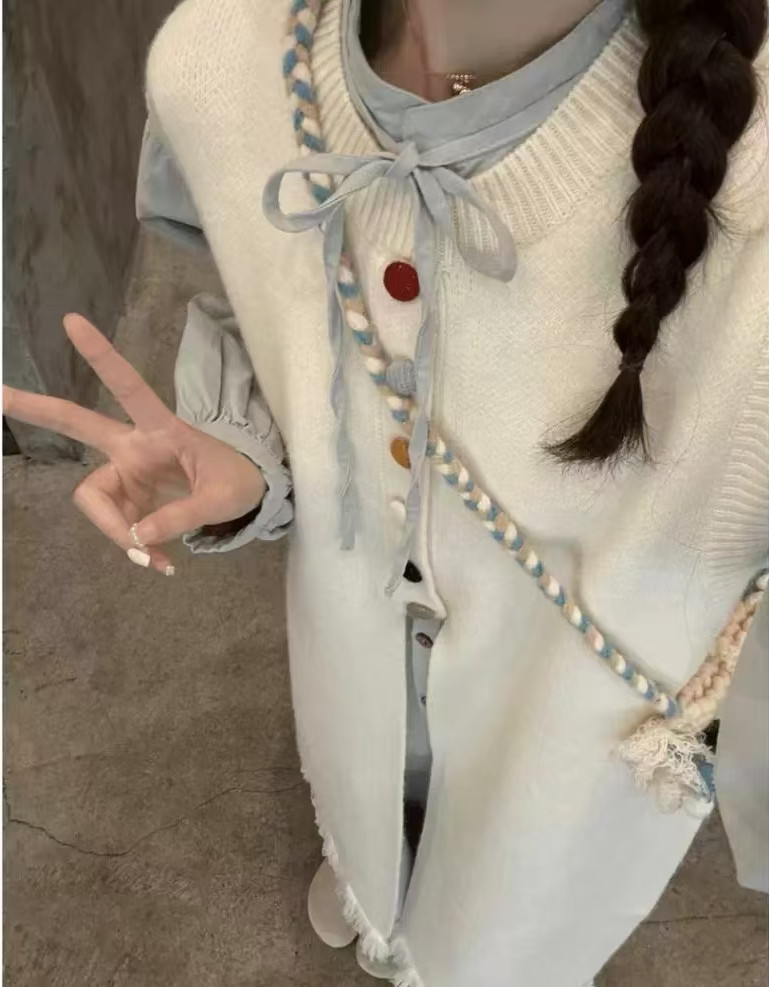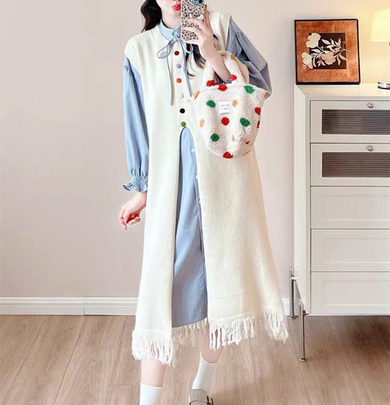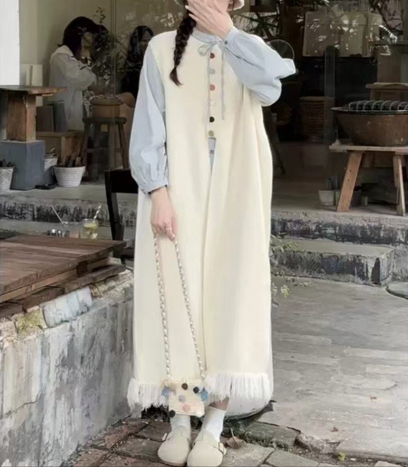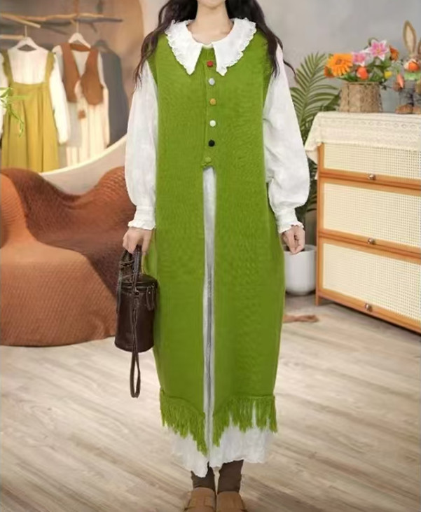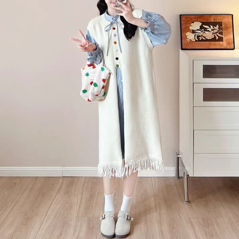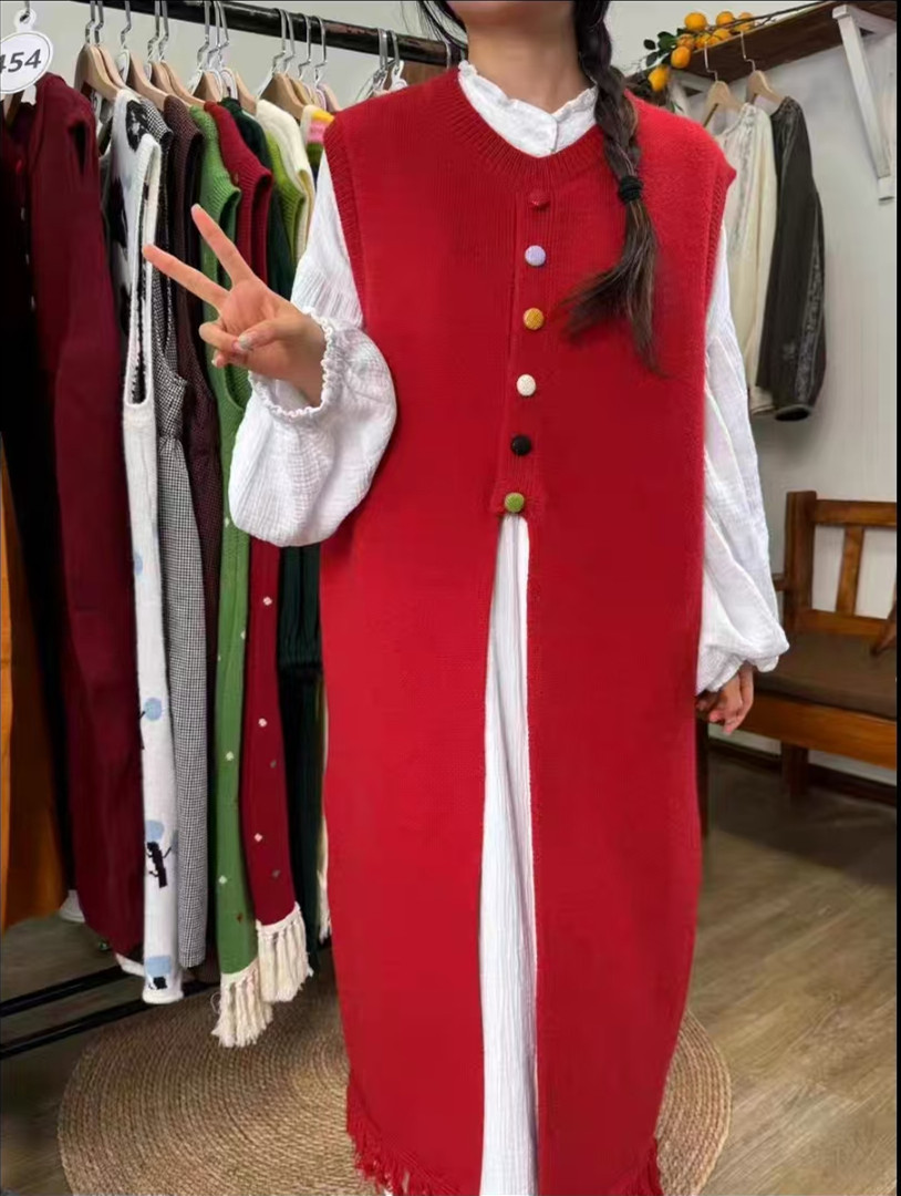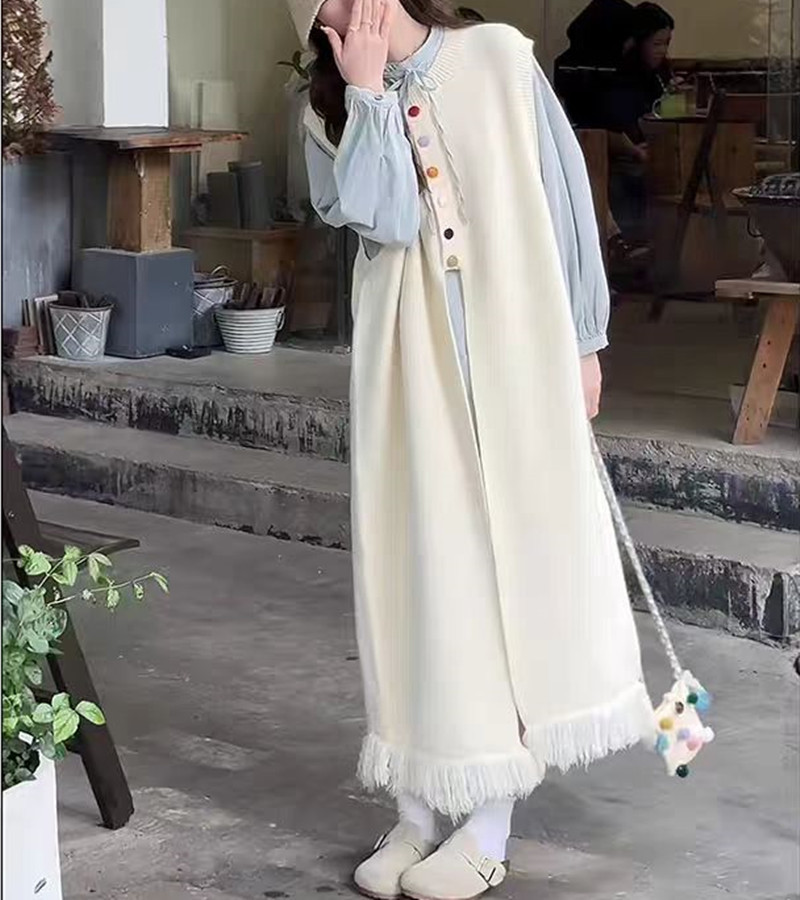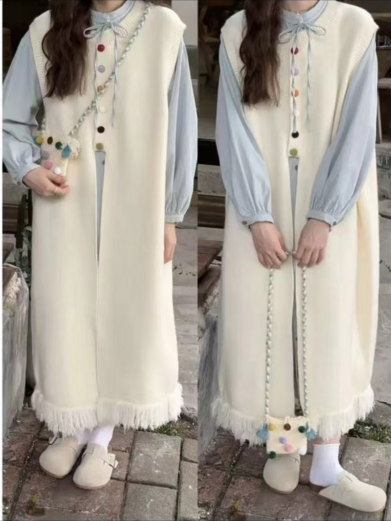 2024 가을 겨울 새로운 여성 긴 니트 조끼 여성 한국식 라운드 넥 게으른 스타일 디자인 스웨터 조끼 트렌디스토어 가기
