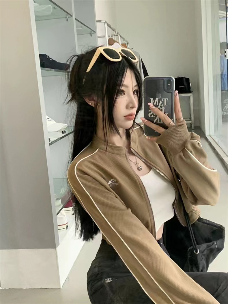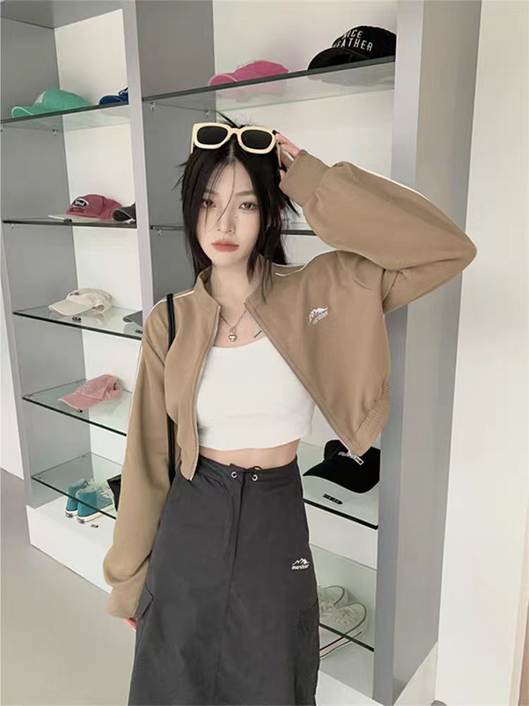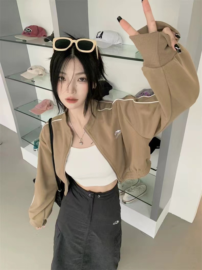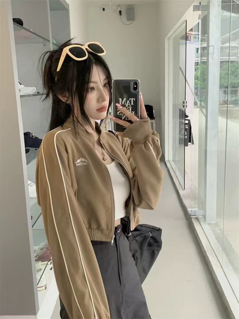 미국 레트로 어깨 긴팔 스포츠 짧은 스웨터 코트 여성의 가을 작은 소녀 재킷 카디건 탑스토어 가기