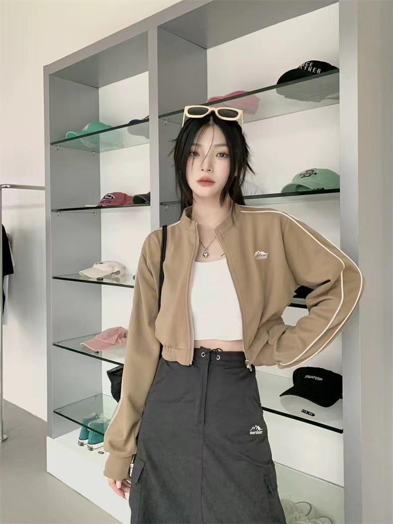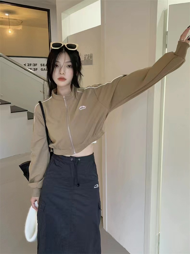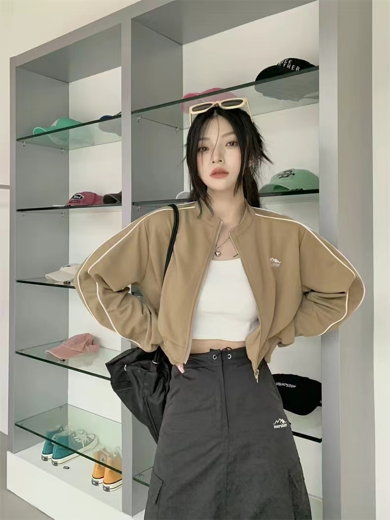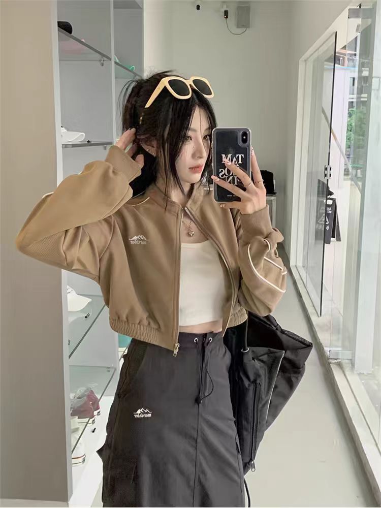 미국 레트로 어깨 긴팔 스포츠 짧은 스웨터 코트 여성의 가을 작은 소녀 재킷 카디건 탑스토어 가기