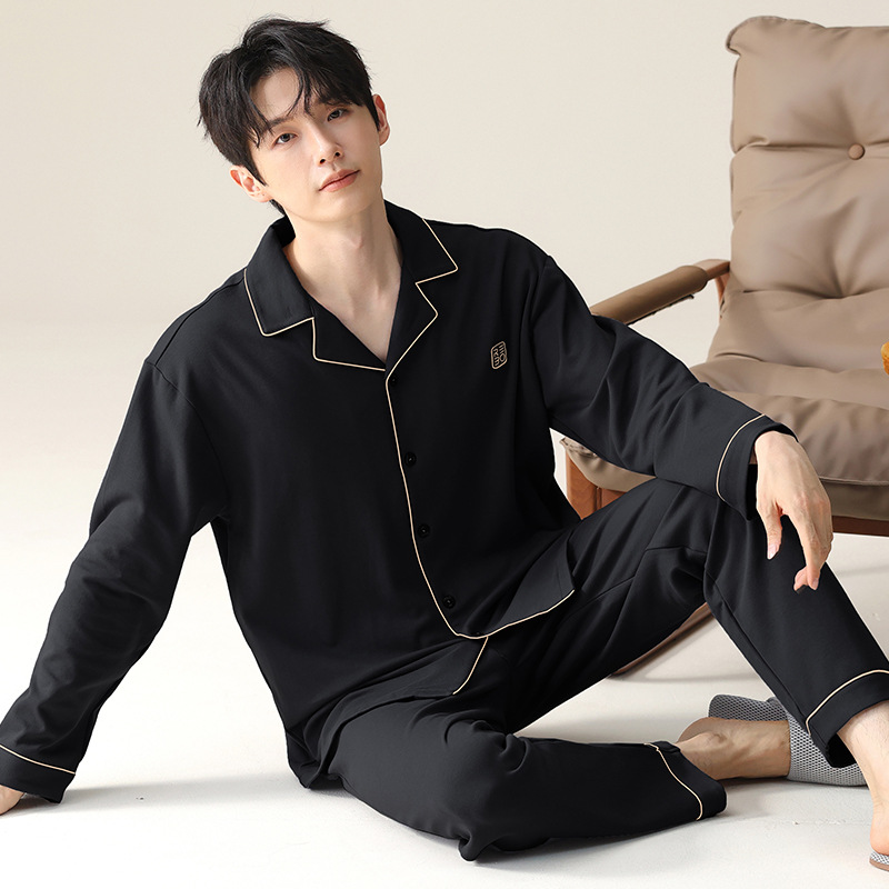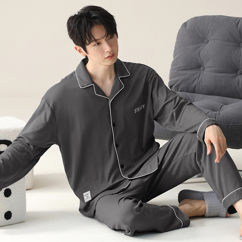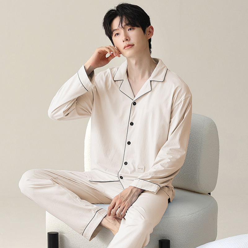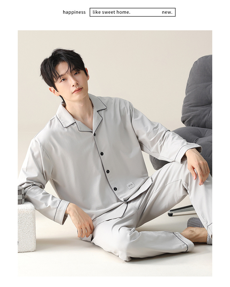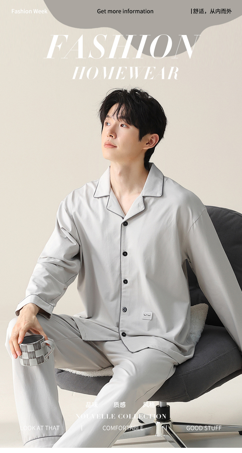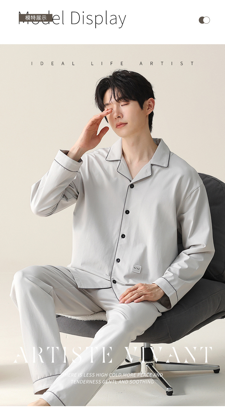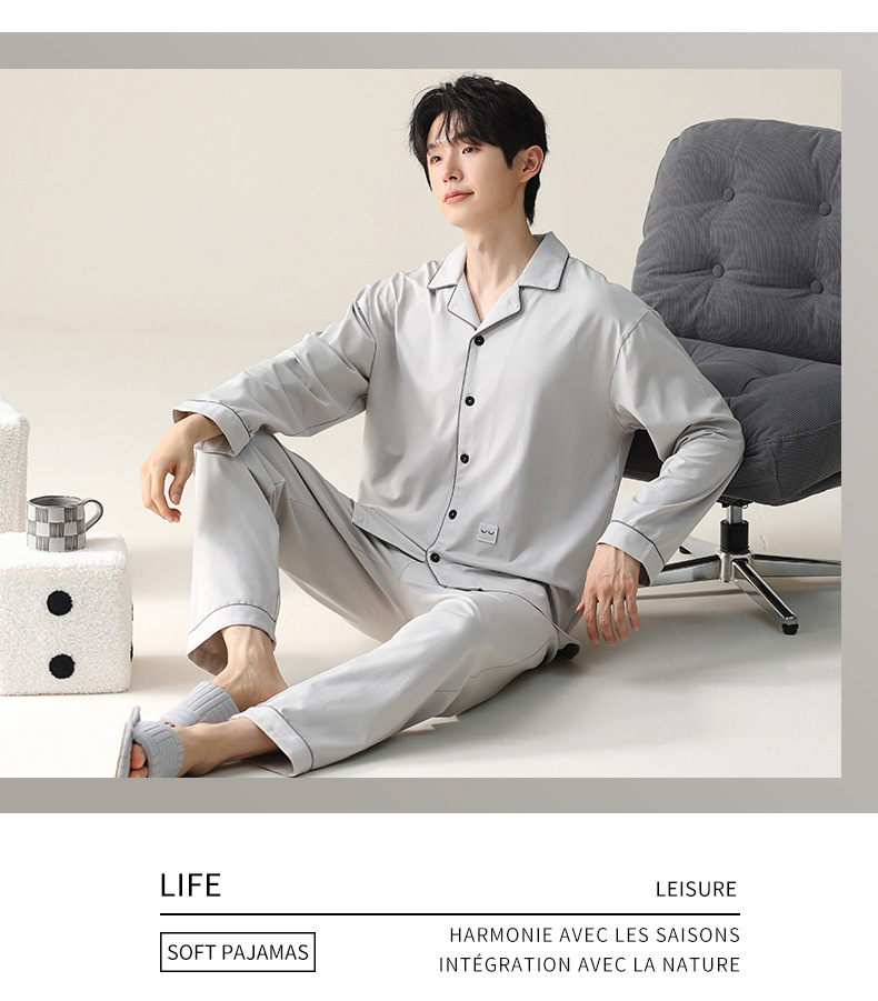 모달 잠옷 남자의 가을과 겨울 2025 새로운 봄과 가을 긴 소매 쿨 코튼 카디건 캐주얼 스타일 홈 의류 세트