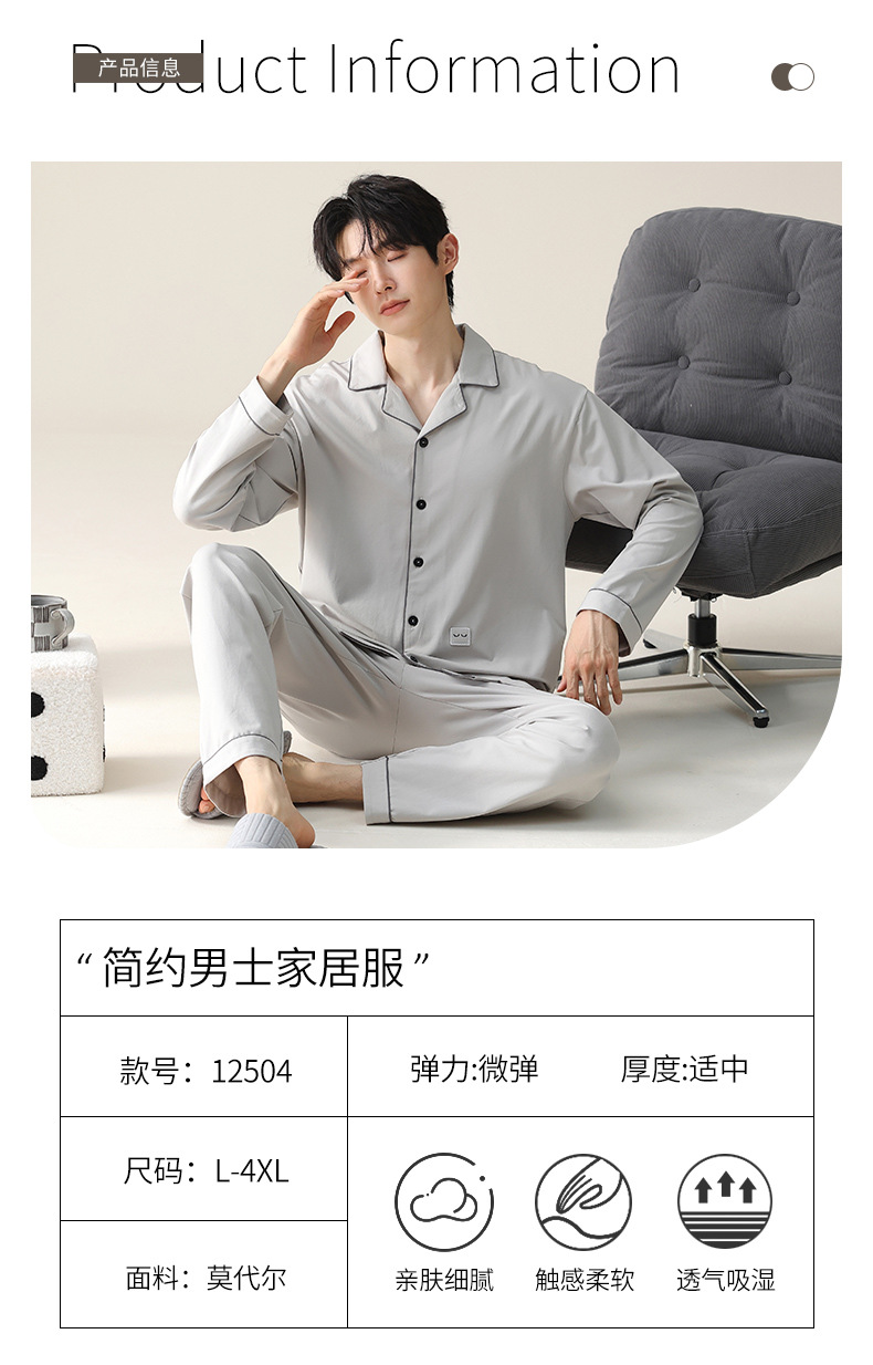 모달 잠옷 남자의 가을과 겨울 2025 새로운 봄과 가을 긴 소매 쿨 코튼 카디건 캐주얼 스타일 홈 의류 세트스토어 가기