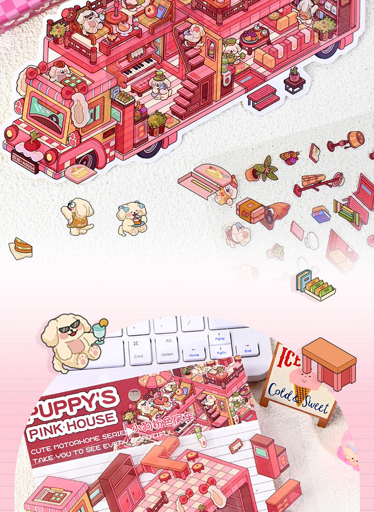• 모리유 조경 스티커 6.0 [강아지 핑크 RV]