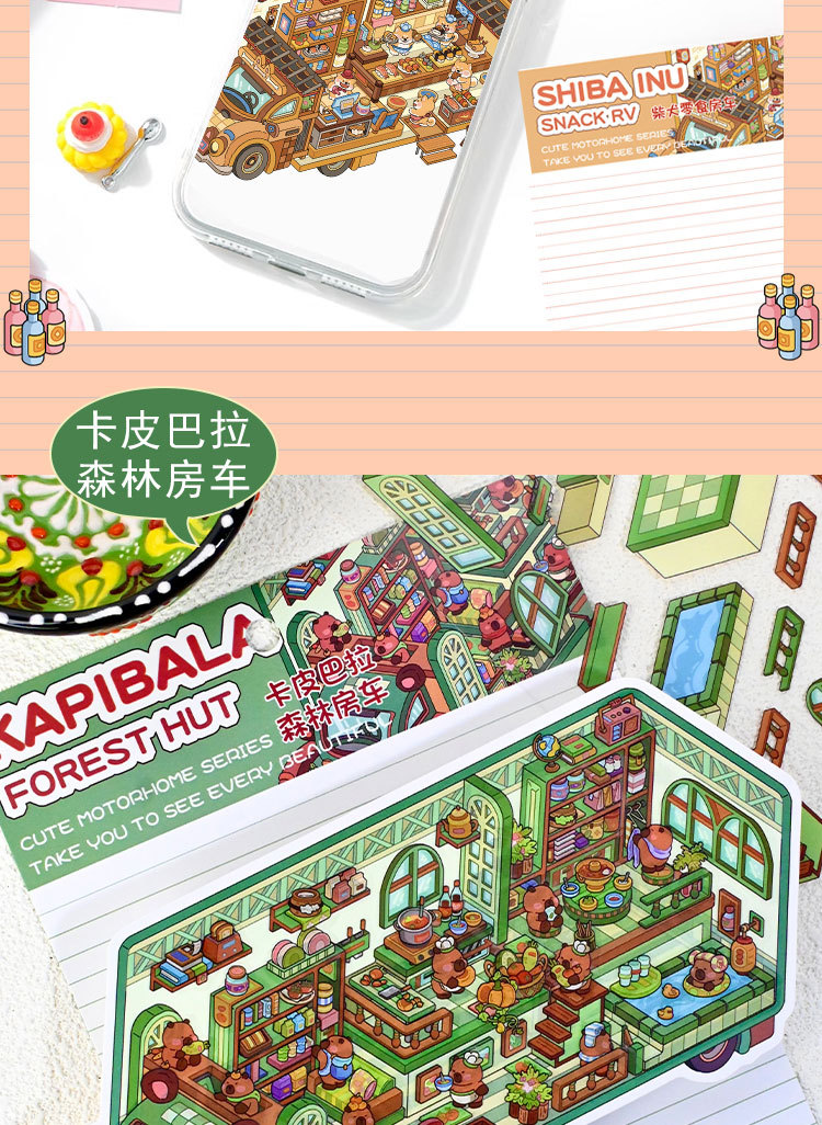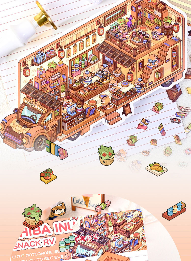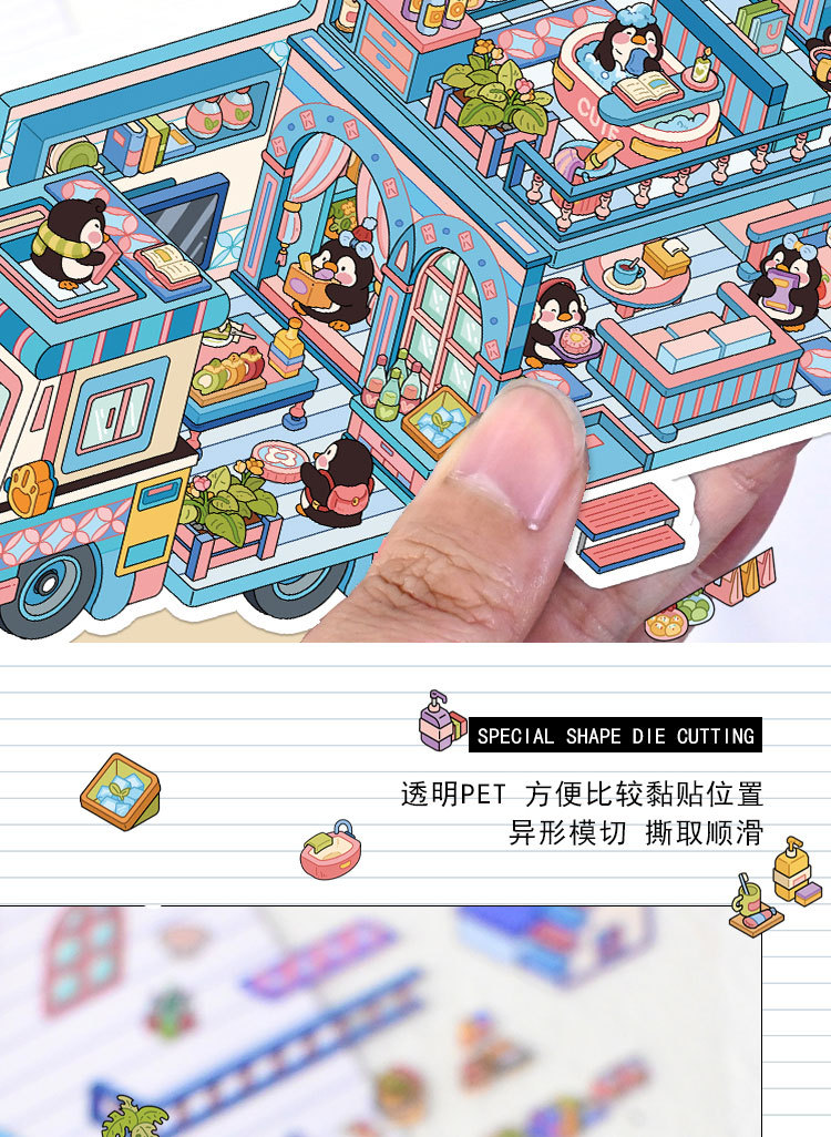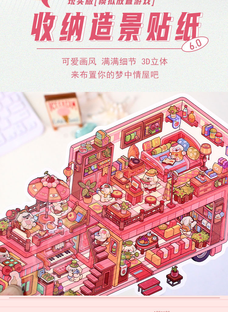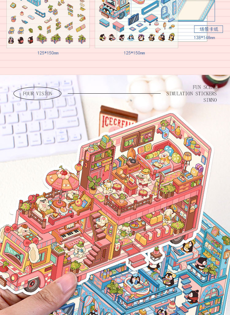 폭발 Senyou 6.0 RV 소형 장면 풍경 스티커 미니 감압 수제 스티커 2.5D 조경 Diy 스티커스토어 가기