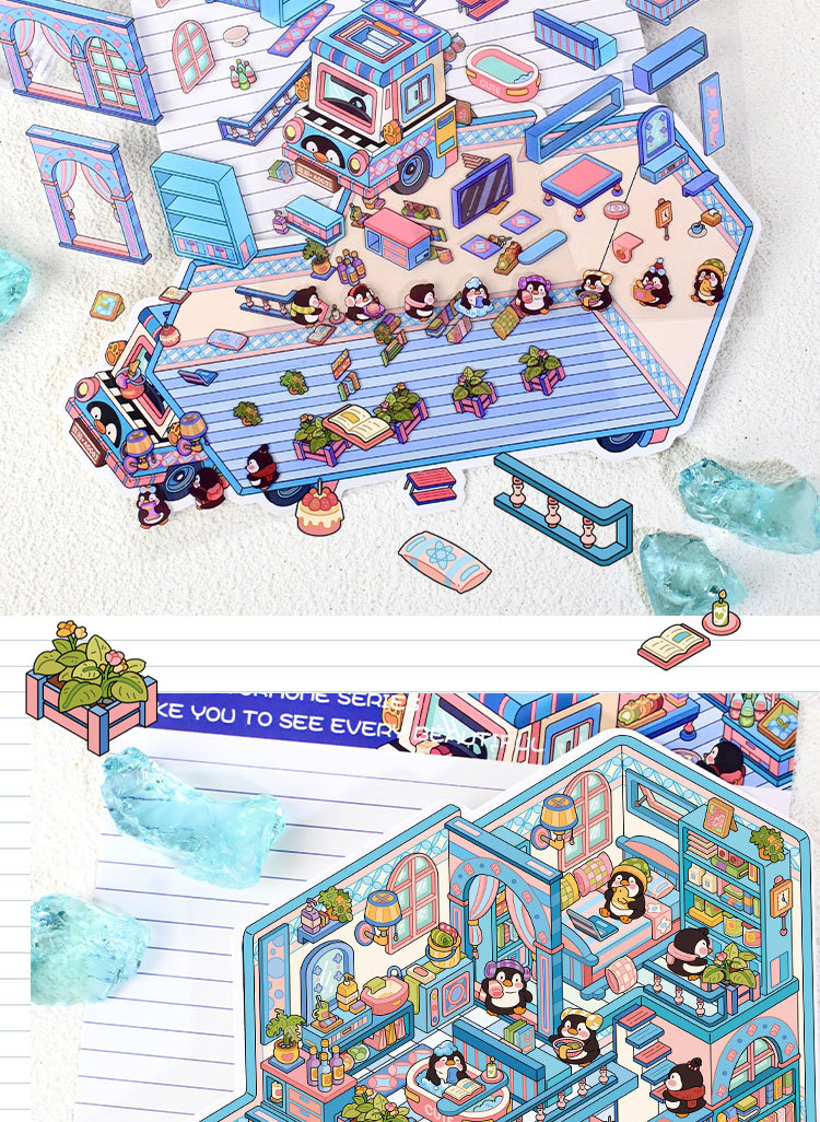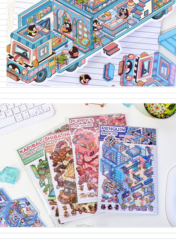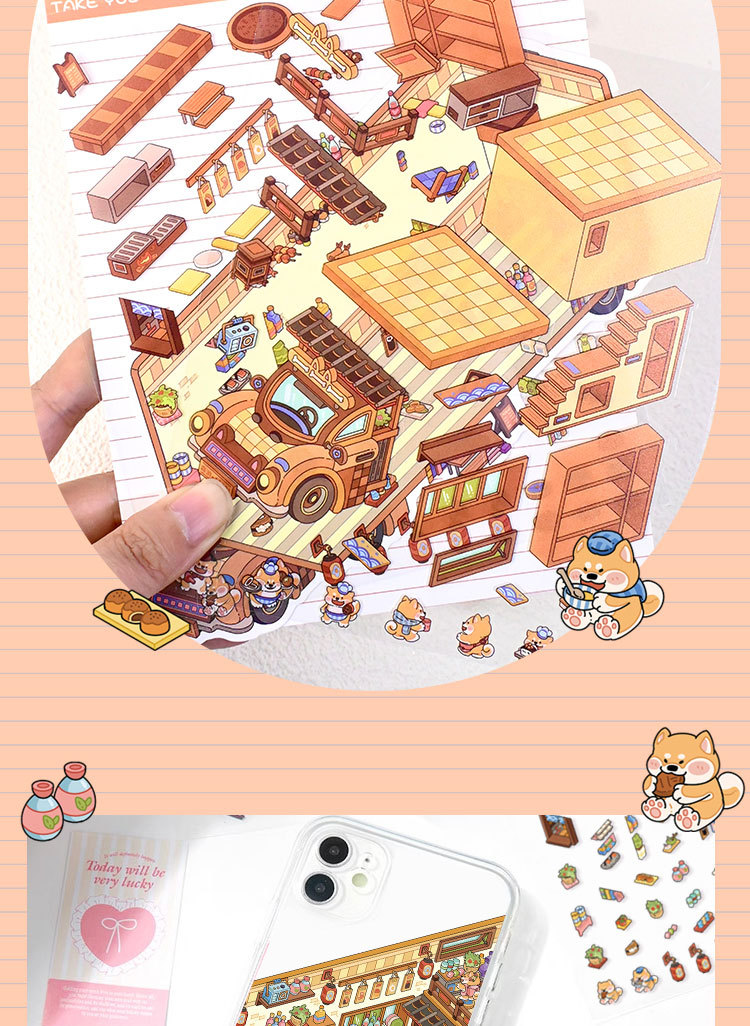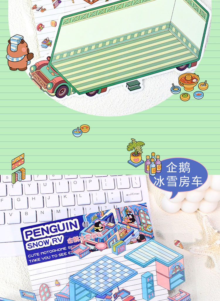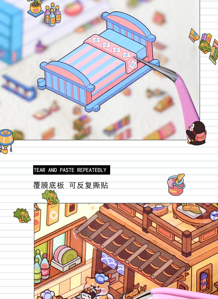 폭발 Senyou 6.0 RV 소형 장면 풍경 스티커 미니 감압 수제 스티커 2.5D 조경 Diy 스티커스토어 가기