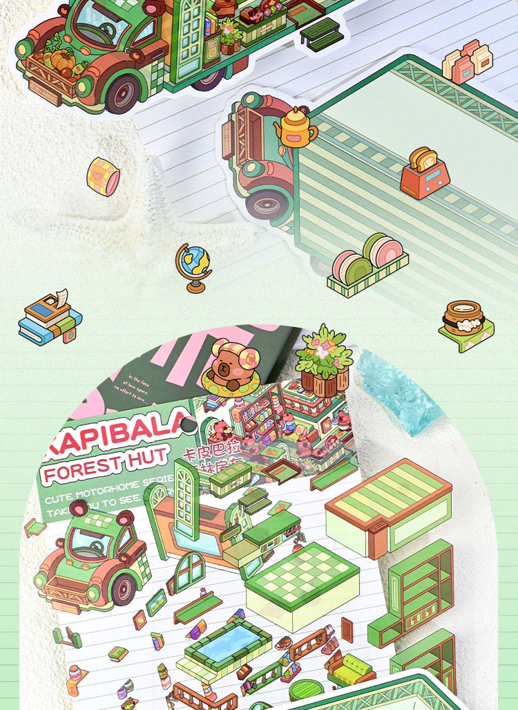 폭발 Senyou 6.0 RV 소형 장면 풍경 스티커 미니 감압 수제 스티커 2.5D 조경 Diy 스티커