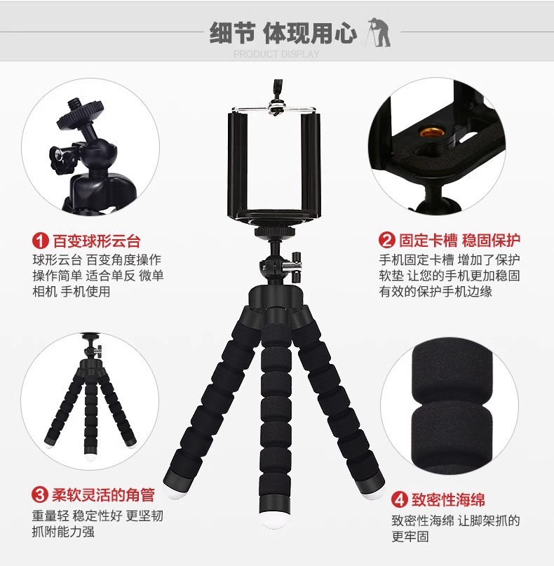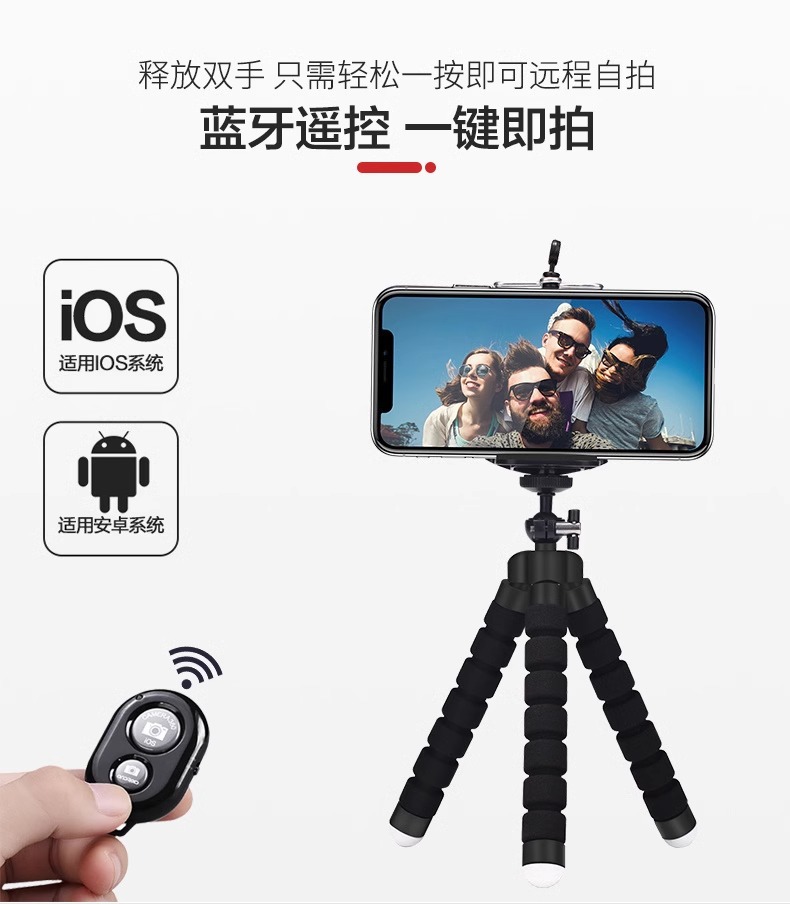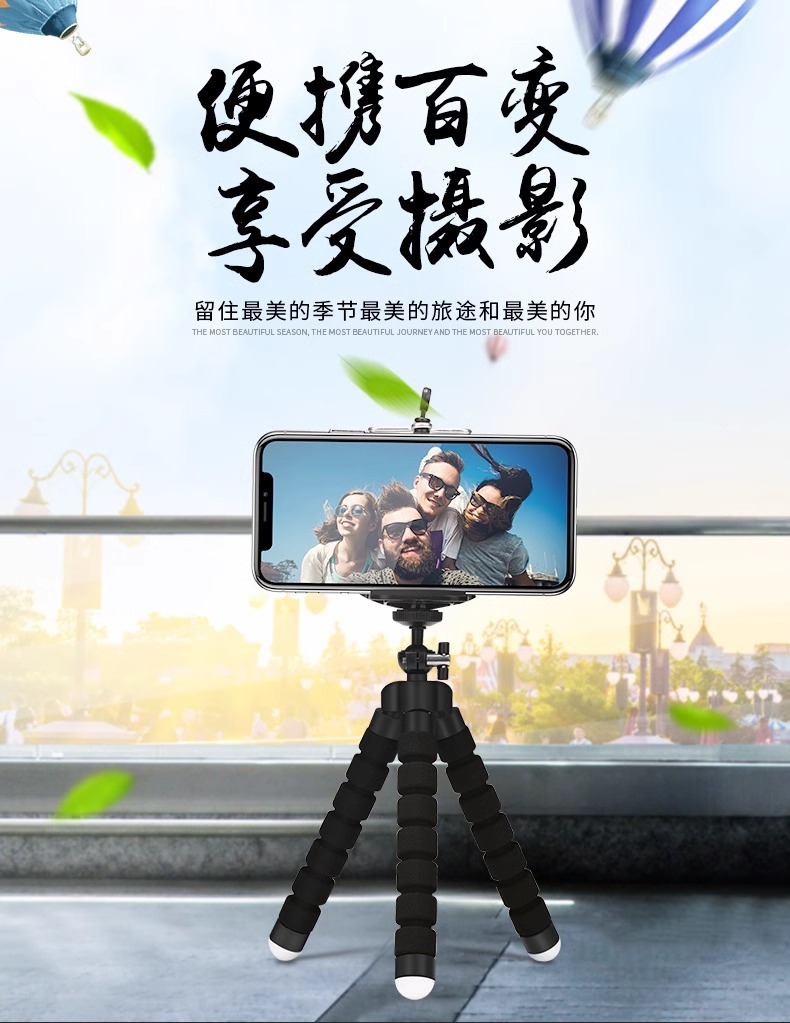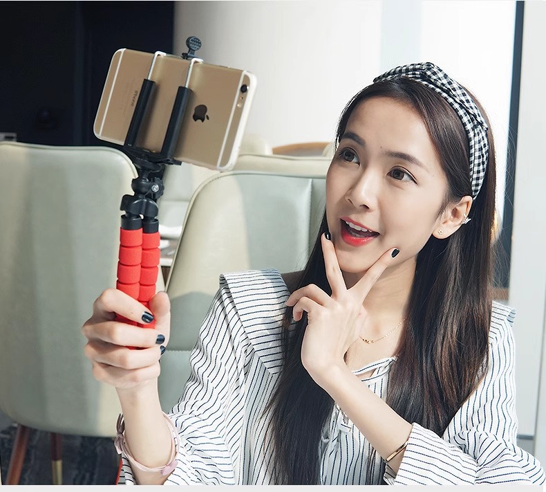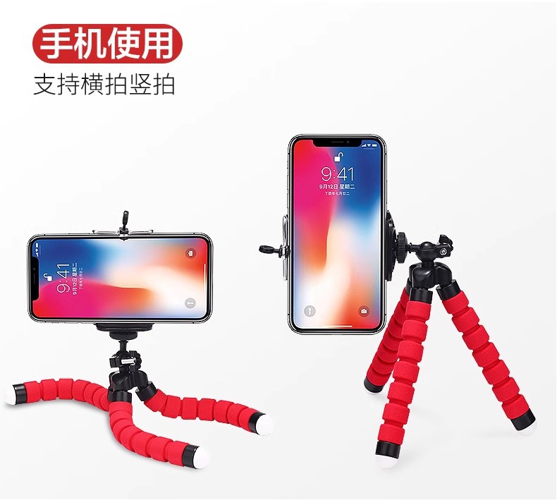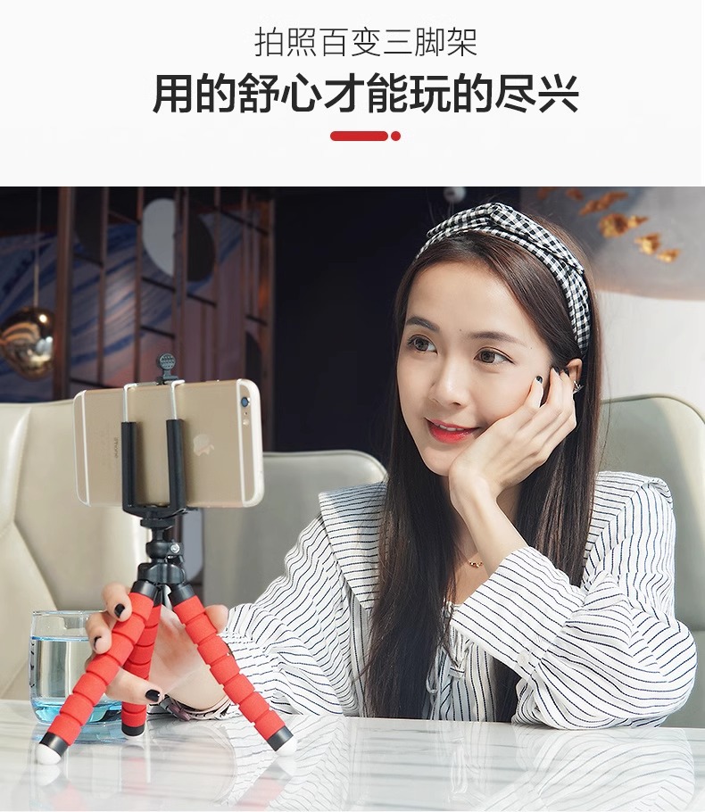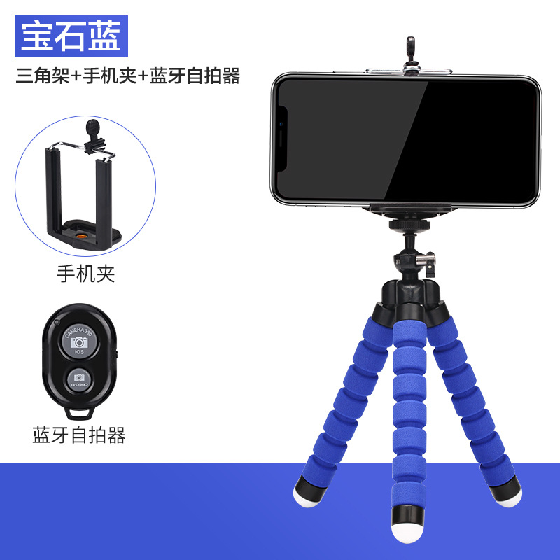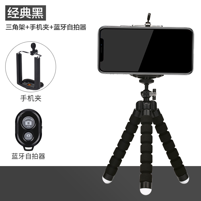 가변 휴대용 다기능 문어 휴대 전화 스탠드 데스크탑 라이브 방송 원격 제어 스폰지 문어 삼각대스토어 가기