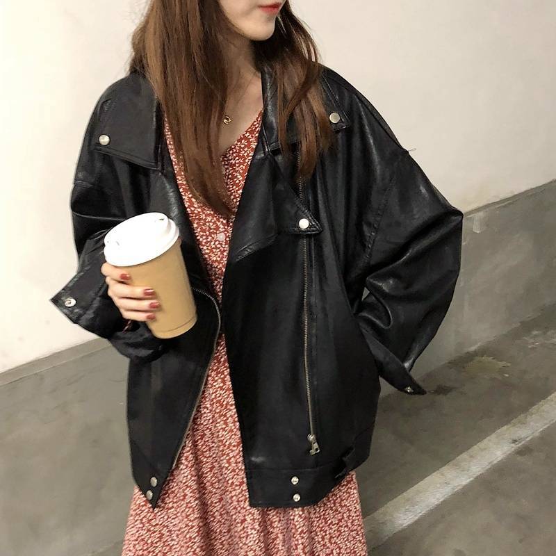 코트 이른 가을과 겨울 여자 2025 새로운 한국식 루즈 칙 홍콩 스타일 여성 가죽 자켓 쇼트 탑스토어 가기