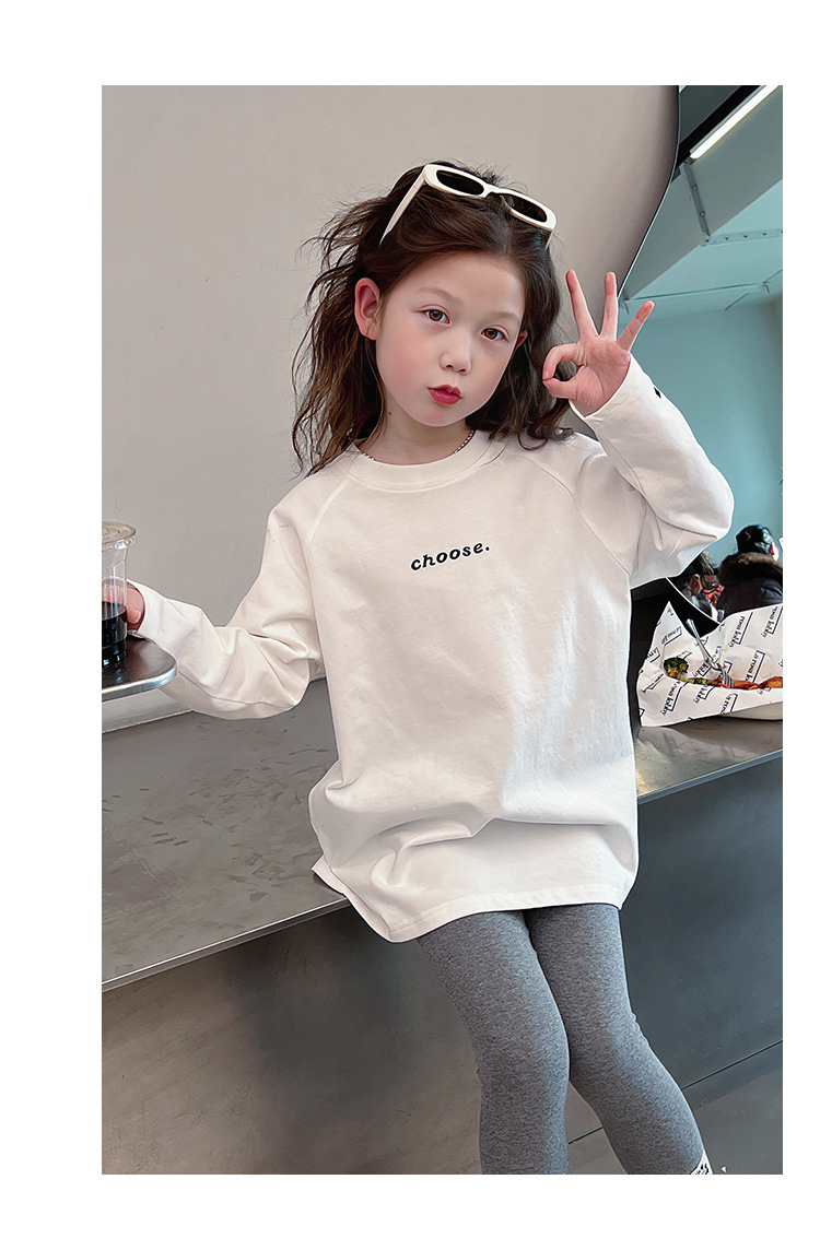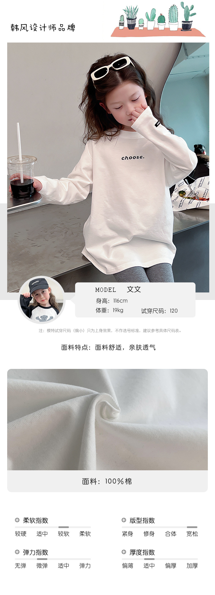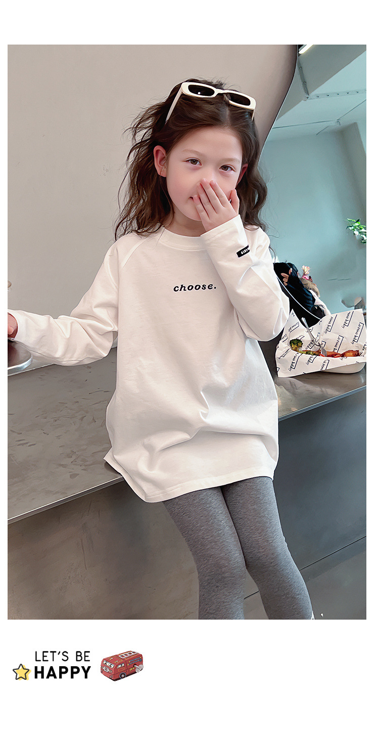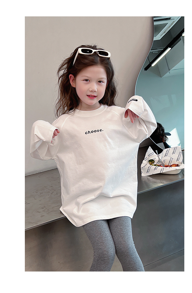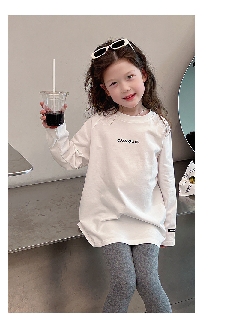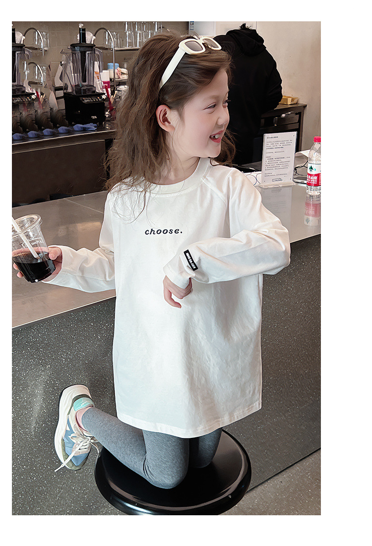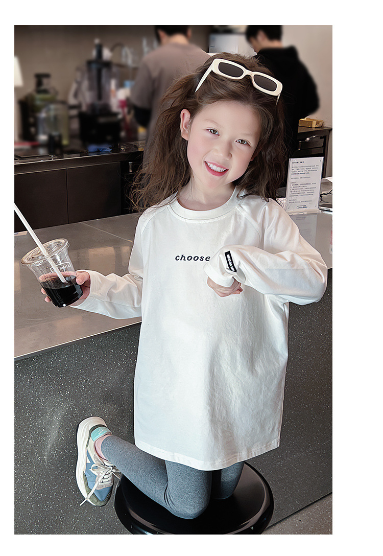 순면 어린이 중간 길이의 흰색 티셔츠 소녀 서양식 탑 대형 아동복 긴 소매베이스 셔츠 2025 봄 새로운 스타일스토어 가기