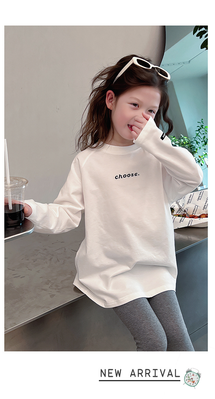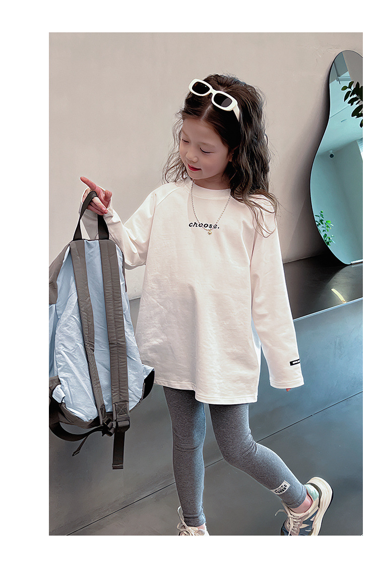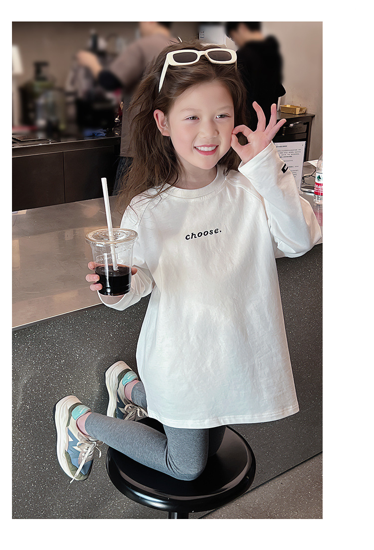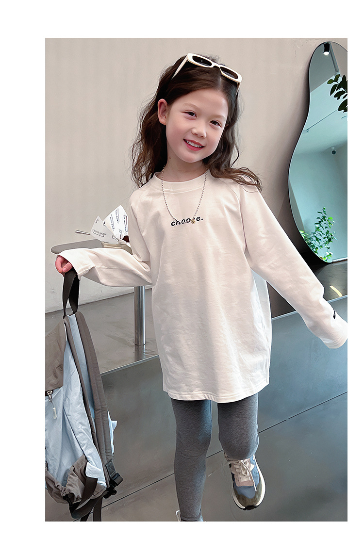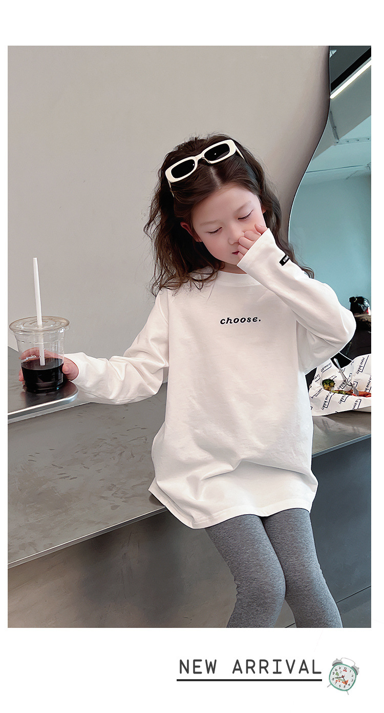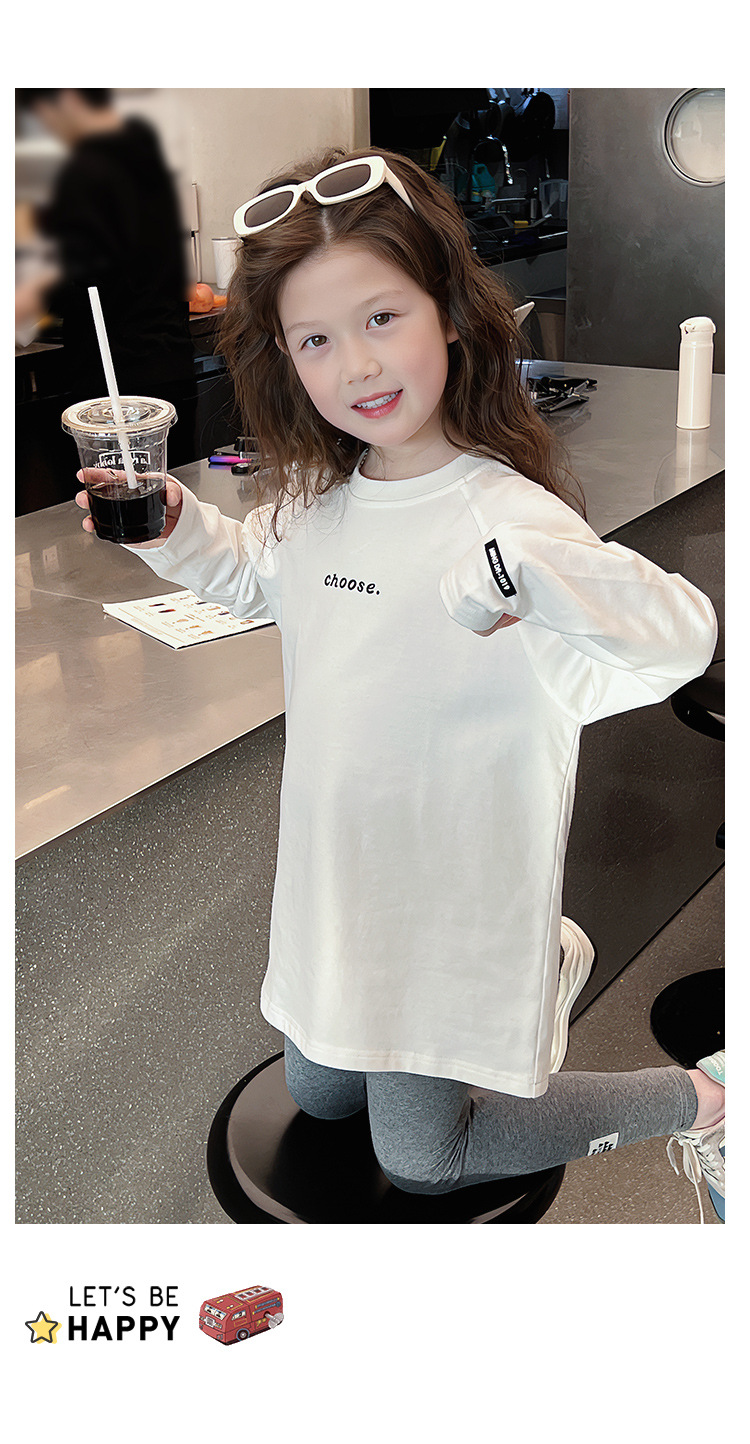 순면 어린이 중간 길이의 흰색 티셔츠 소녀 서양식 탑 대형 아동복 긴 소매베이스 셔츠 2025 봄 새로운 스타일스토어 가기