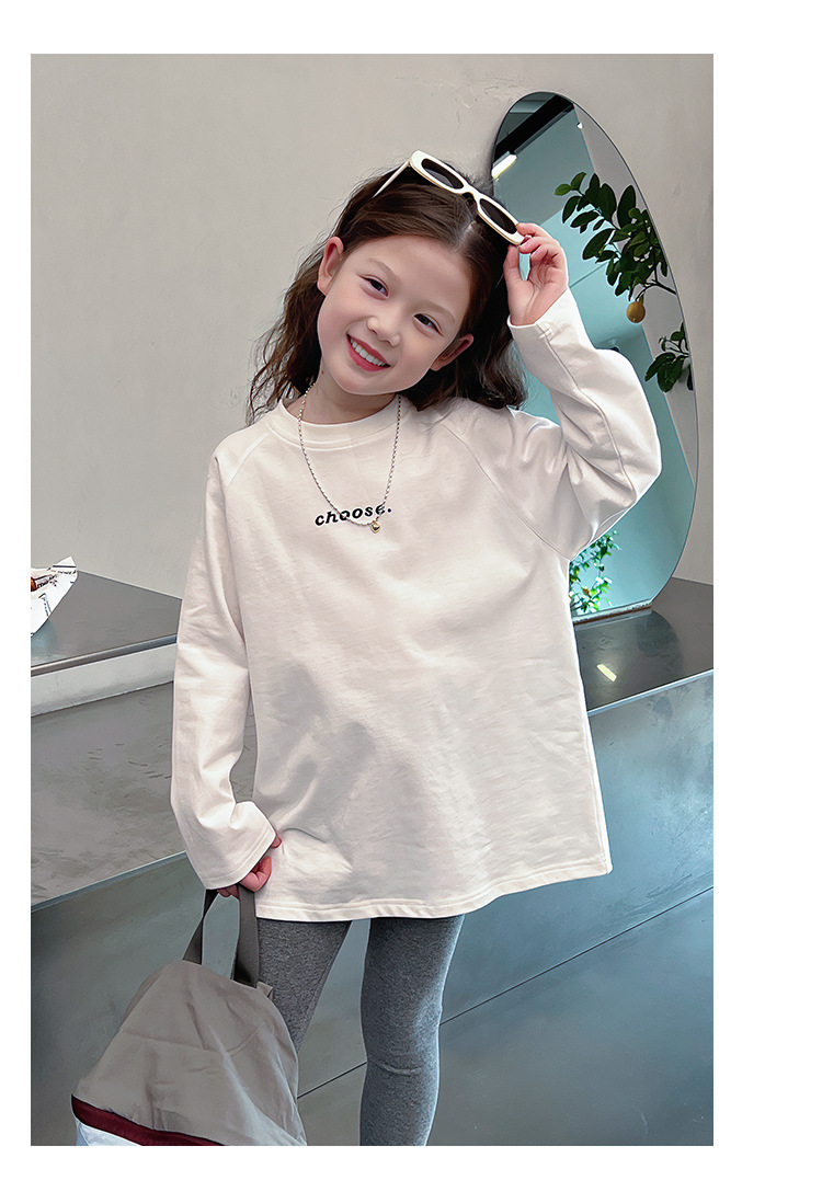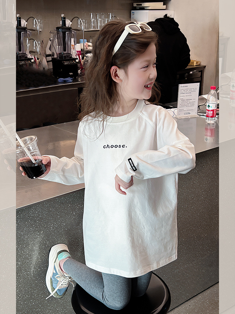 순면 어린이 중간 길이의 흰색 티셔츠 소녀 서양식 탑 대형 아동복 긴 소매베이스 셔츠 2025 봄 새로운 스타일