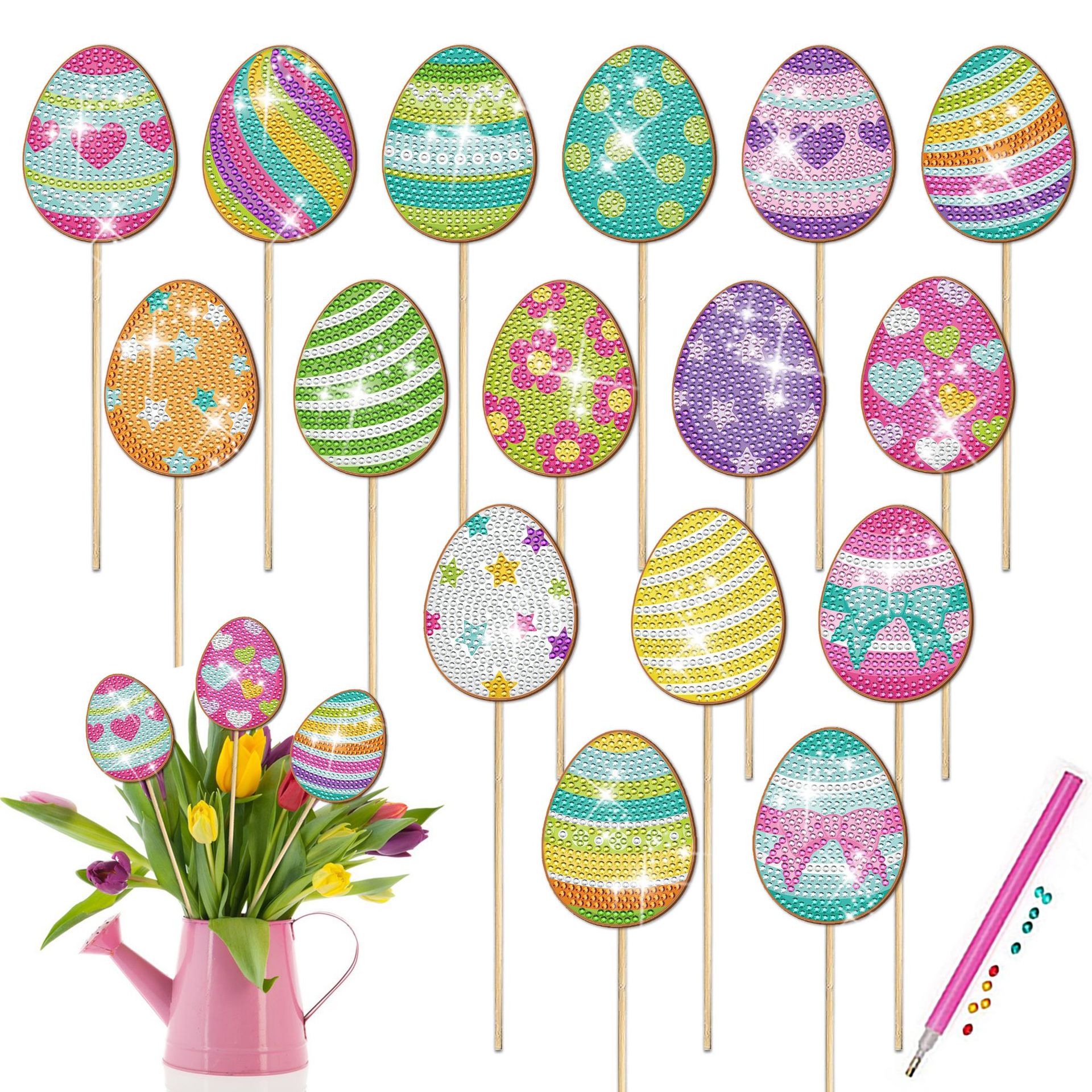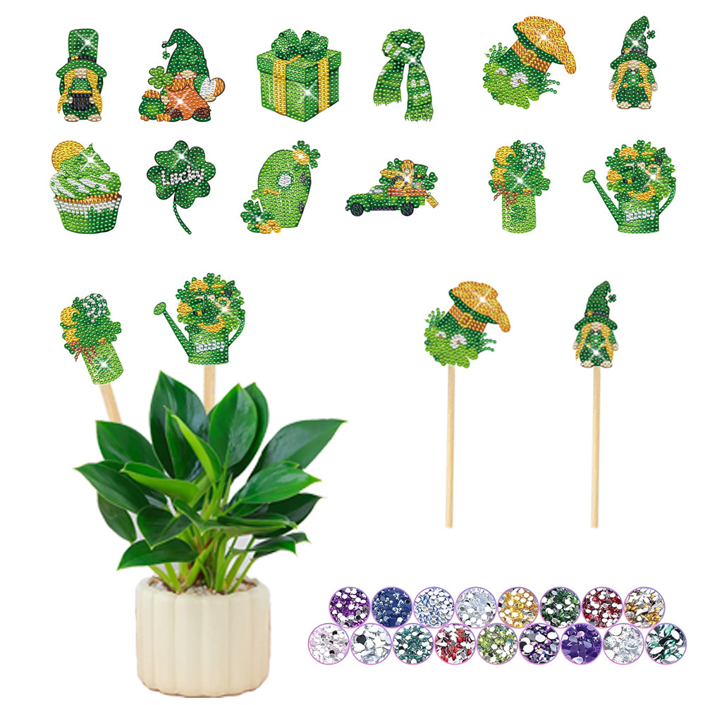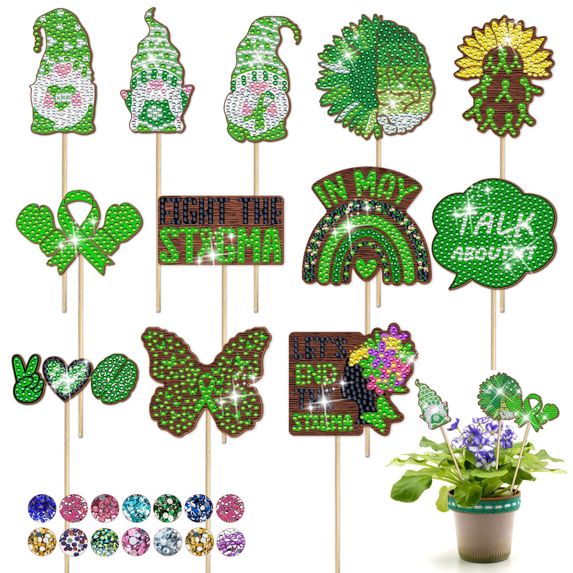 다이아몬드 그림 장식 스틱 꽃 냄비 삽입 막대 데스크탑 식물 장식 다이아몬드 스티커 DIY 수제 정원 더미 스티커 사용자 정의