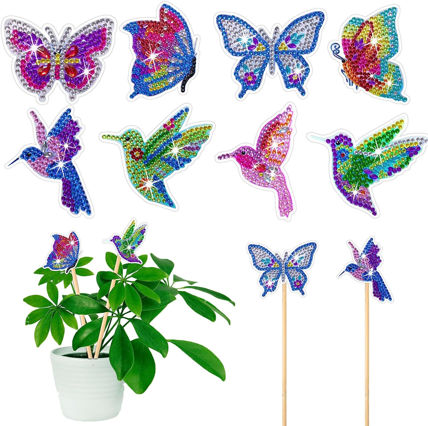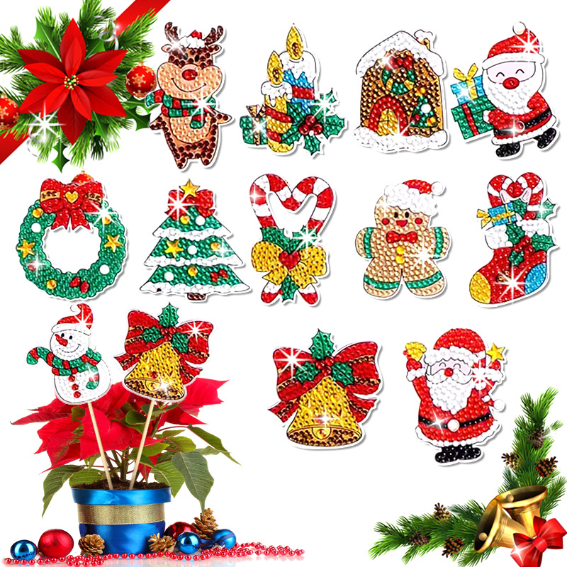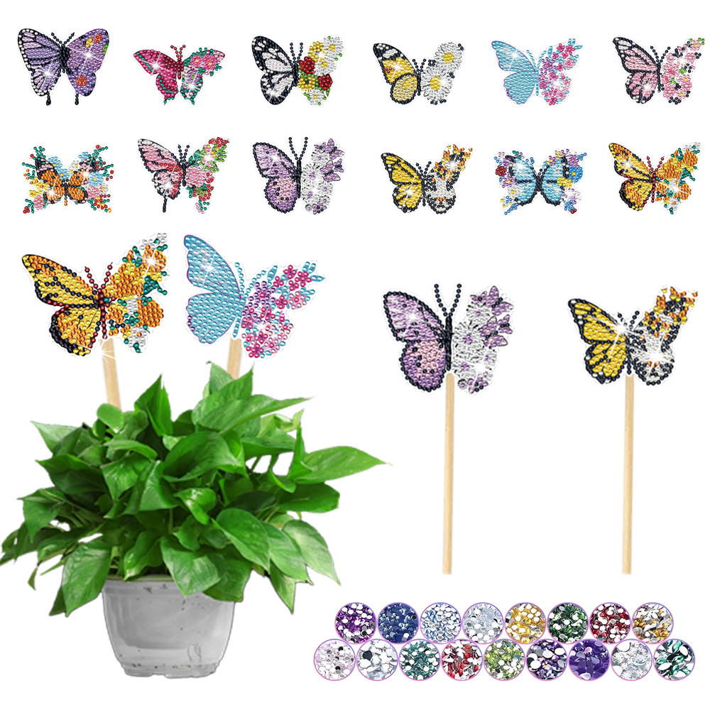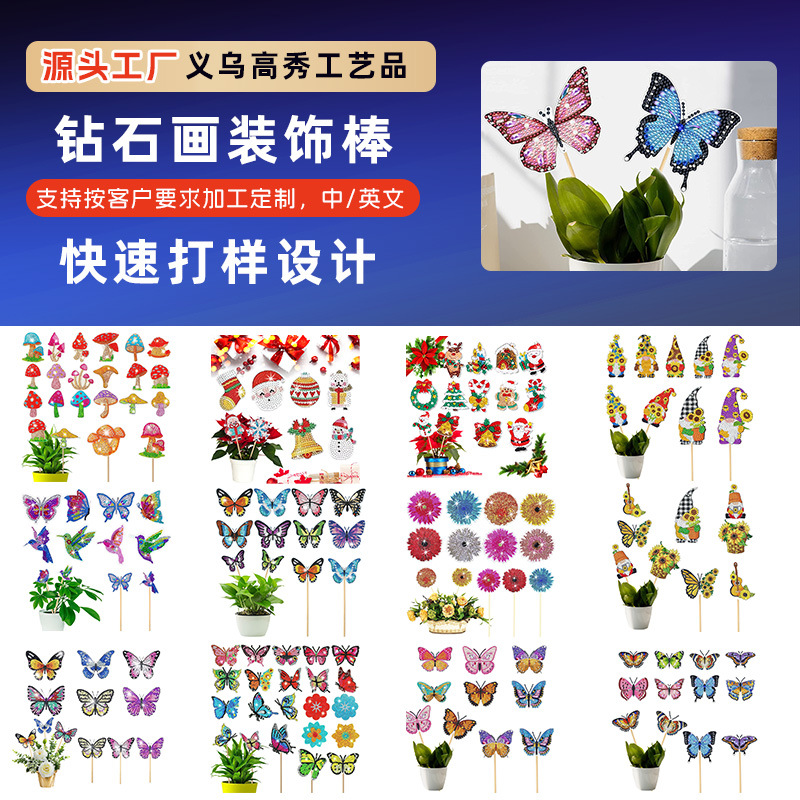 다이아몬드 그림 장식 스틱 꽃 냄비 삽입 막대 데스크탑 식물 장식 다이아몬드 스티커 DIY 수제 정원 더미 스티커 사용자 정의스토어 가기