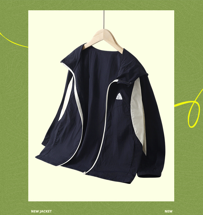 어린이 컬러 매칭 자외선 차단제 의류 자외선 차단제 새 버전 upf50 소년 소녀 용 아이스 실크 후드 자외선 차단제 의류 재고스토어 가기