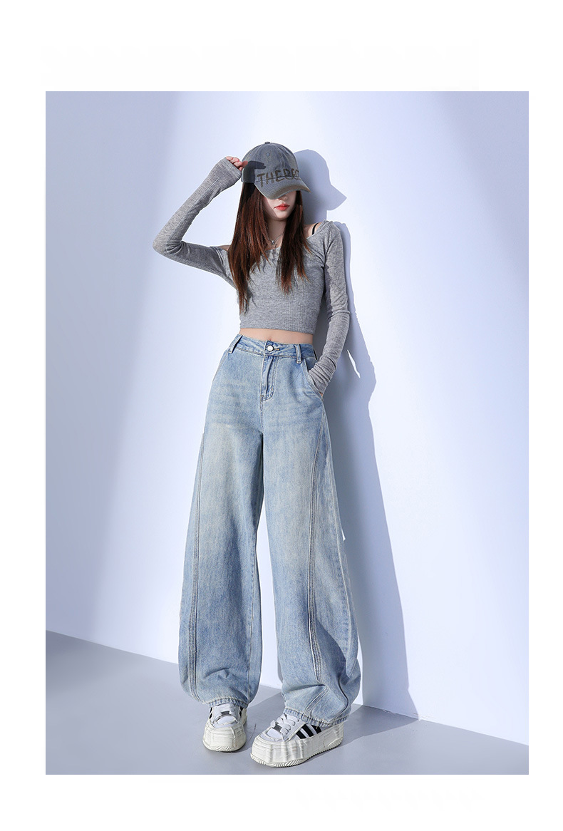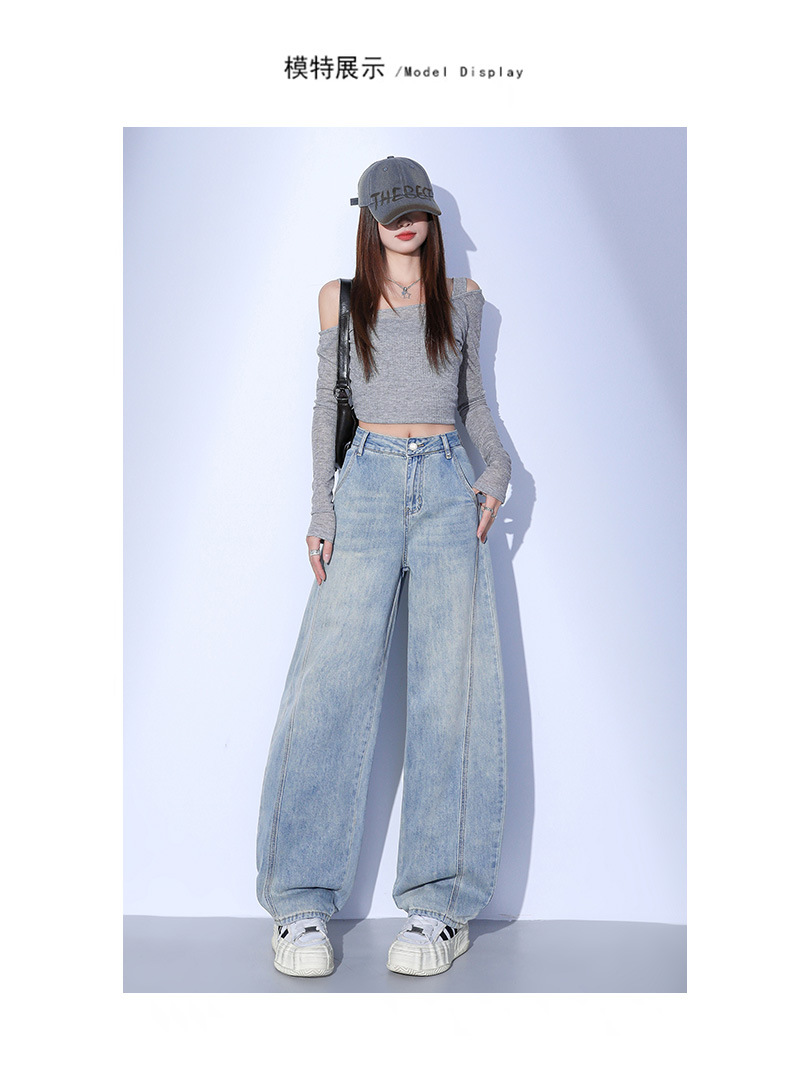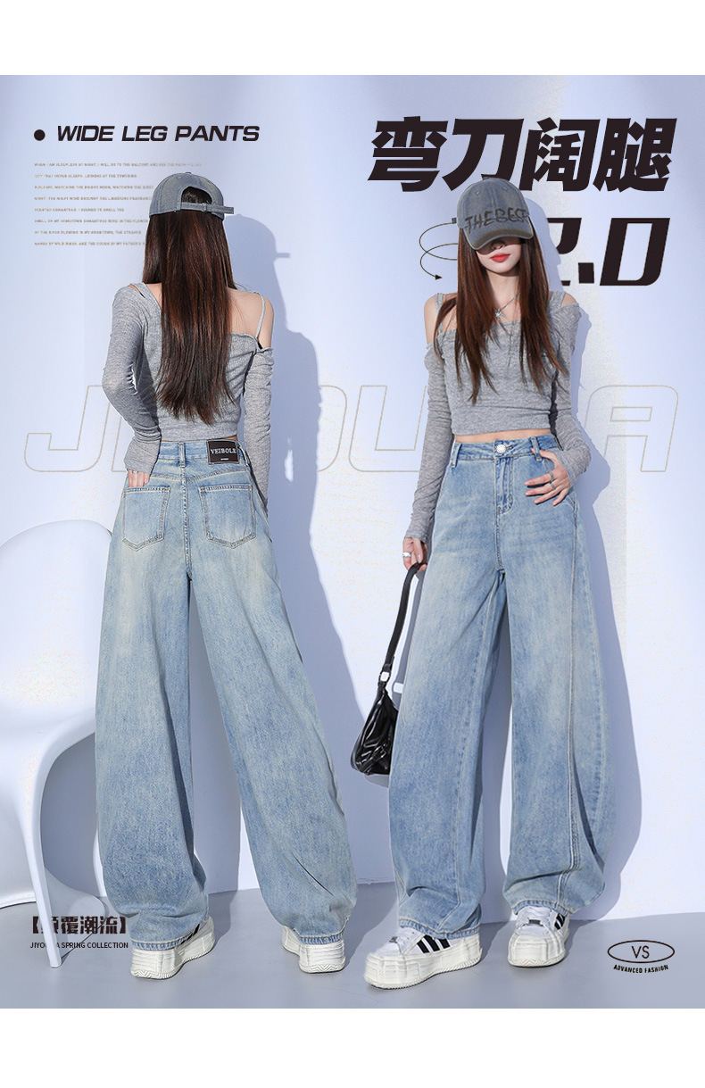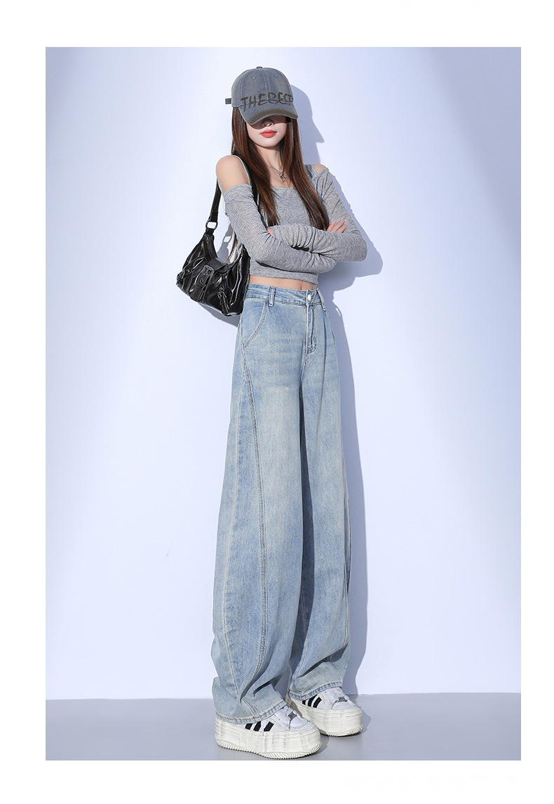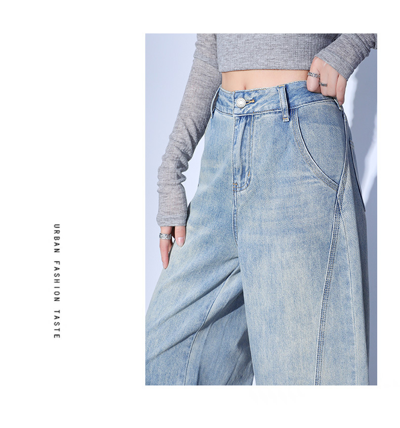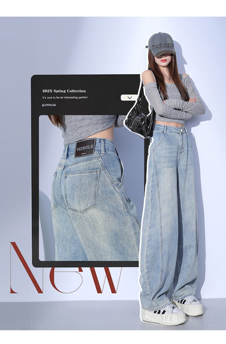 라이트 블루 디자인 감각 Machete 청바지 여성의 2025 봄 새로운 높은 허리 슬리밍 느슨한 넓은 다리 바지스토어 가기