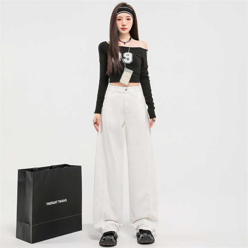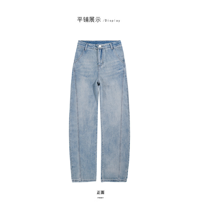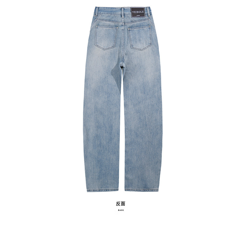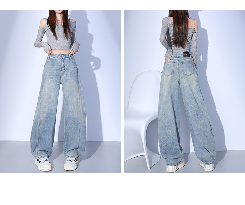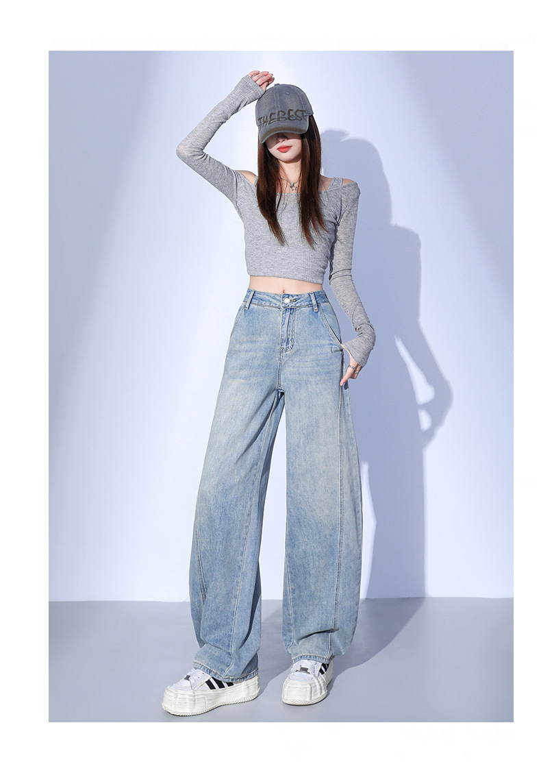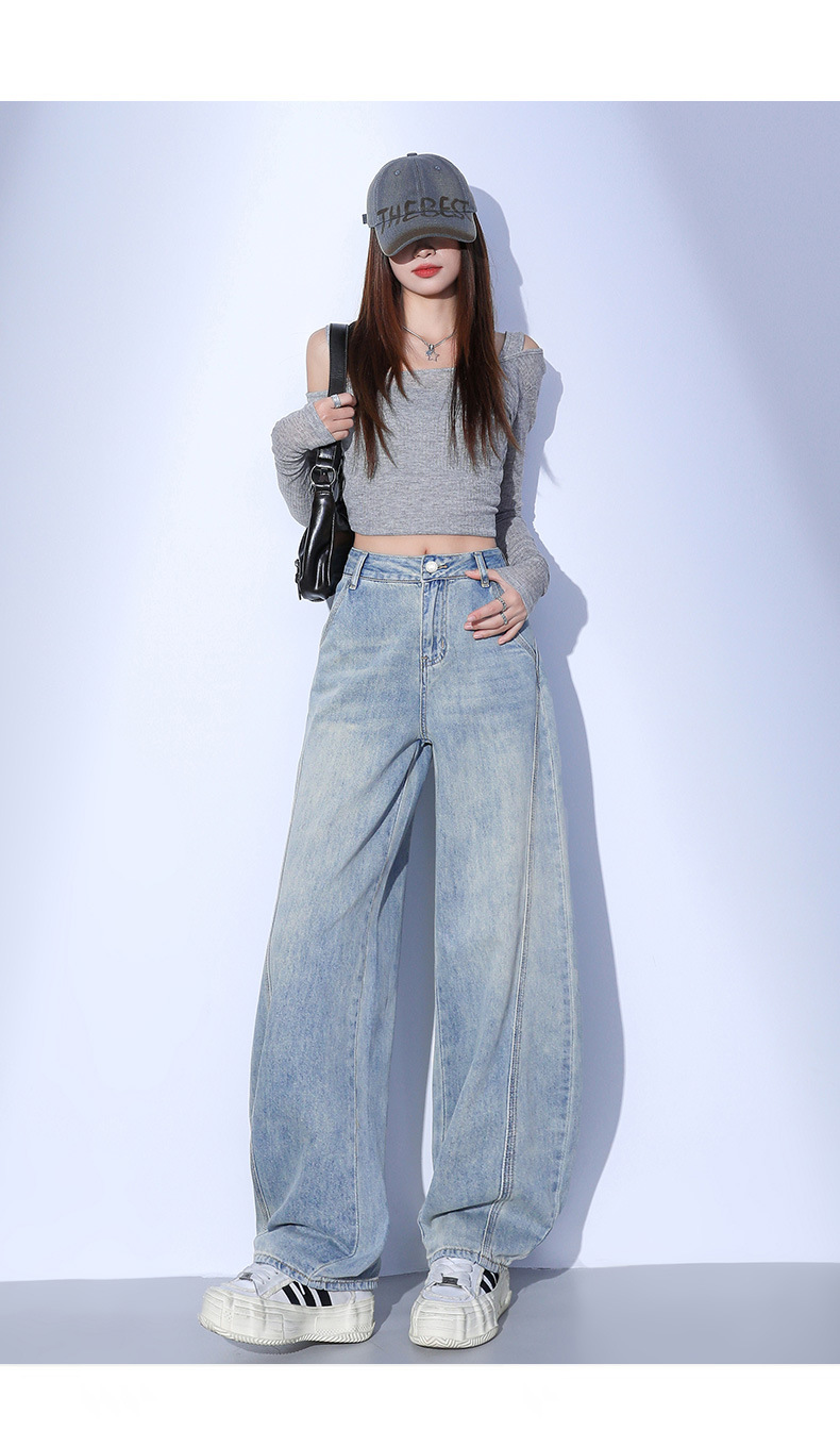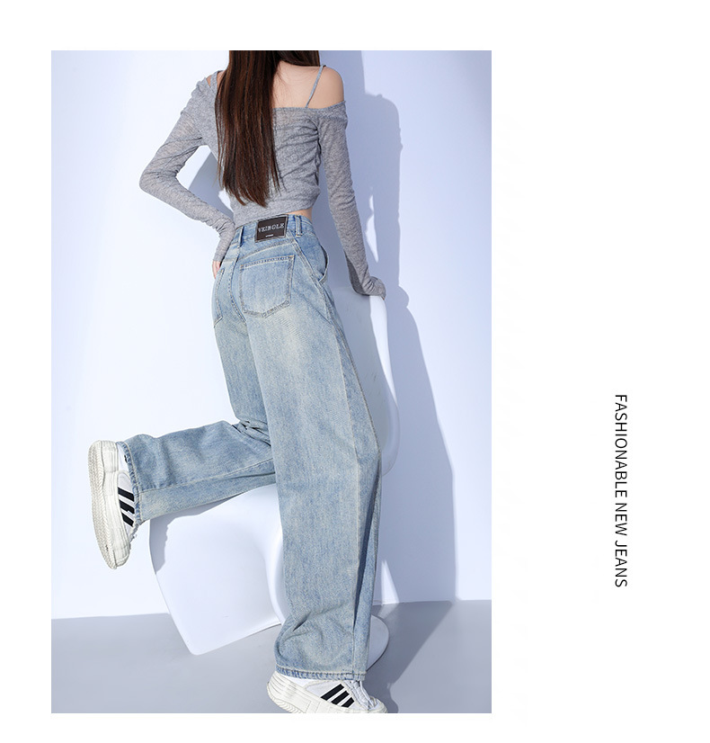 라이트 블루 디자인 감각 Machete 청바지 여성의 2025 봄 새로운 높은 허리 슬리밍 느슨한 넓은 다리 바지스토어 가기