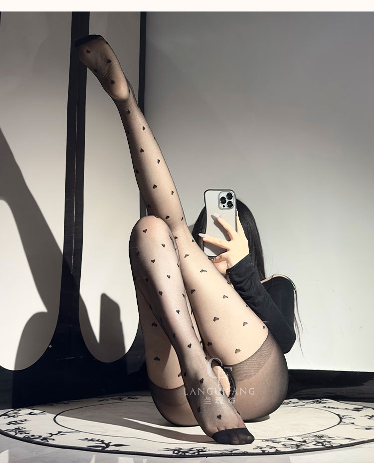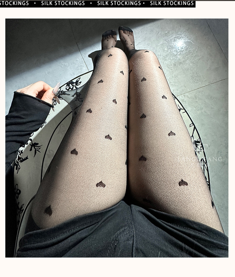 Langeifang 러브 폴카 도트 스타킹 섹시한 순수한 욕망 탈착 불가능한 삽입형 초박형 팬티 스타킹 여성용 섹시 스타킹스토어 가기
