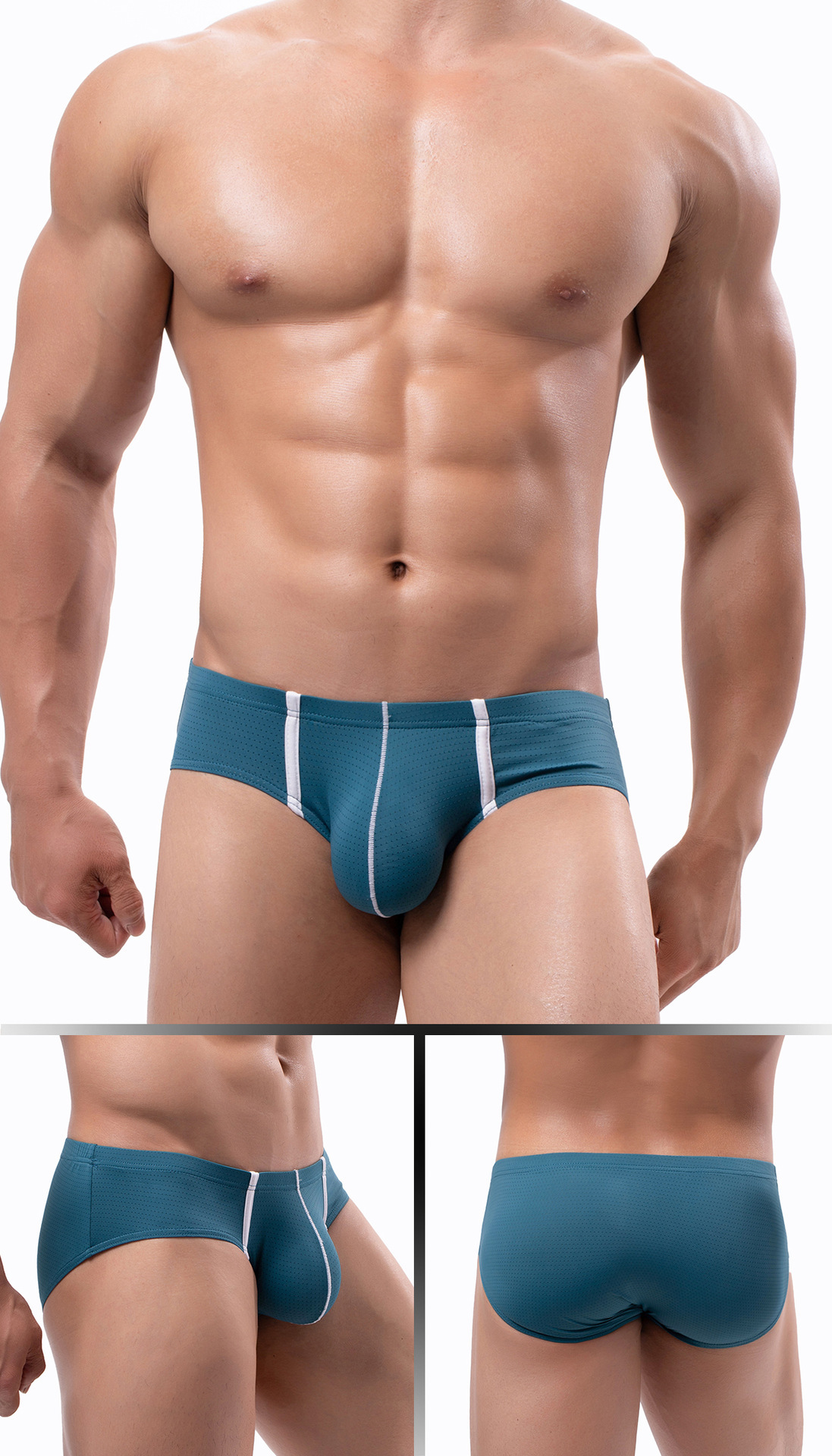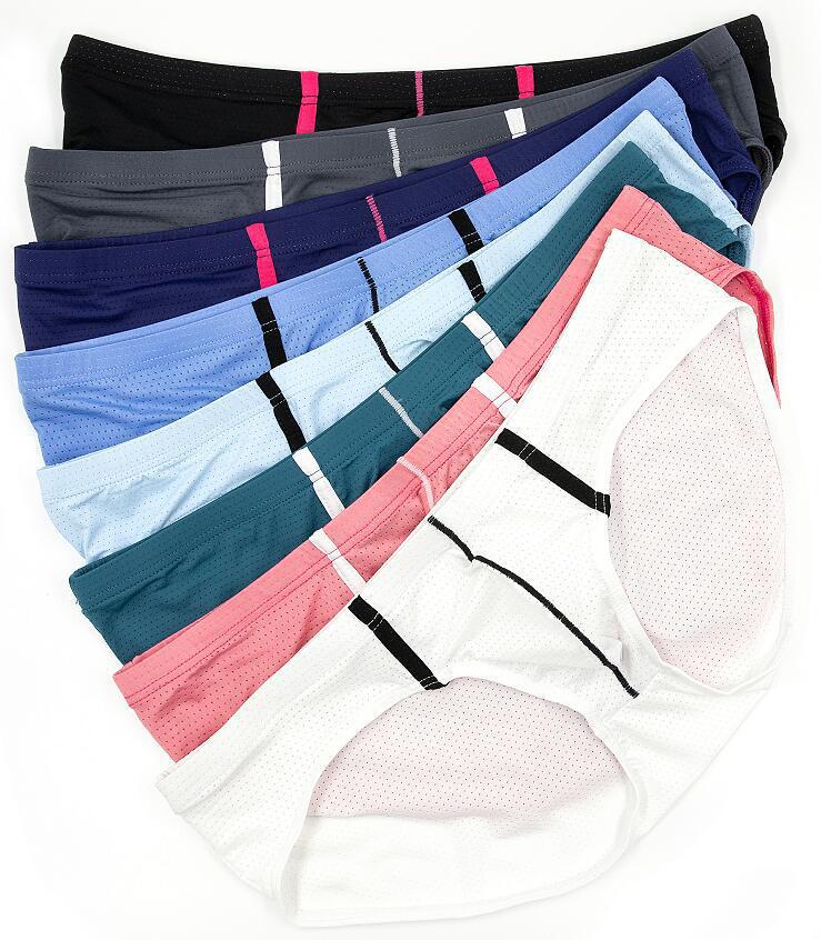 일본, 한국, 유럽 및 미국 남자 낮은 허리 속옷 머리 아이스 실크 나일론 섹시한 메쉬 통기성 브리프 수영 트렁크 E-093