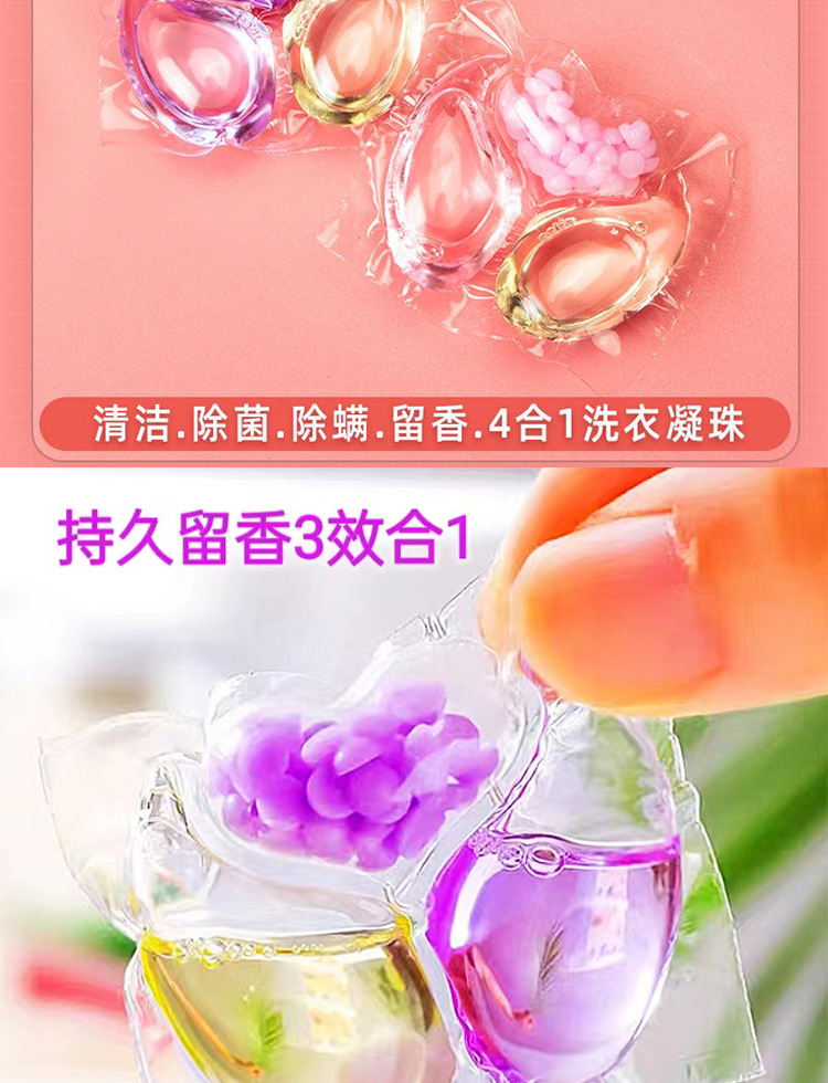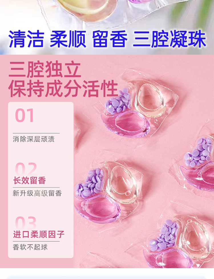 3 대 1 세탁 응고제 비즈 향긋한 구슬 지속 향기 탈취, 진드기 제거, 박테리아 정적 농도 향수 유형 깨끗한 세탁 공스토어 가기