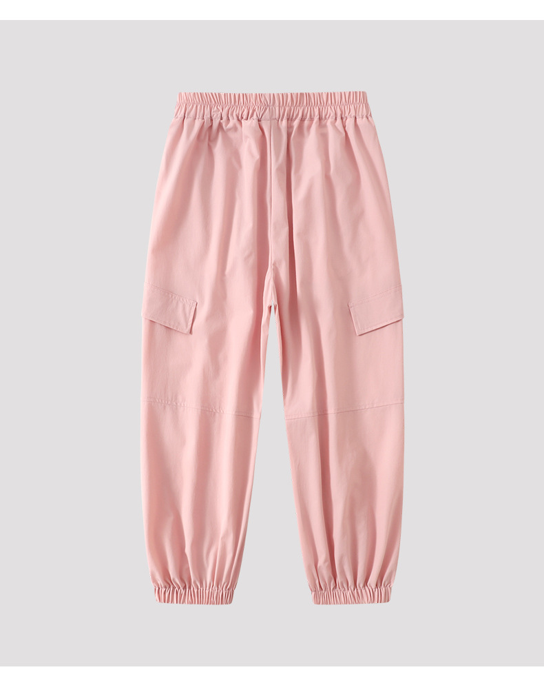 쌀 순수한 뜨거운 판매 아이들의 빠른 건조 작업복 패션 습기 흡수 통기성 어린이 캐주얼 바지 단색 스포츠 바지
