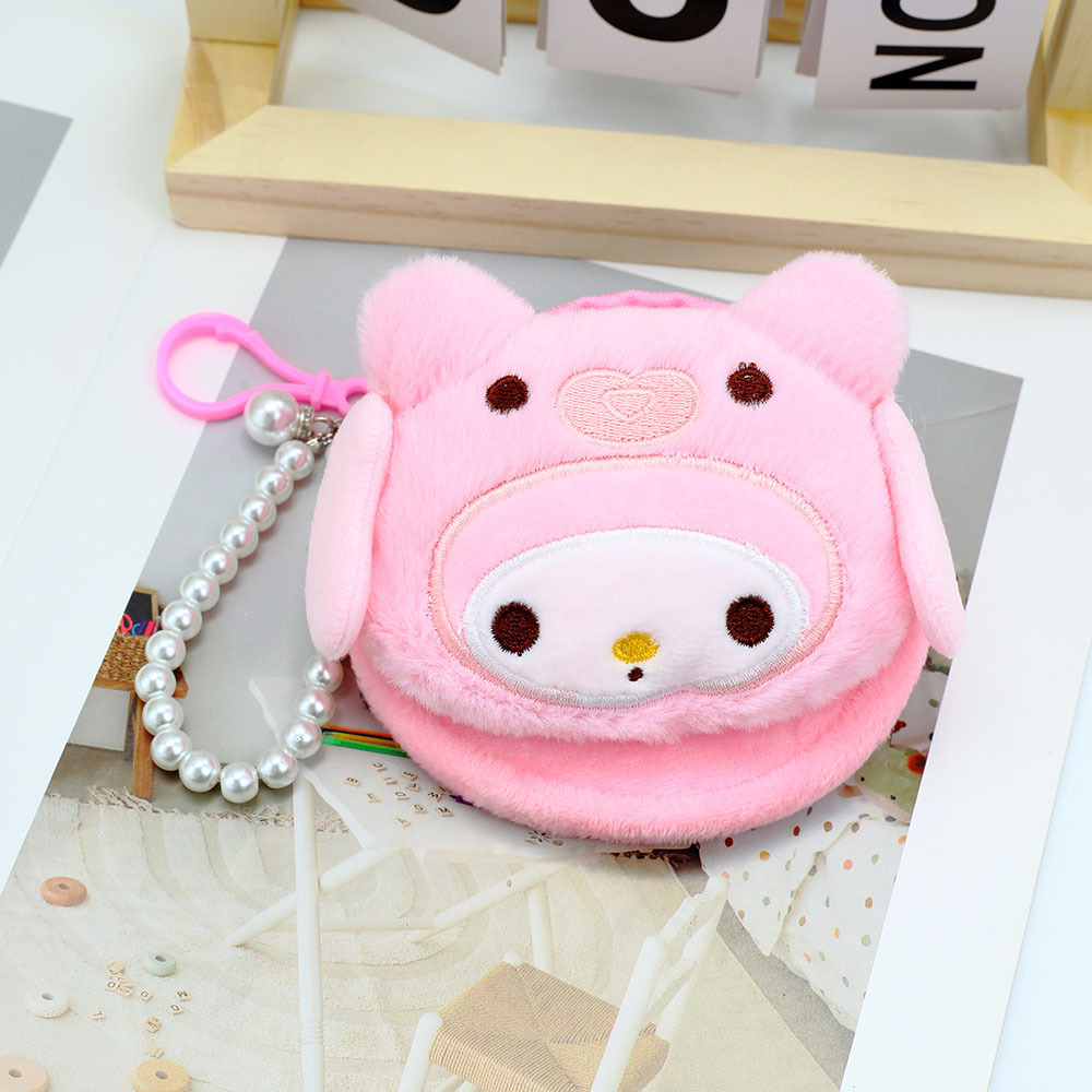 일본식 만화 플러시 동전 지갑, 귀여운 지퍼 미니 수납 가방, 열쇠고리 장식, 어린이 선물용 작은 지갑