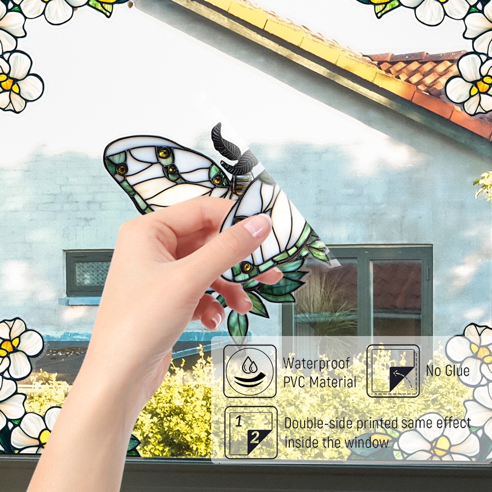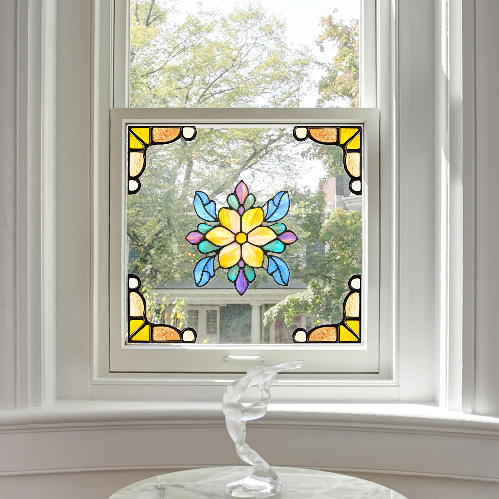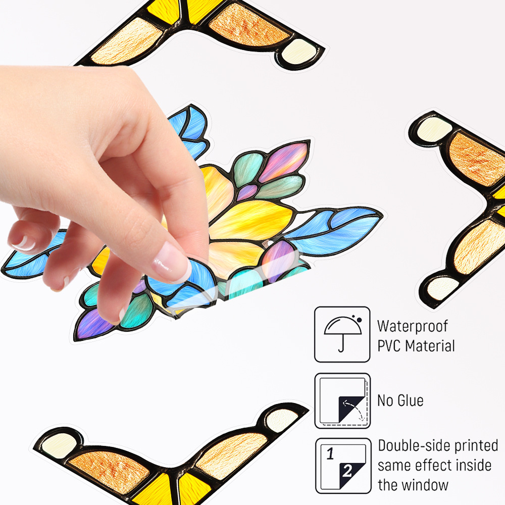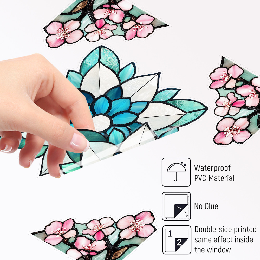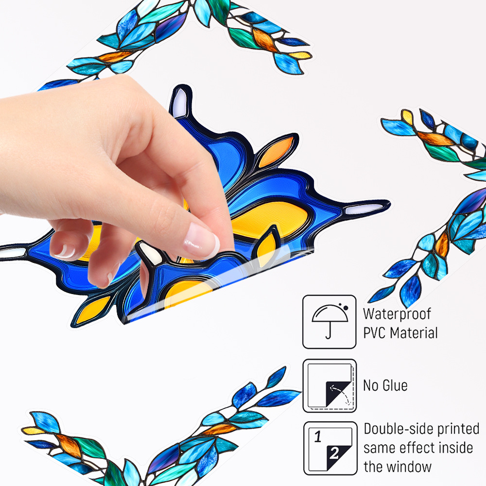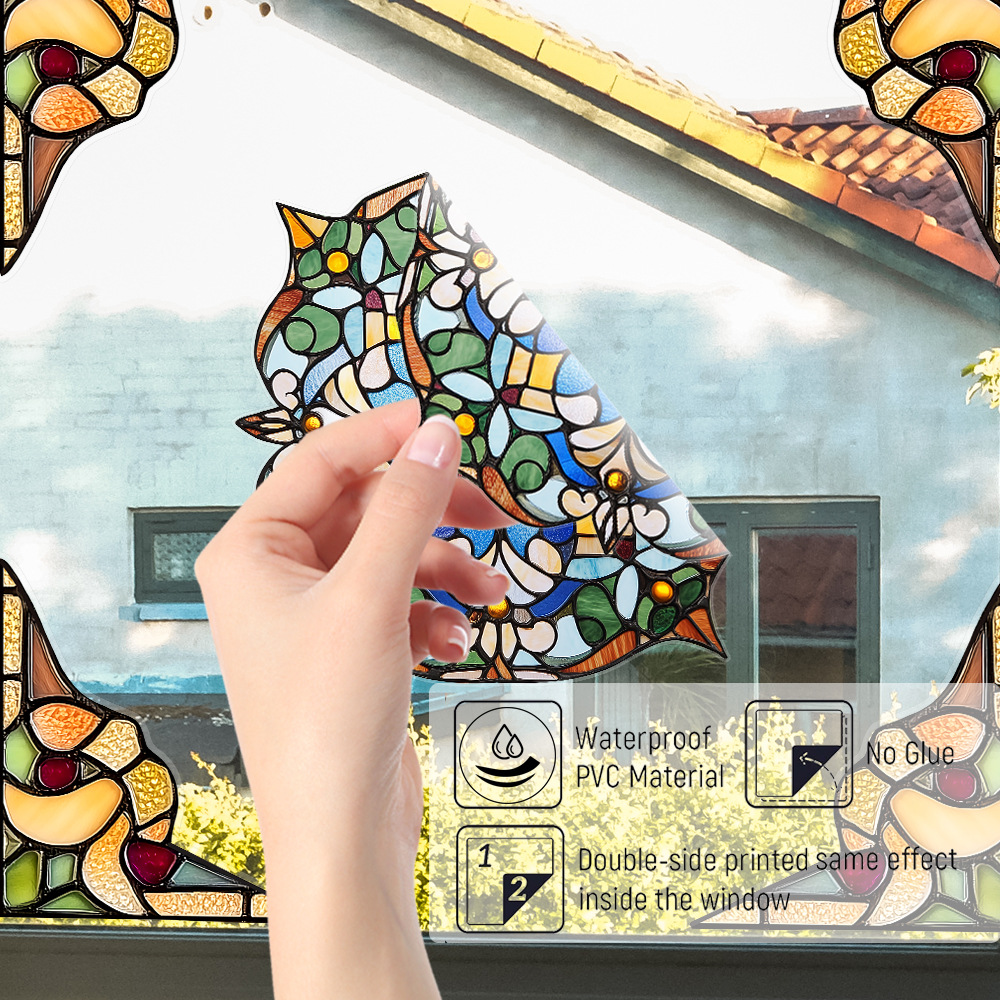 CBCJD301-320 양면 컬러 코너 꽃 정전기 유리 스티커 새 충돌 방지 PVC 경고 창 필름