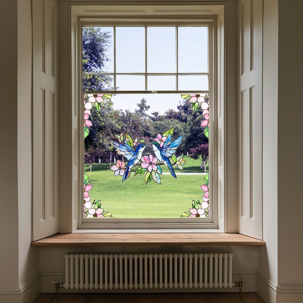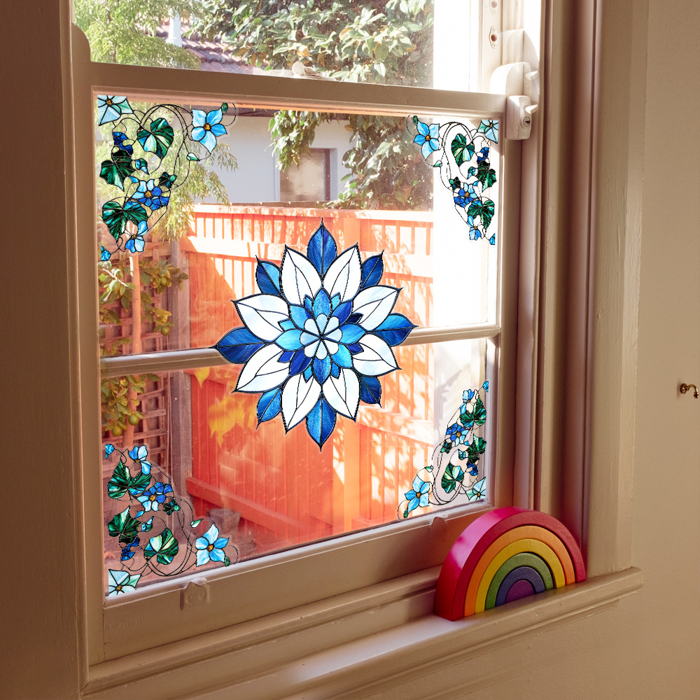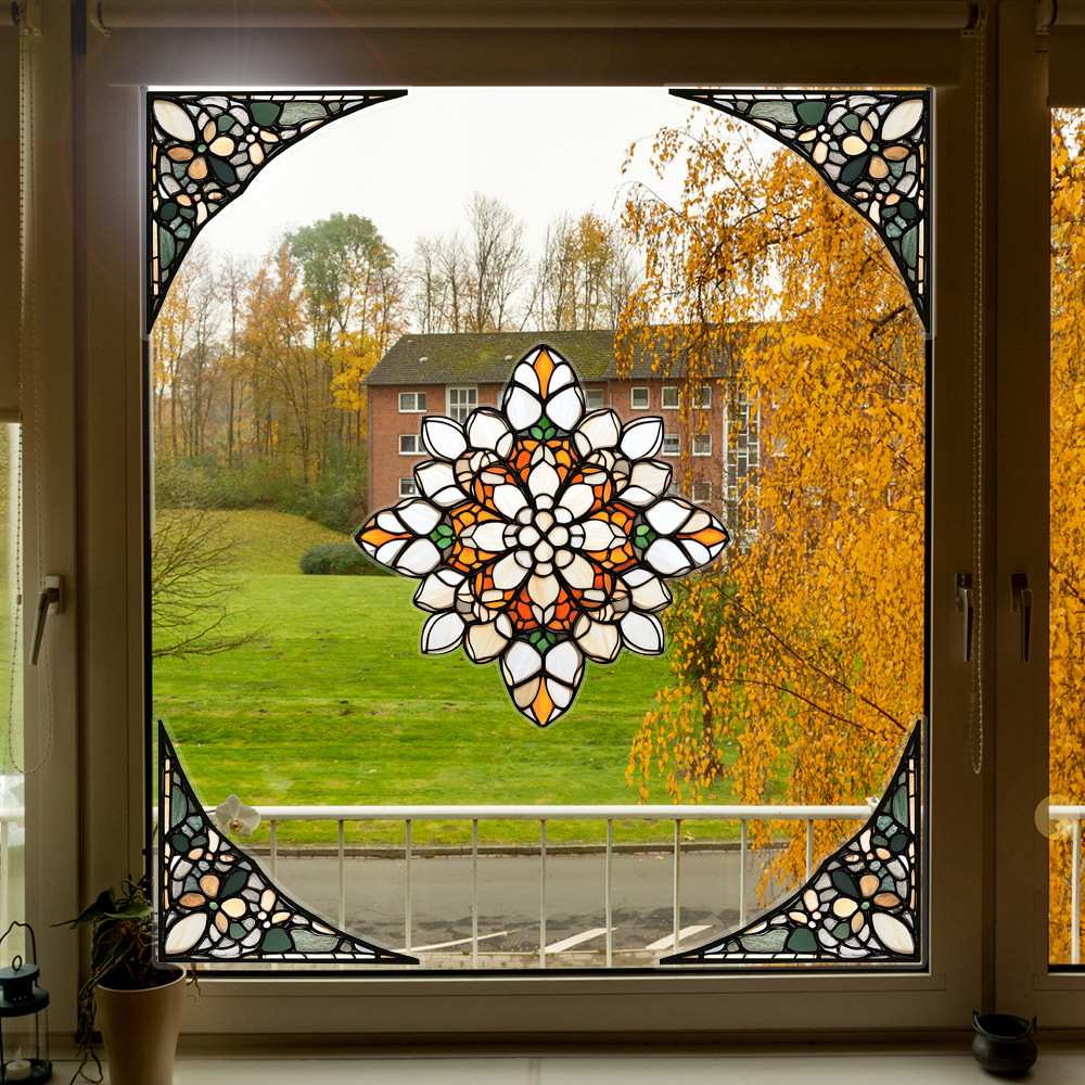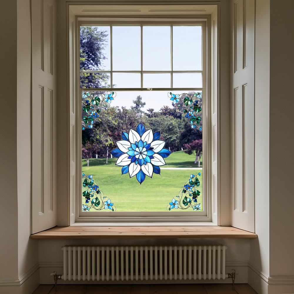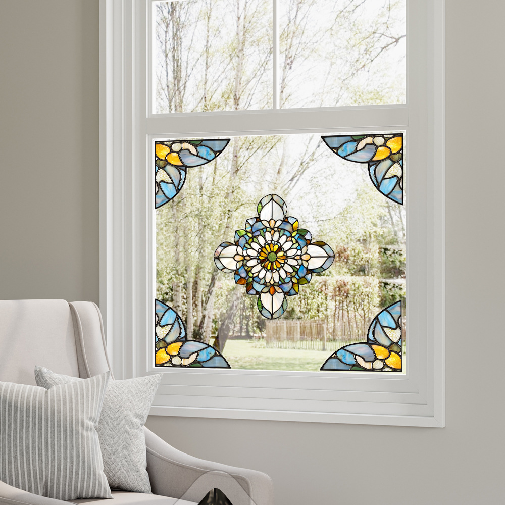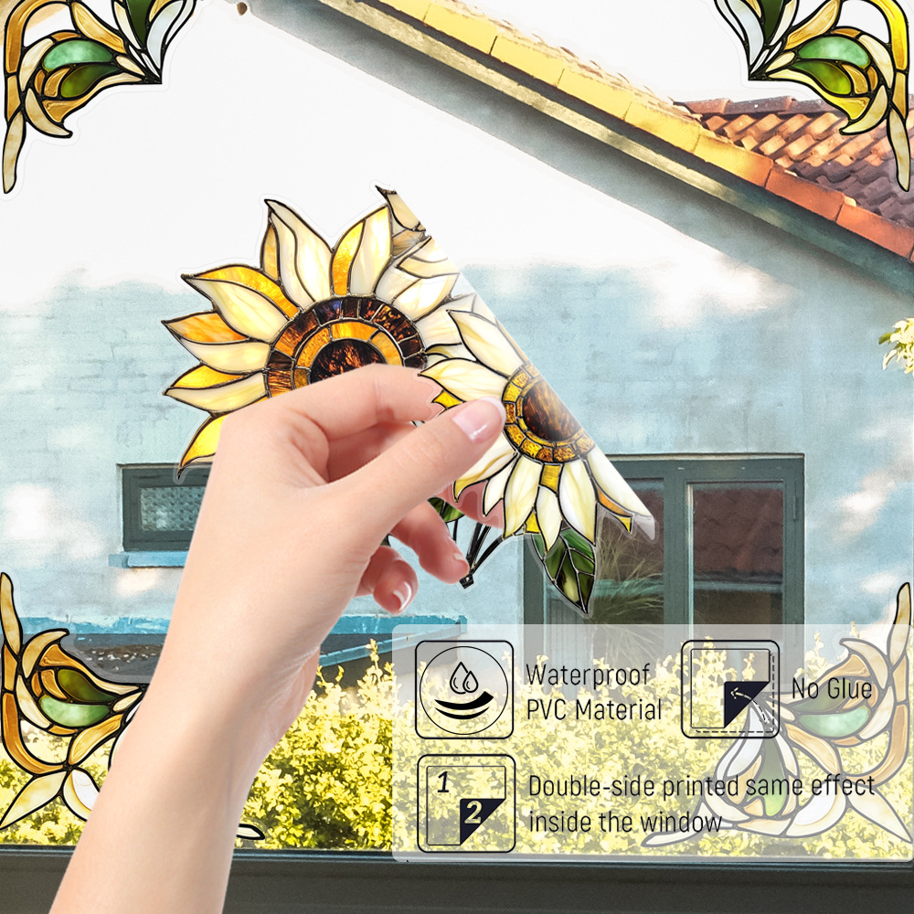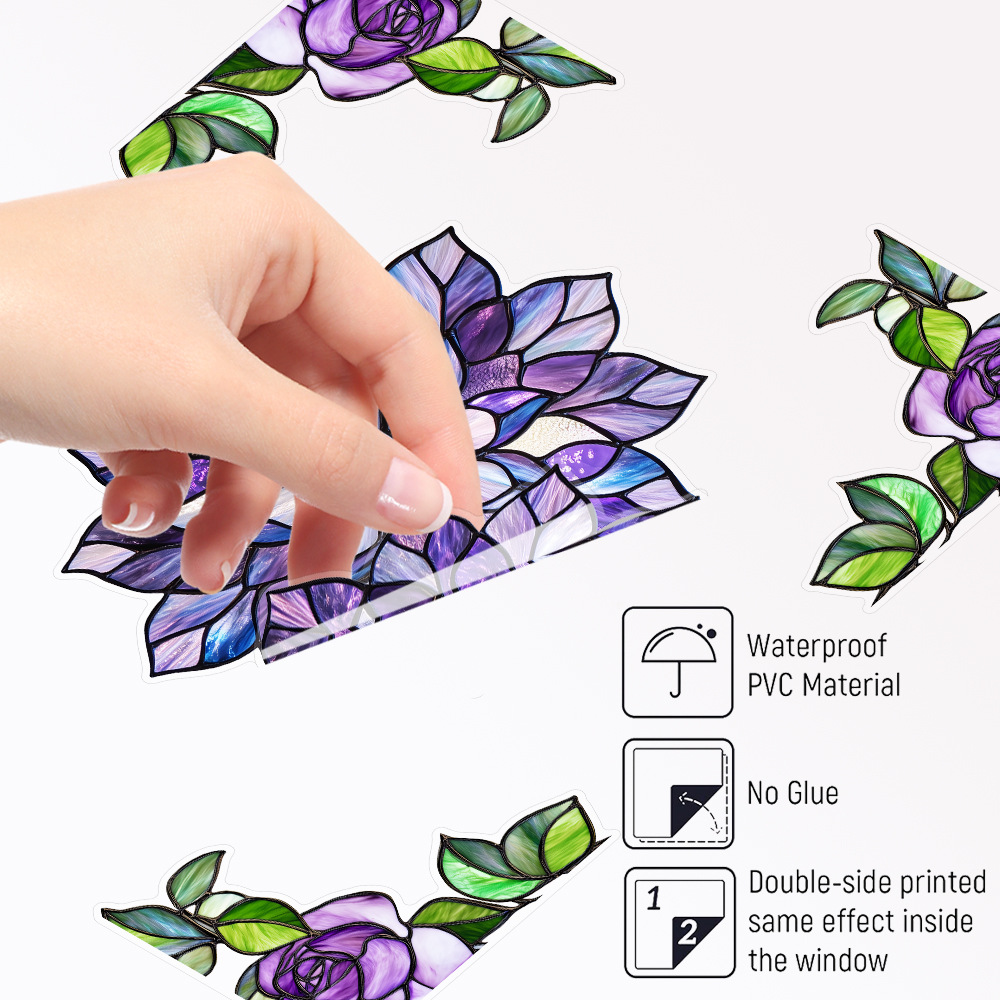 CBCJD301-320 양면 컬러 코너 꽃 정전기 유리 스티커 새 충돌 방지 PVC 경고 창 필름