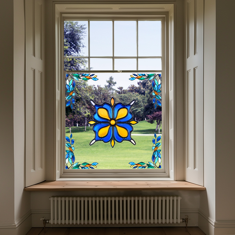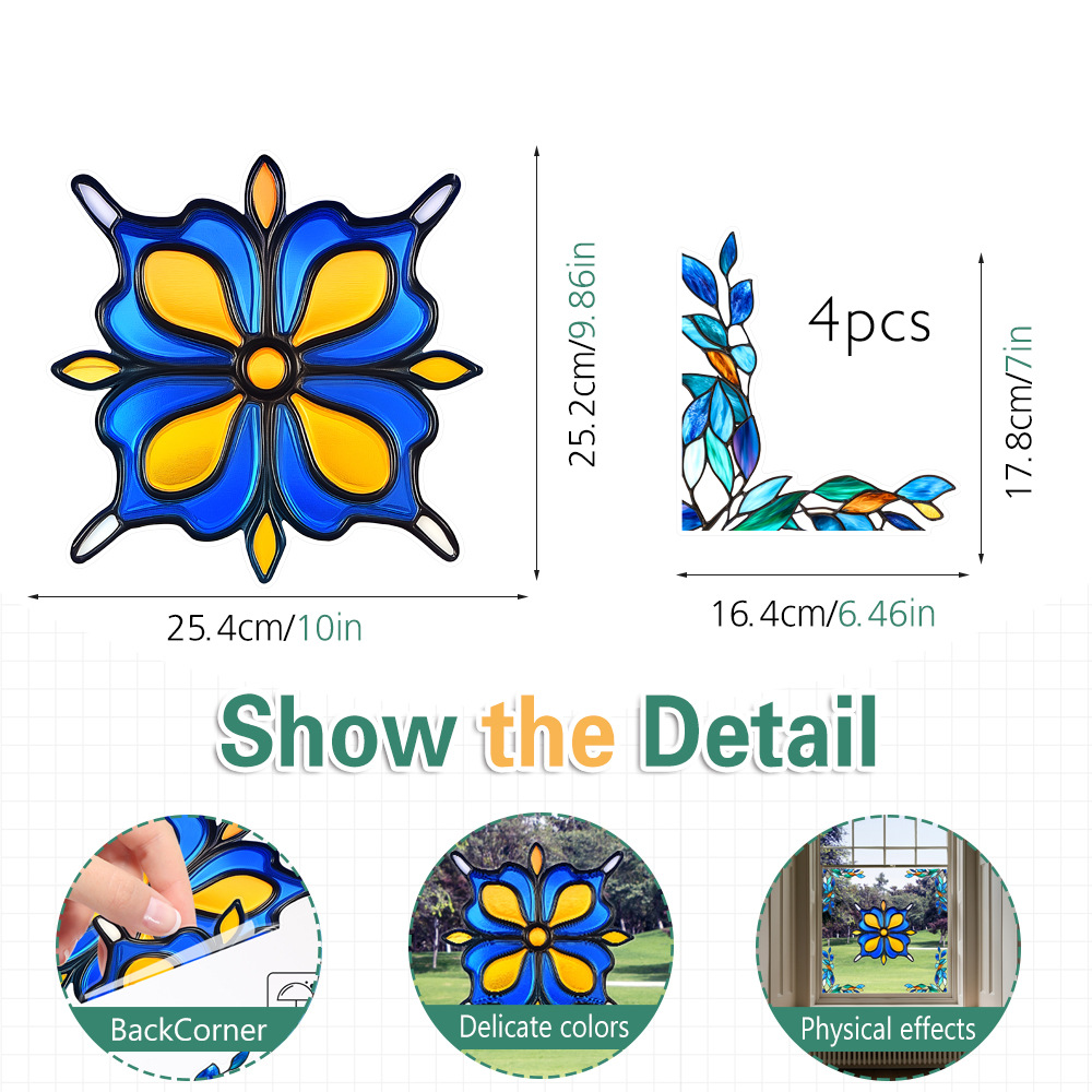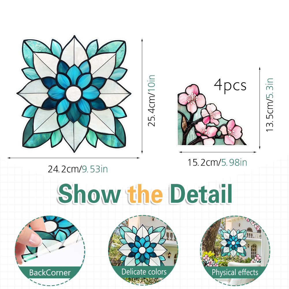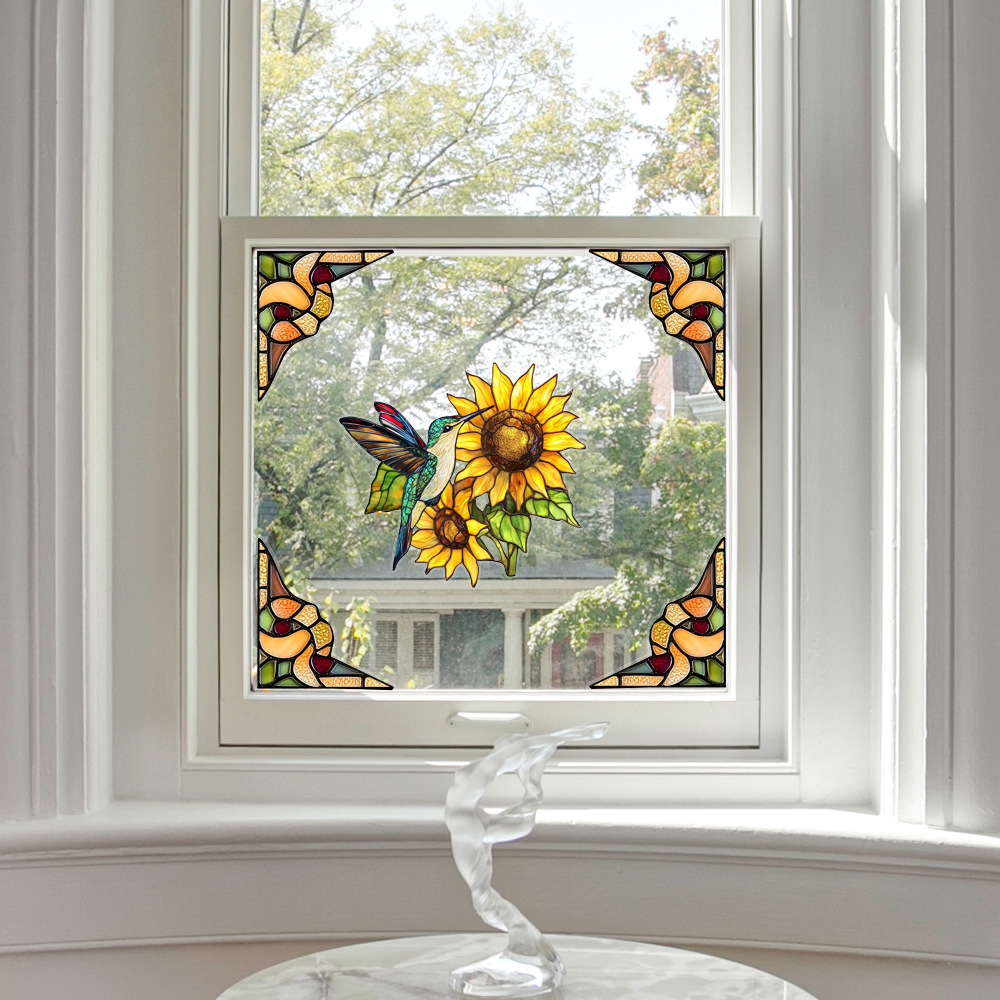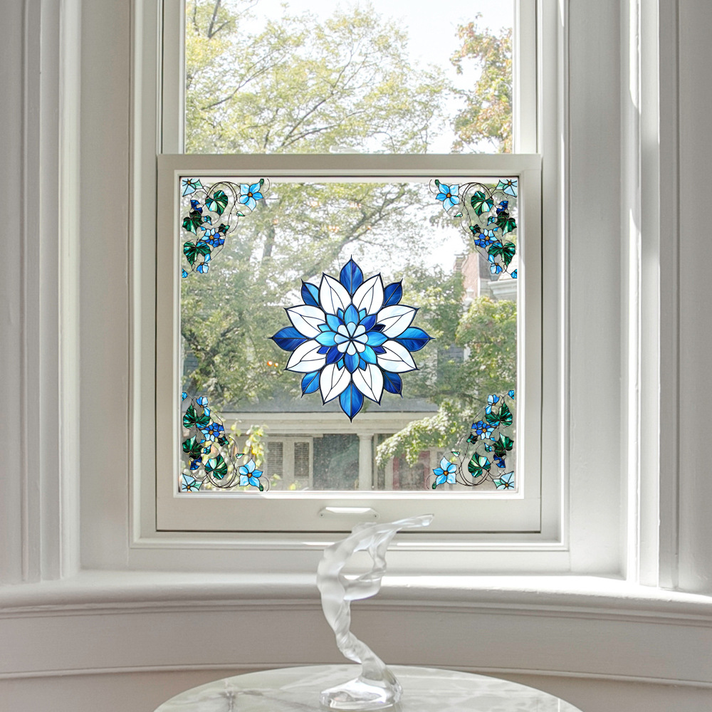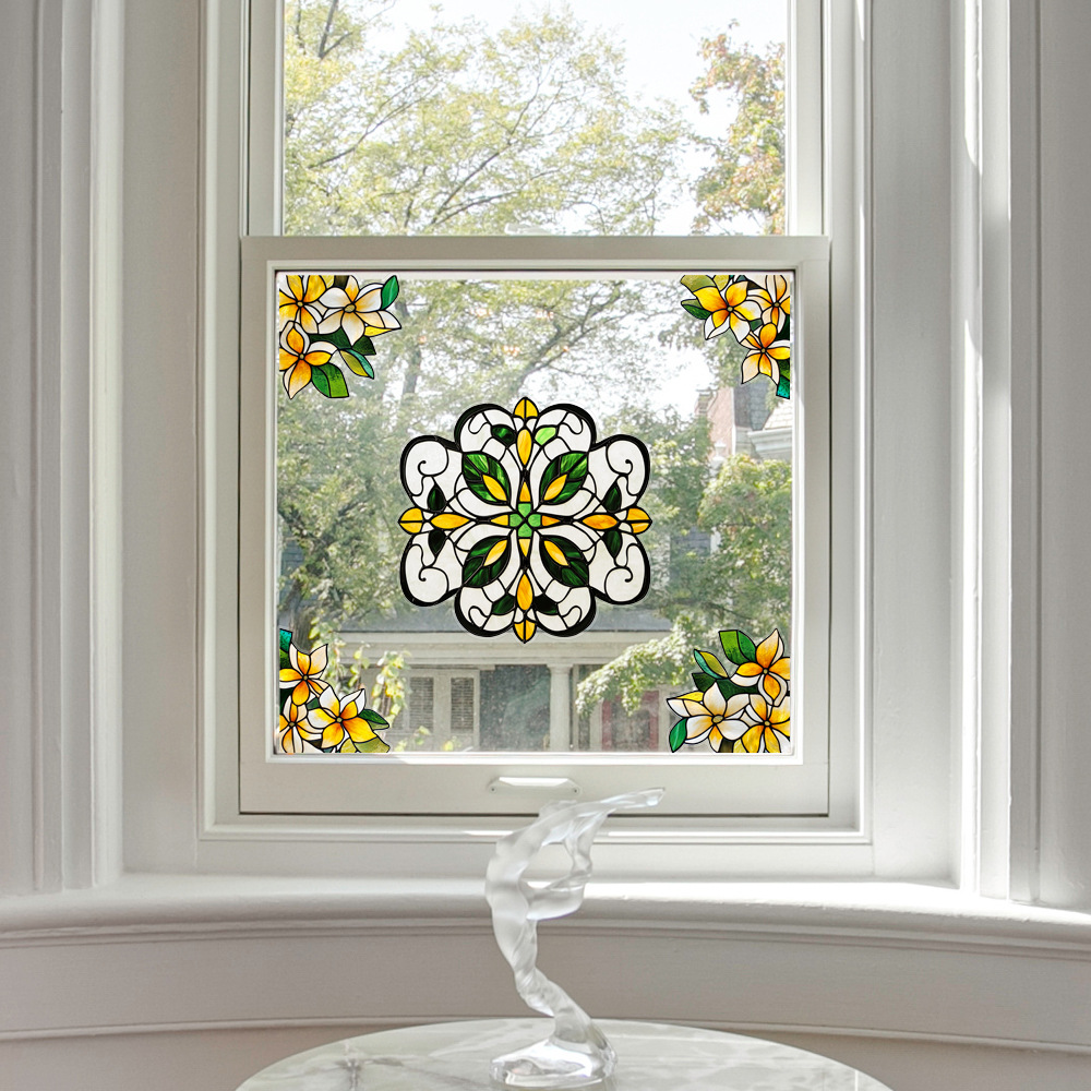 CBCJD301-320 양면 컬러 코너 꽃 정전기 유리 스티커 새 충돌 방지 PVC 경고 창 필름