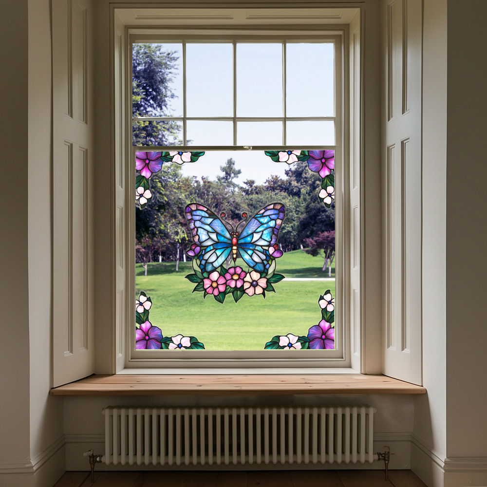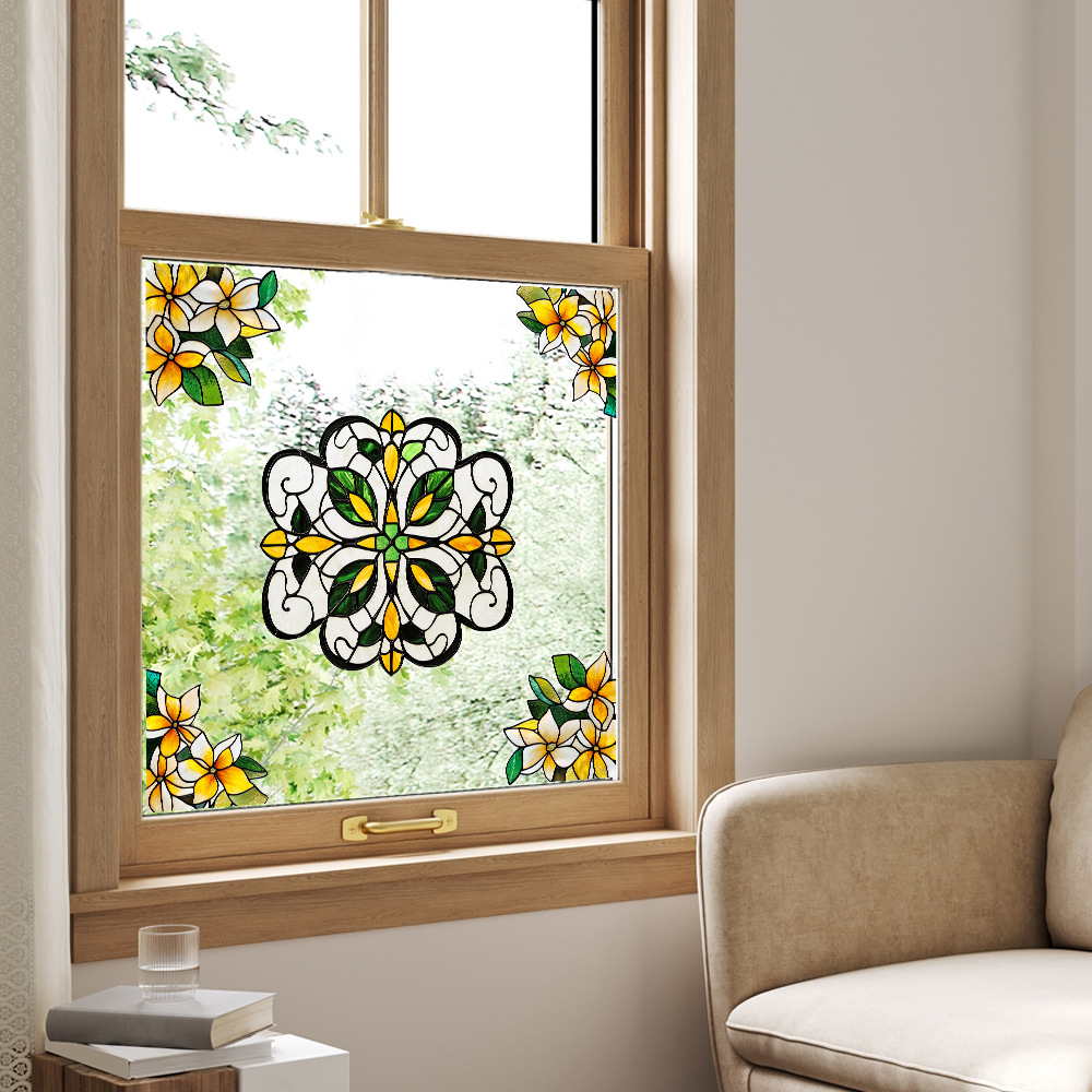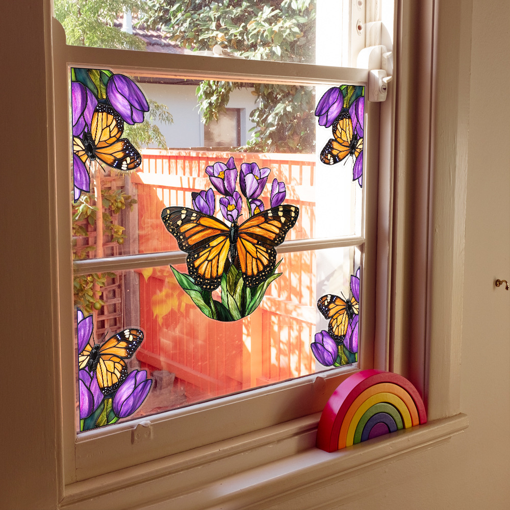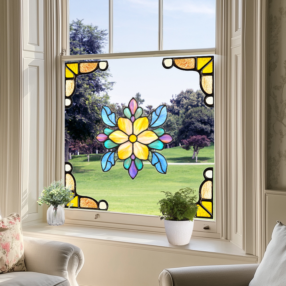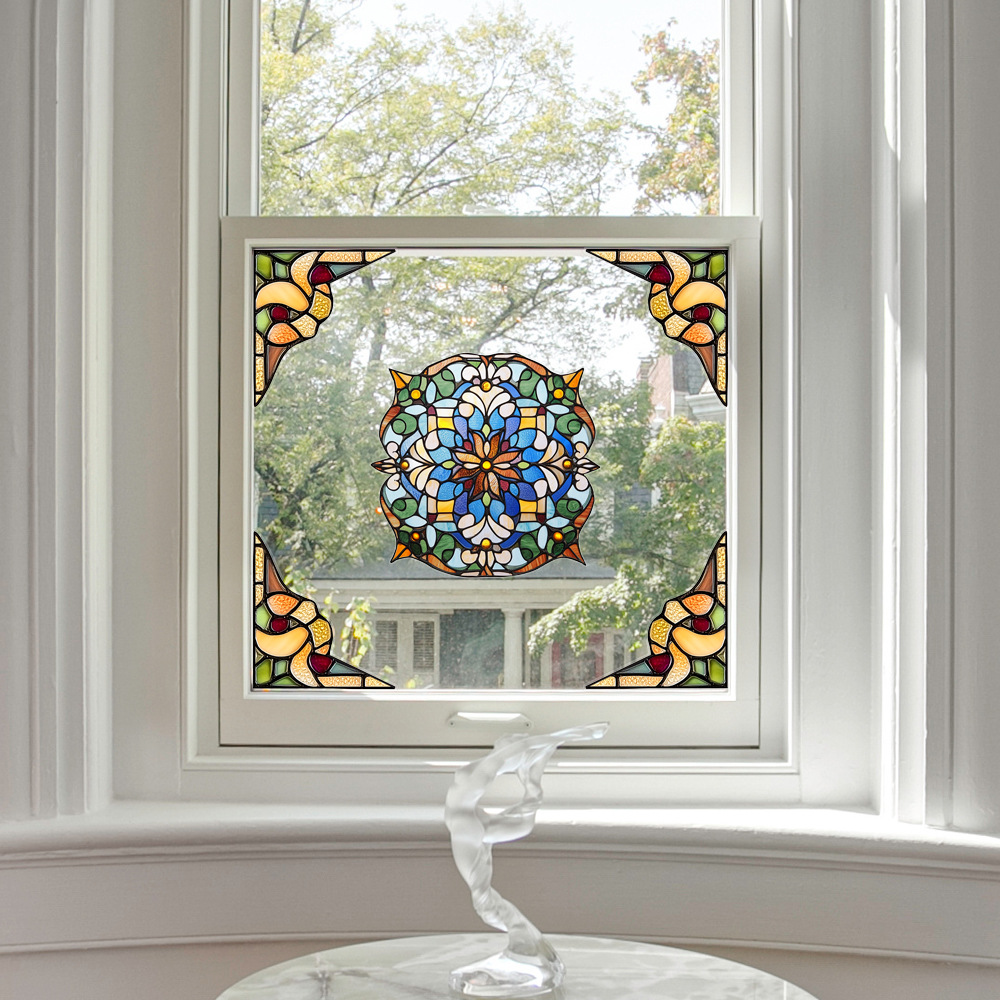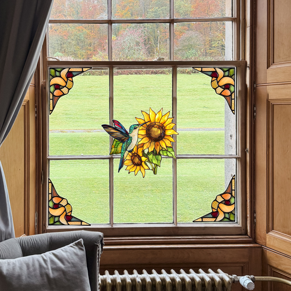 CBCJD301-320 양면 컬러 코너 꽃 정전기 유리 스티커 새 충돌 방지 PVC 경고 창 필름