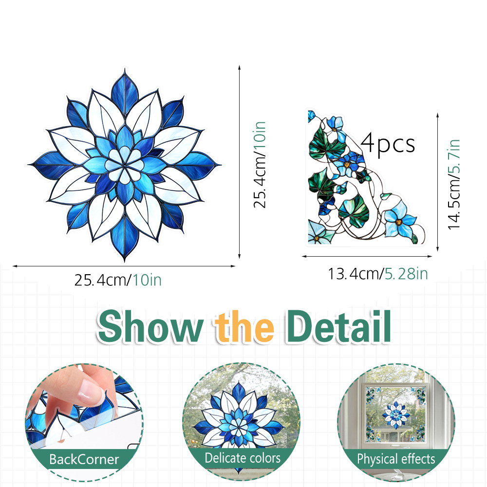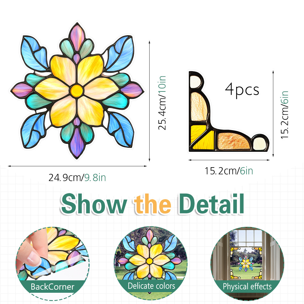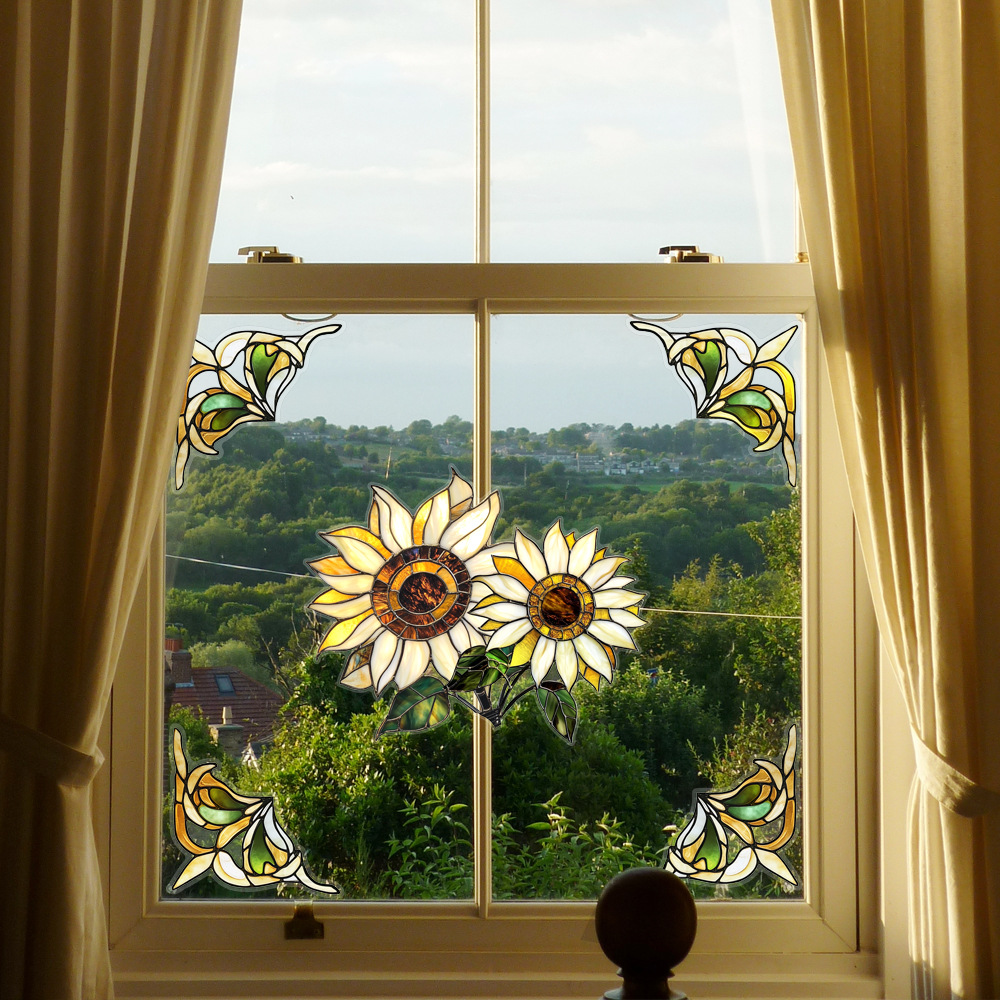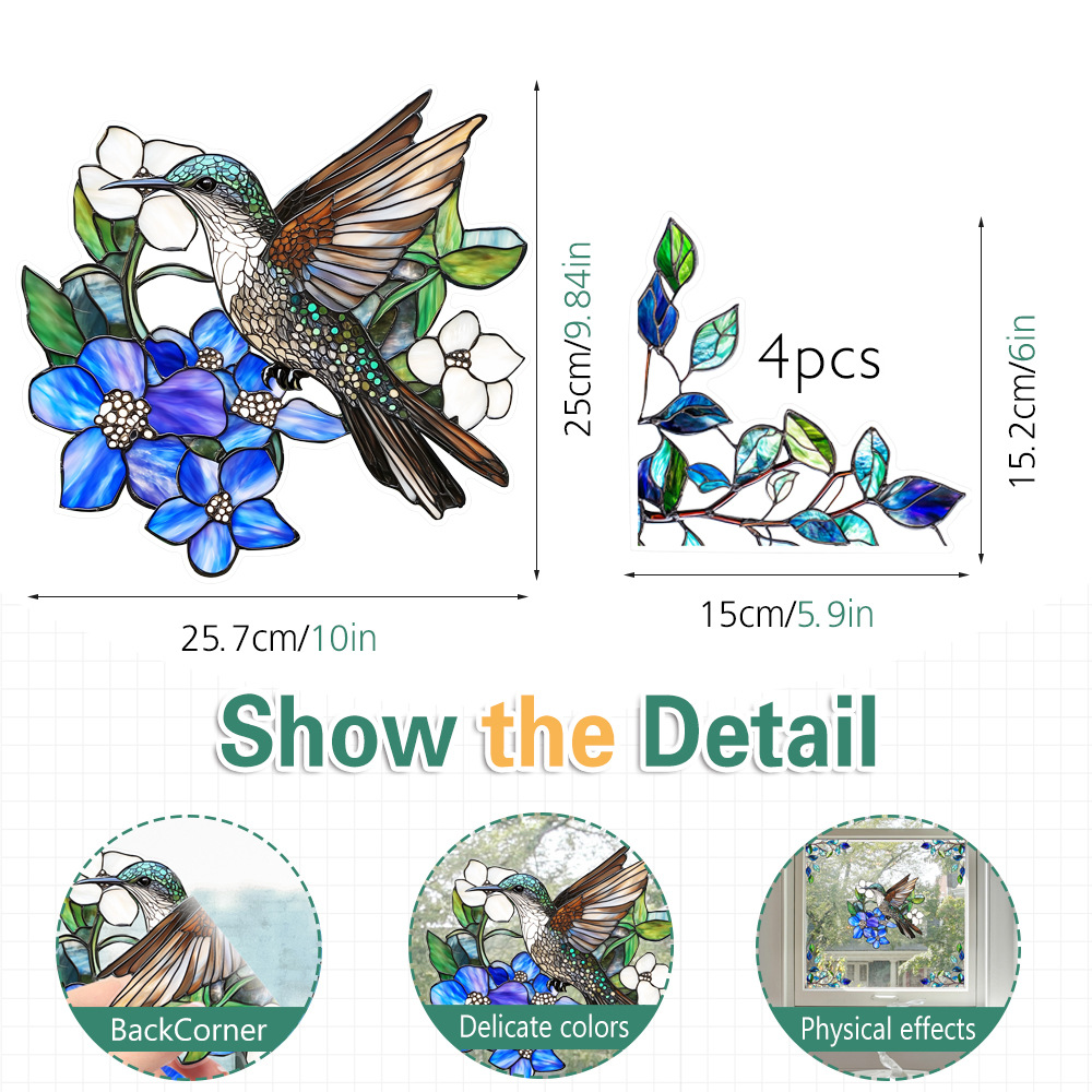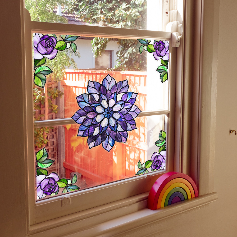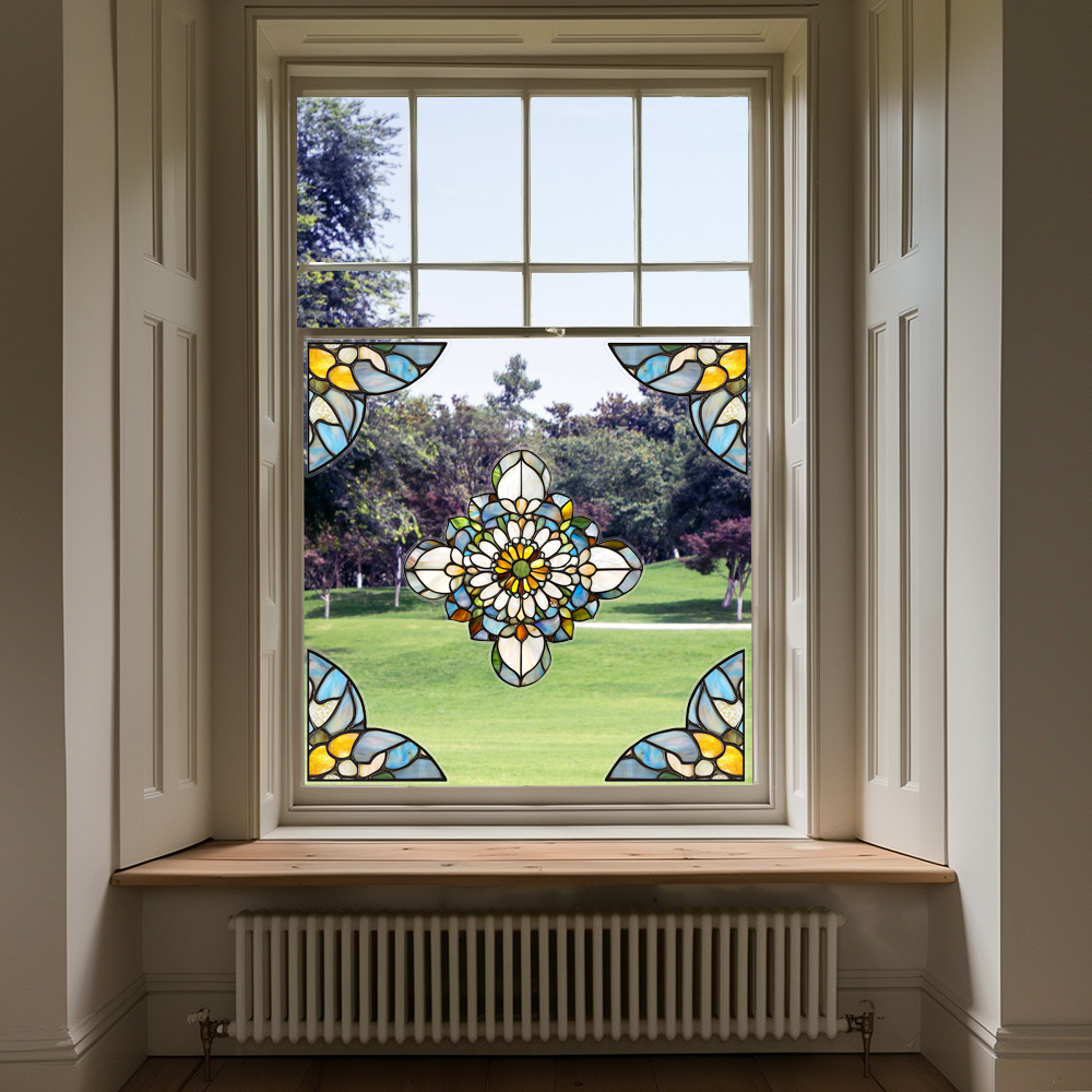 CBCJD301-320 양면 컬러 코너 꽃 정전기 유리 스티커 새 충돌 방지 PVC 경고 창 필름
