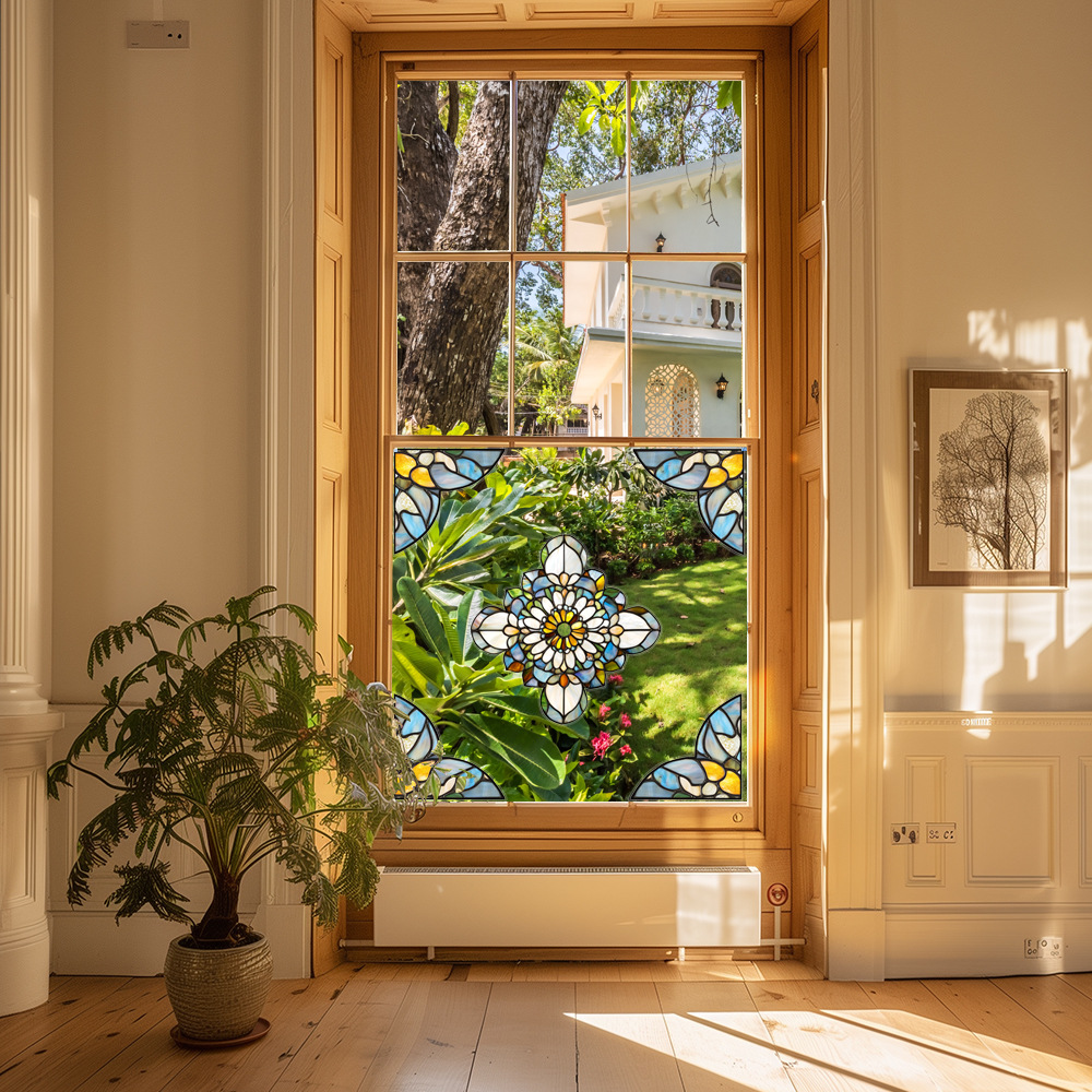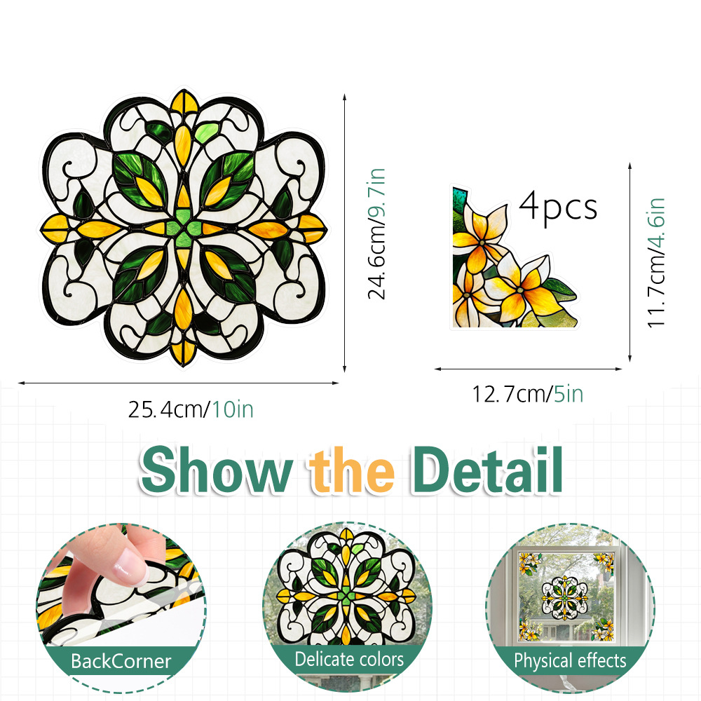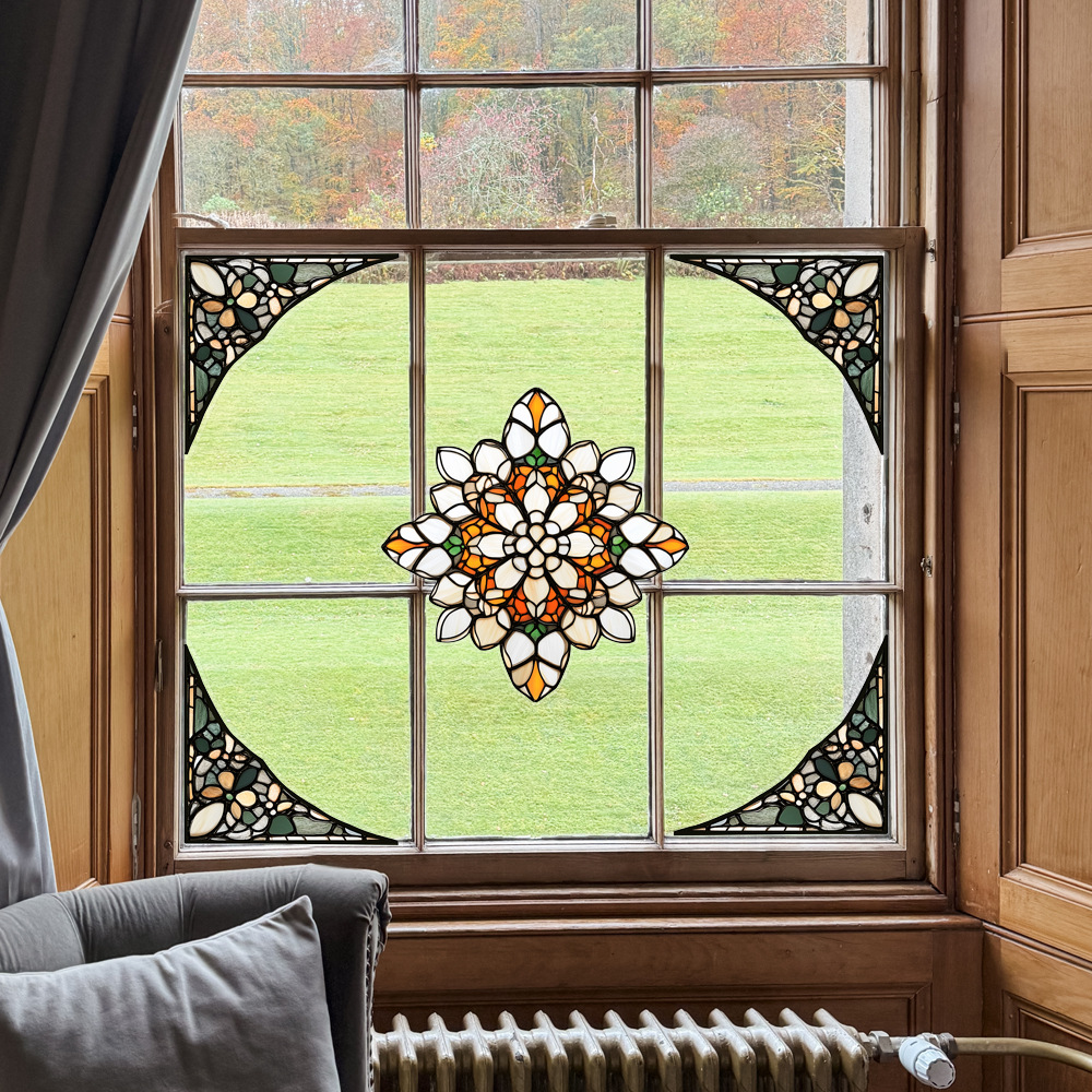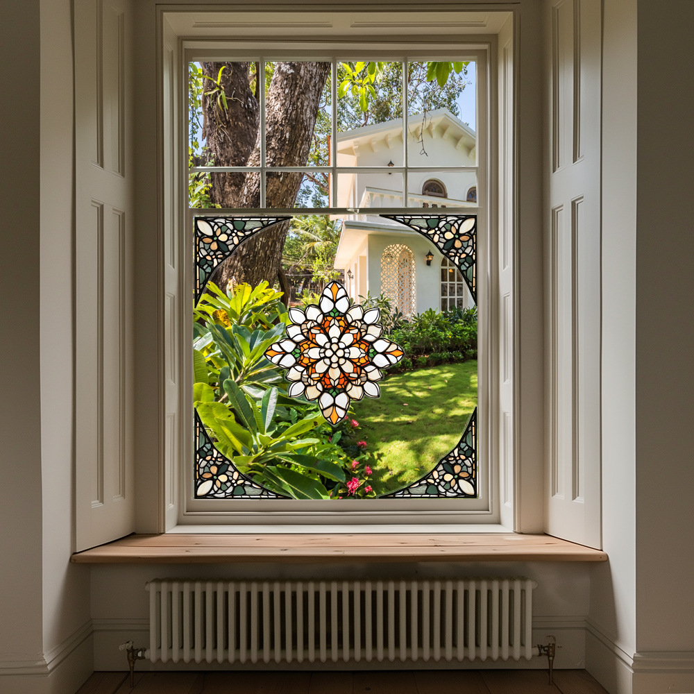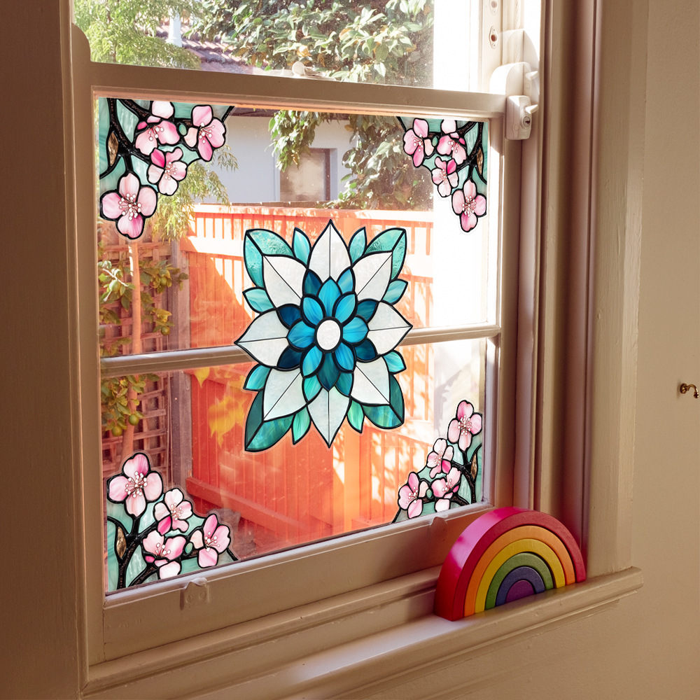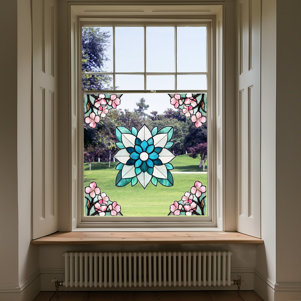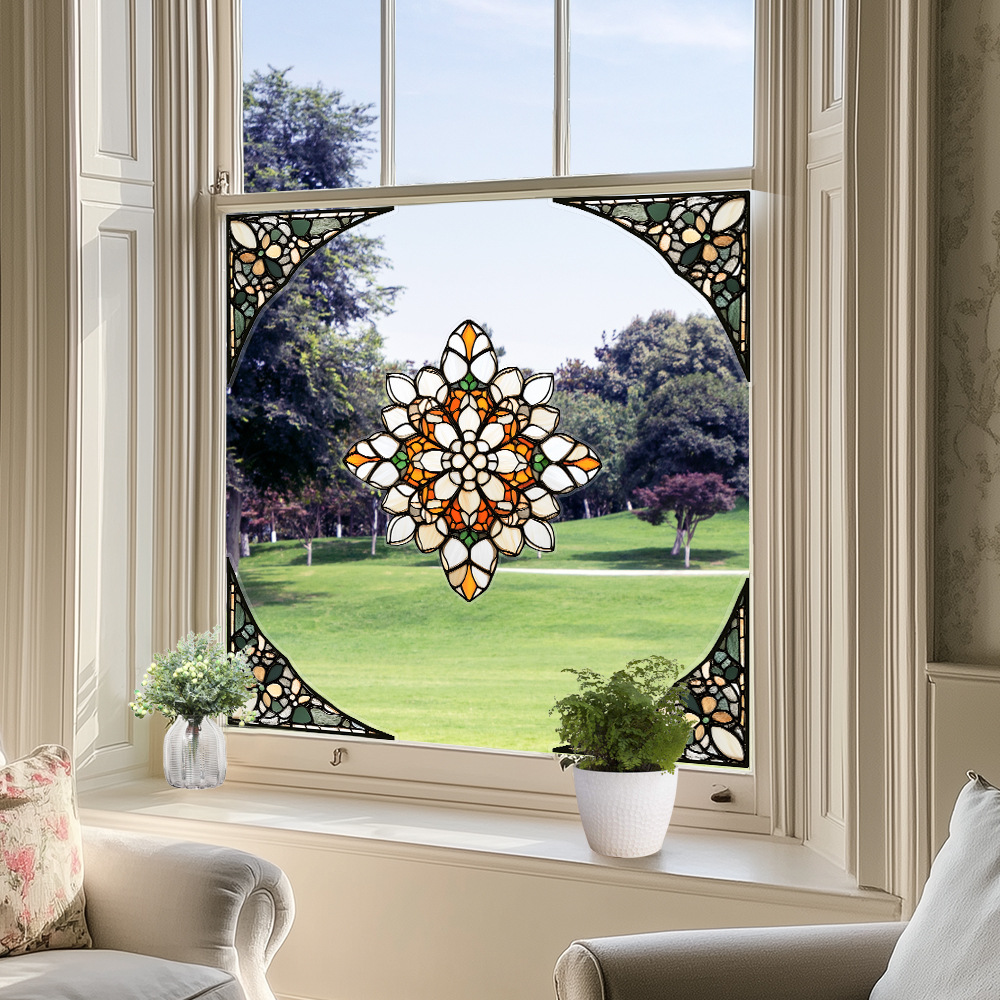 CBCJD301-320 양면 컬러 코너 꽃 정전기 유리 스티커 새 충돌 방지 PVC 경고 창 필름