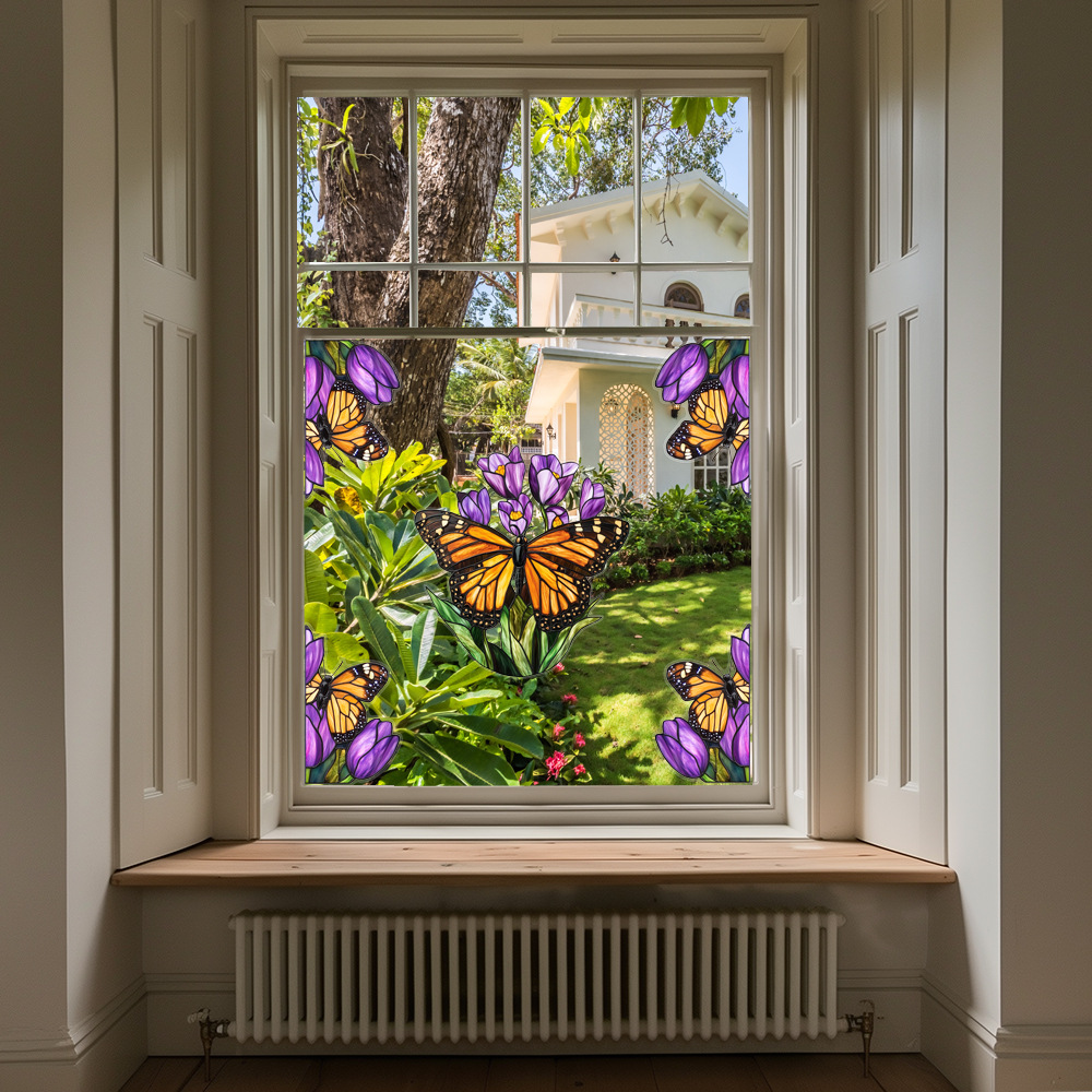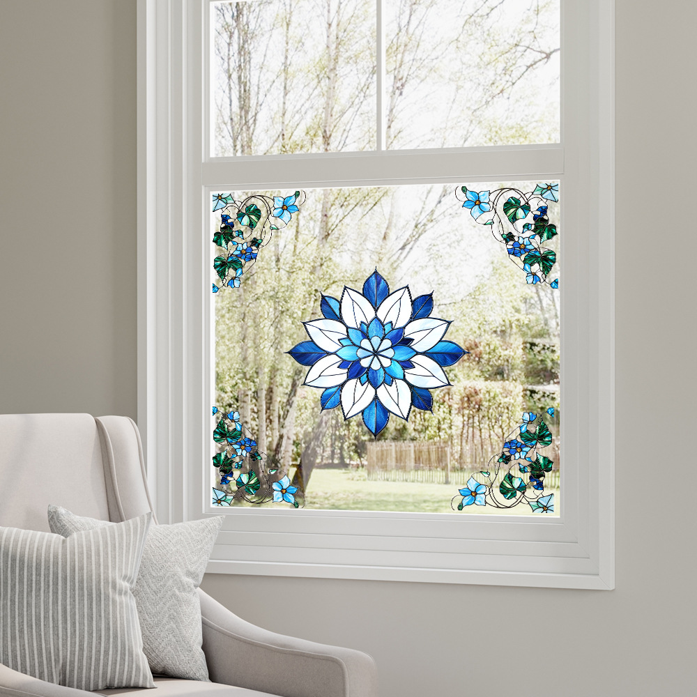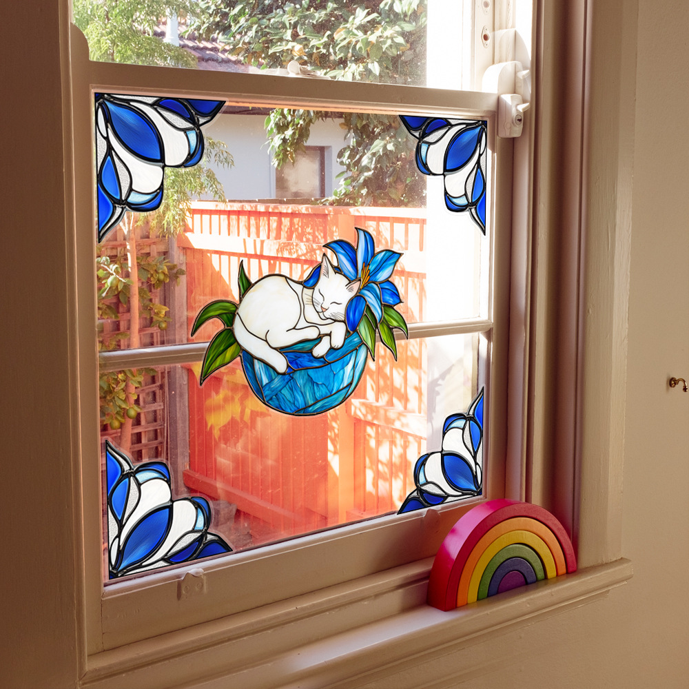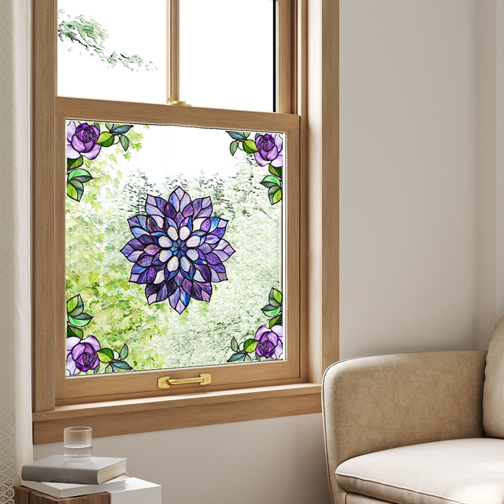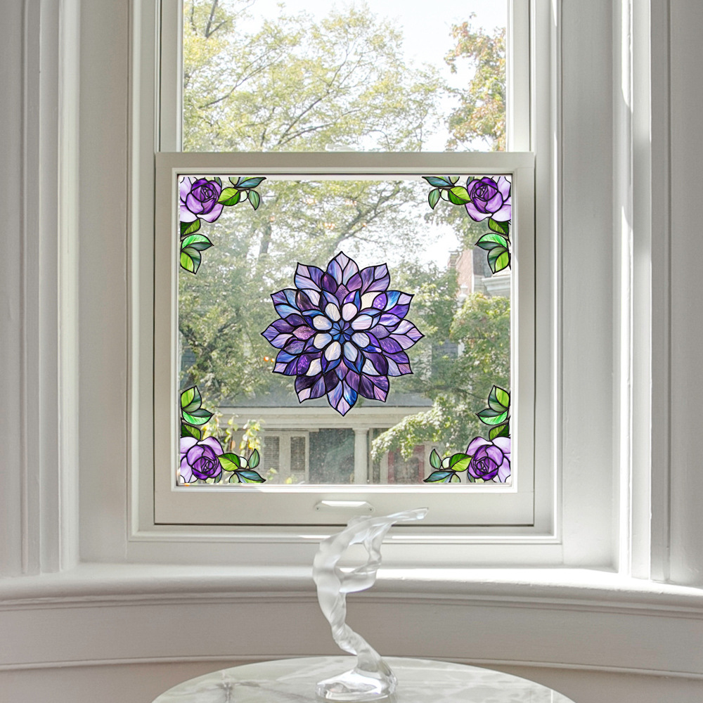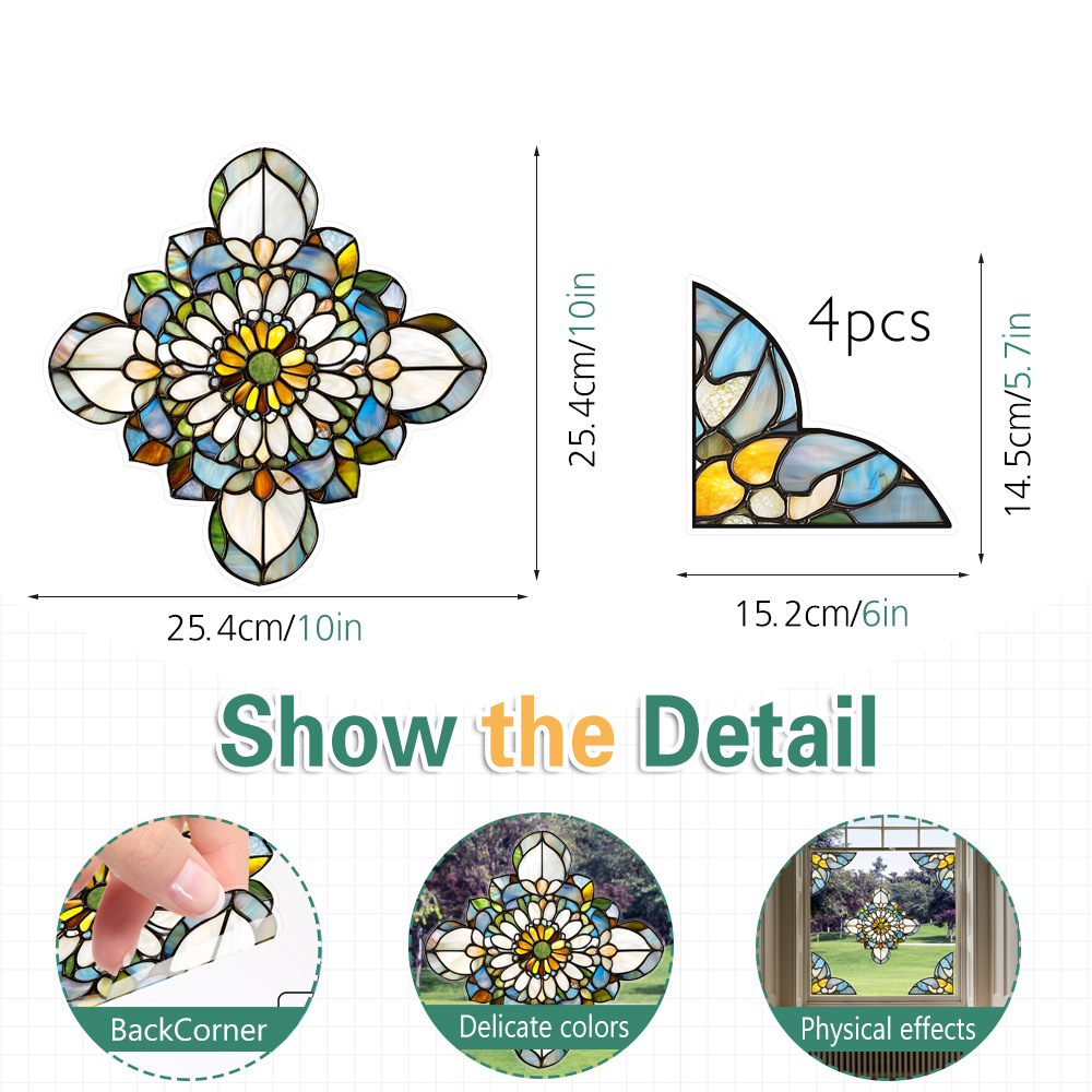 CBCJD301-320 양면 컬러 코너 꽃 정전기 유리 스티커 새 충돌 방지 PVC 경고 창 필름