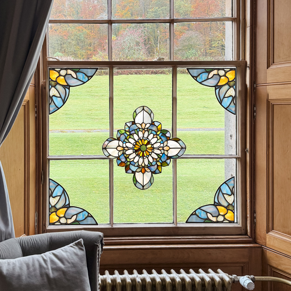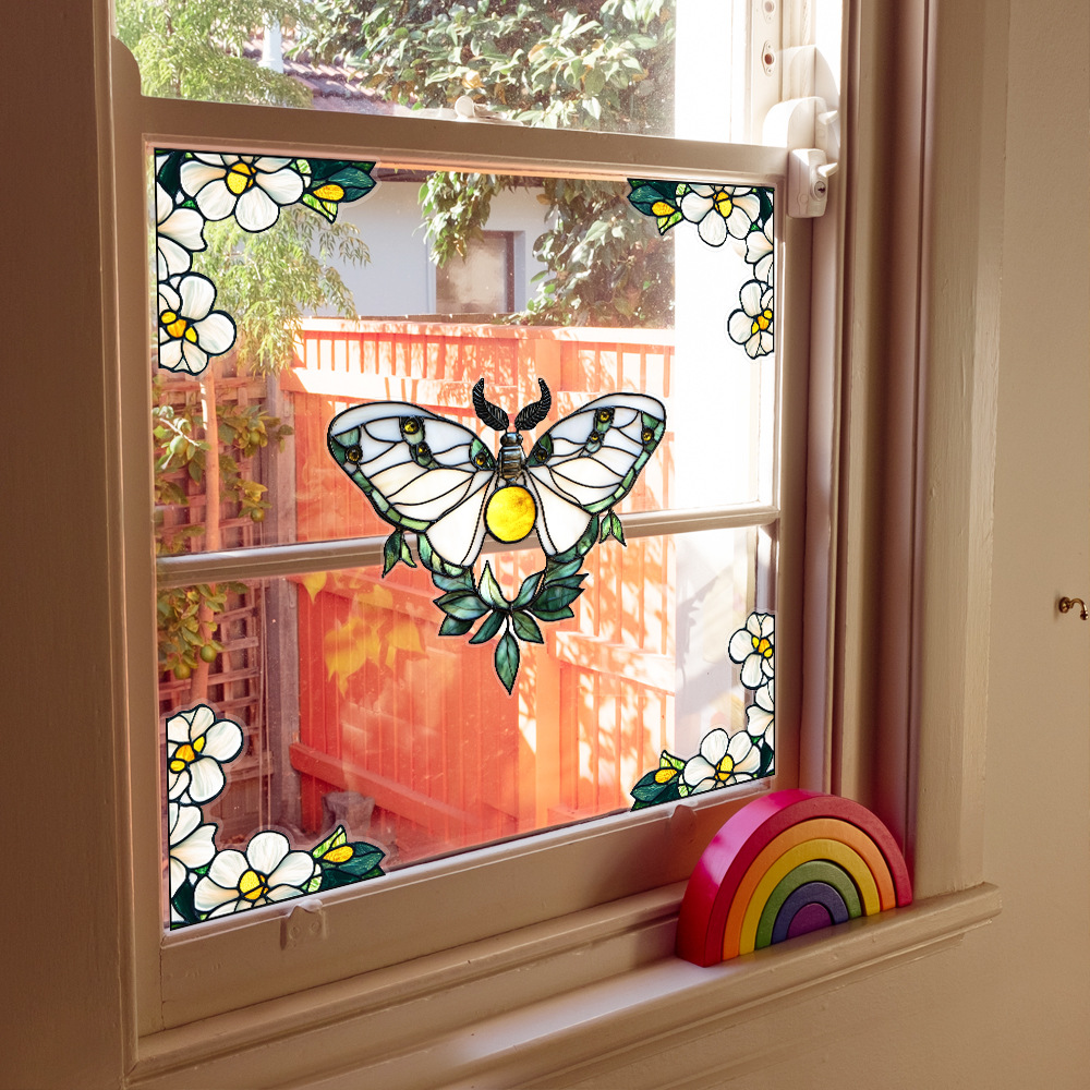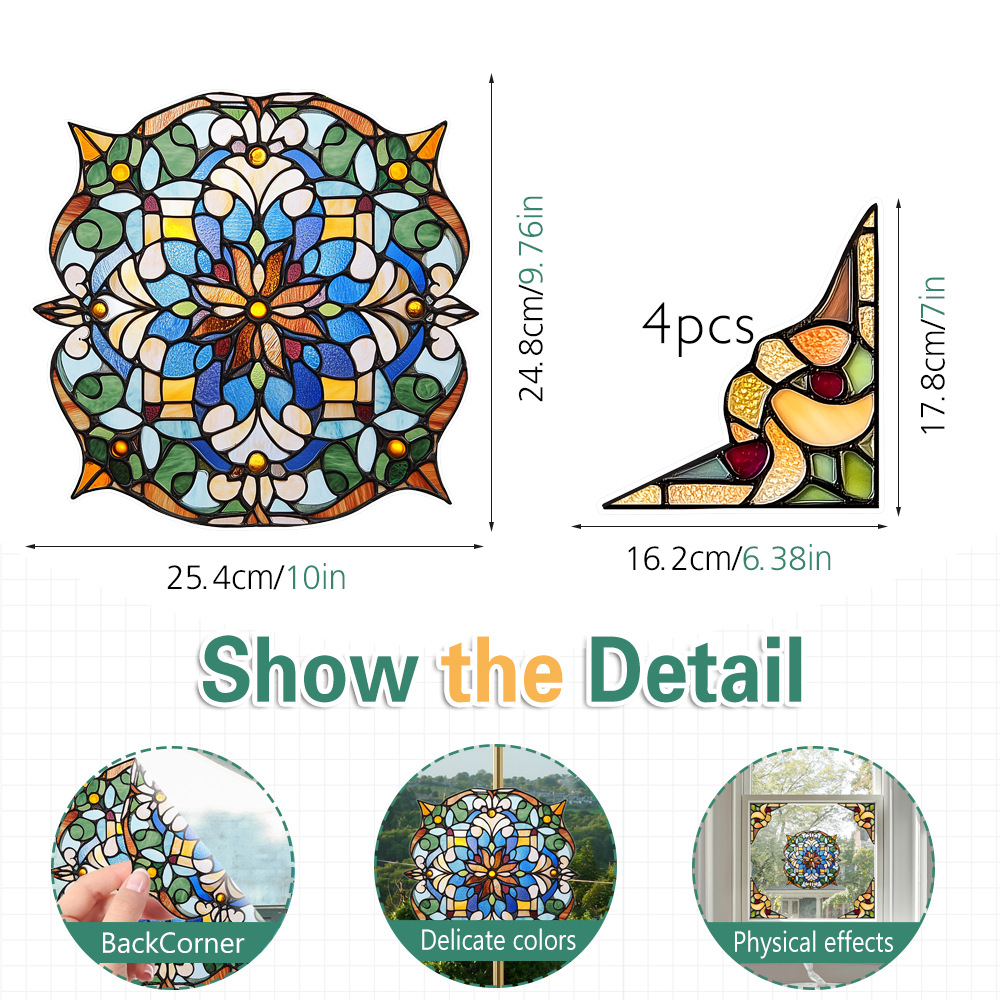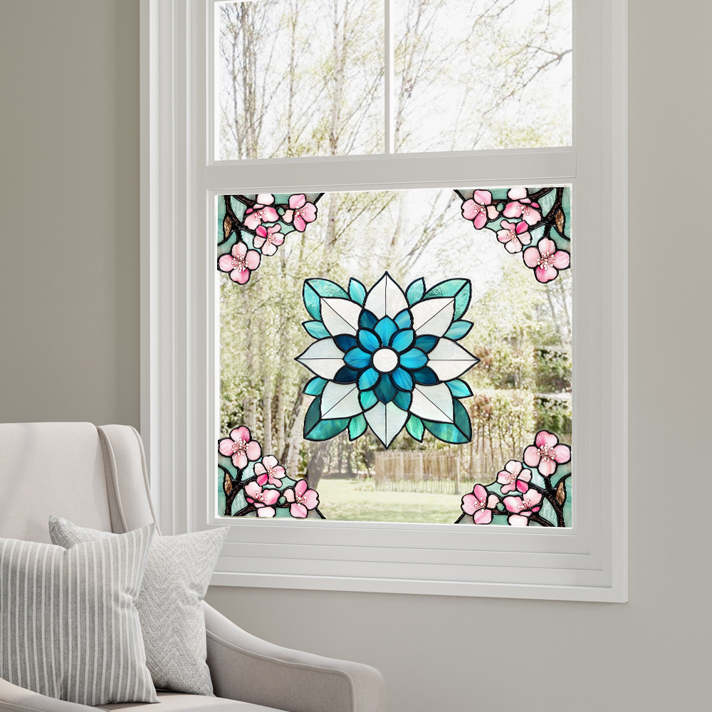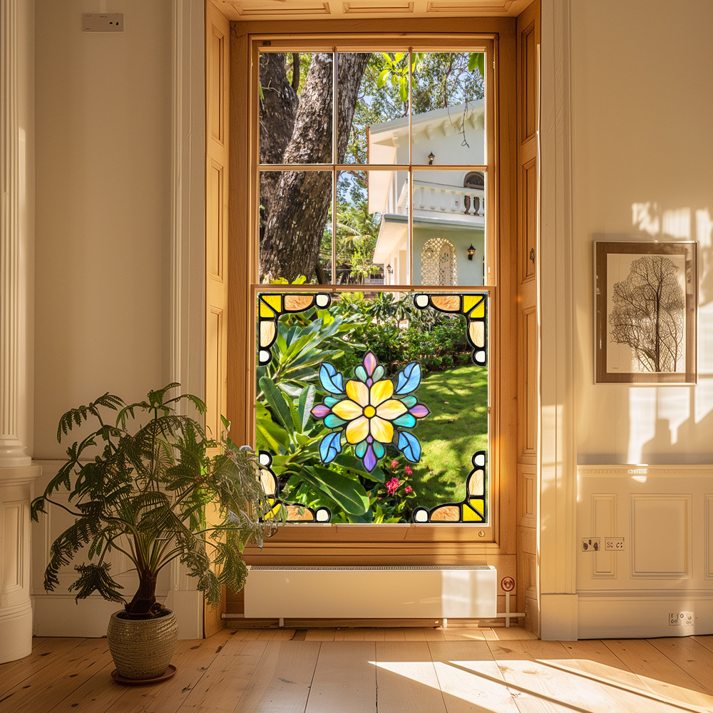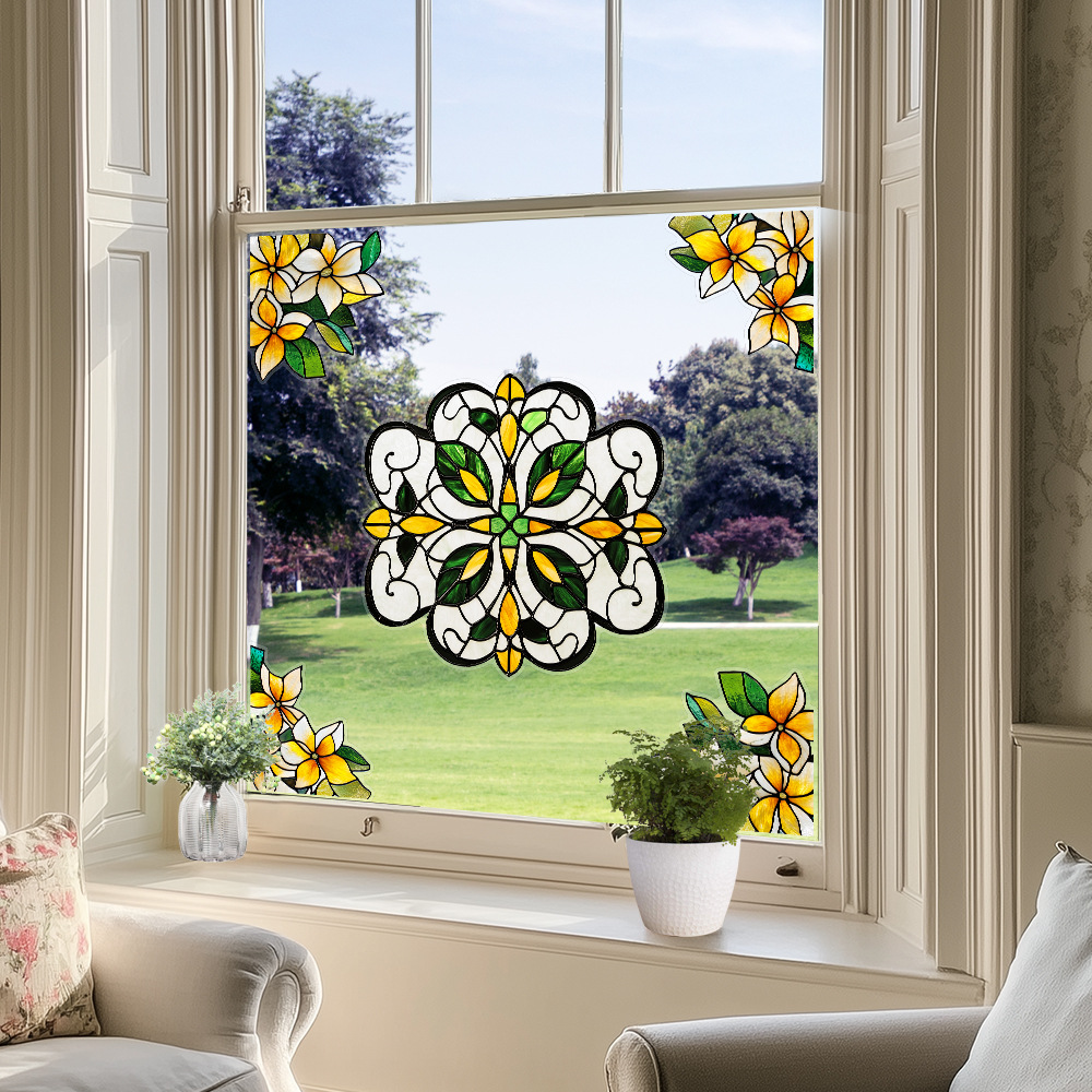 CBCJD301-320 양면 컬러 코너 꽃 정전기 유리 스티커 새 충돌 방지 PVC 경고 창 필름