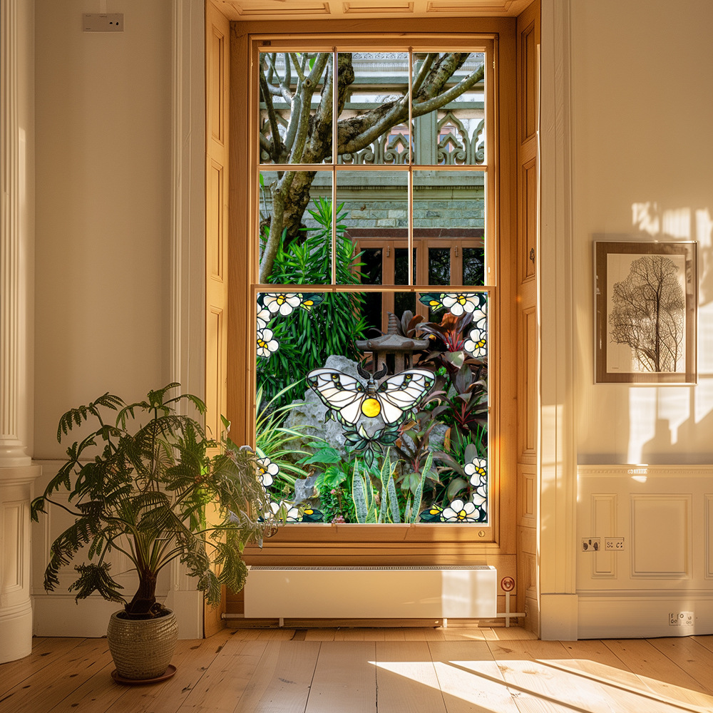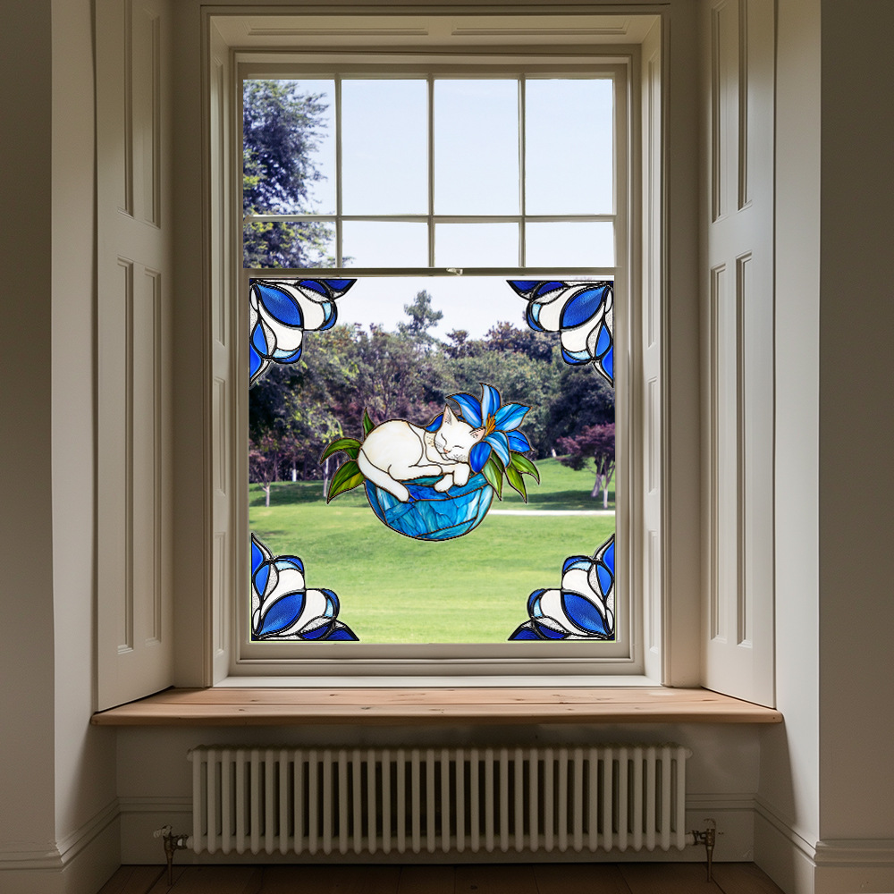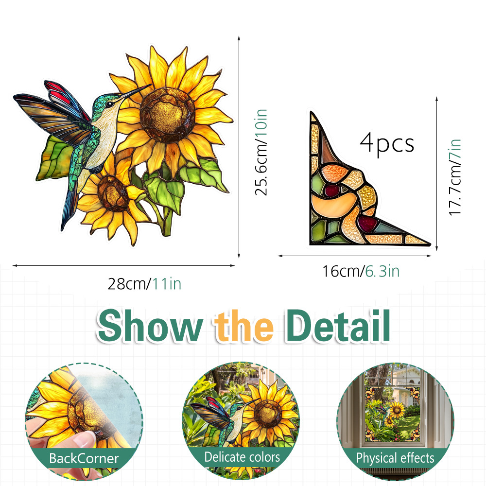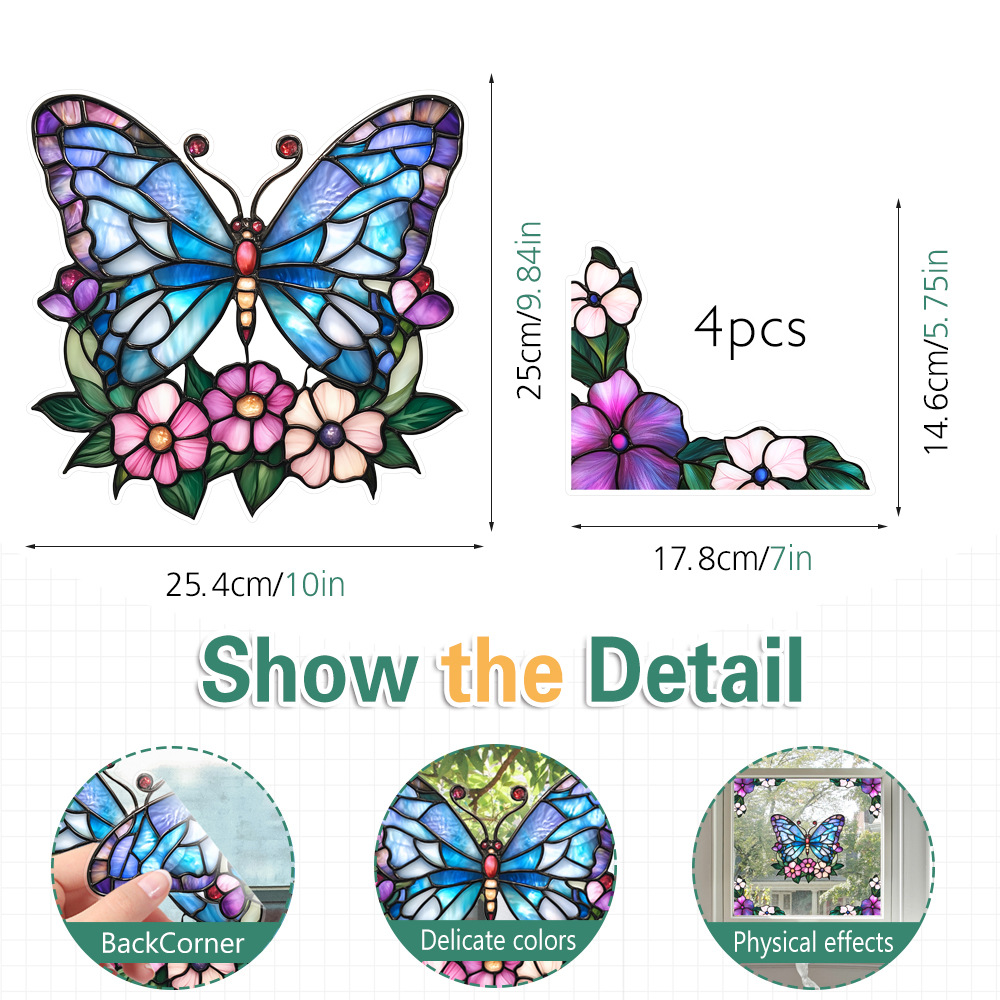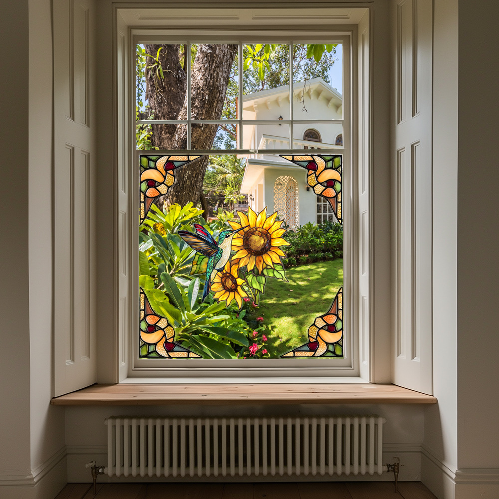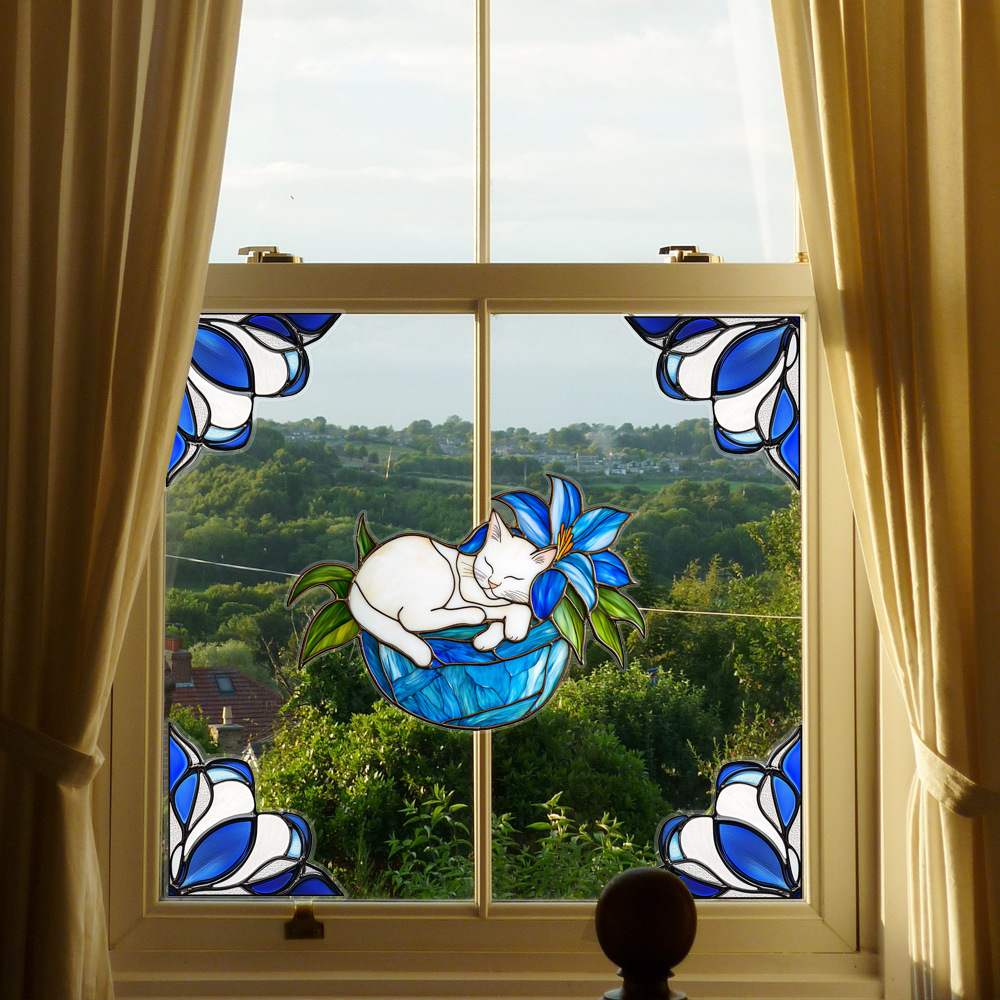 CBCJD301-320 양면 컬러 코너 꽃 정전기 유리 스티커 새 충돌 방지 PVC 경고 창 필름