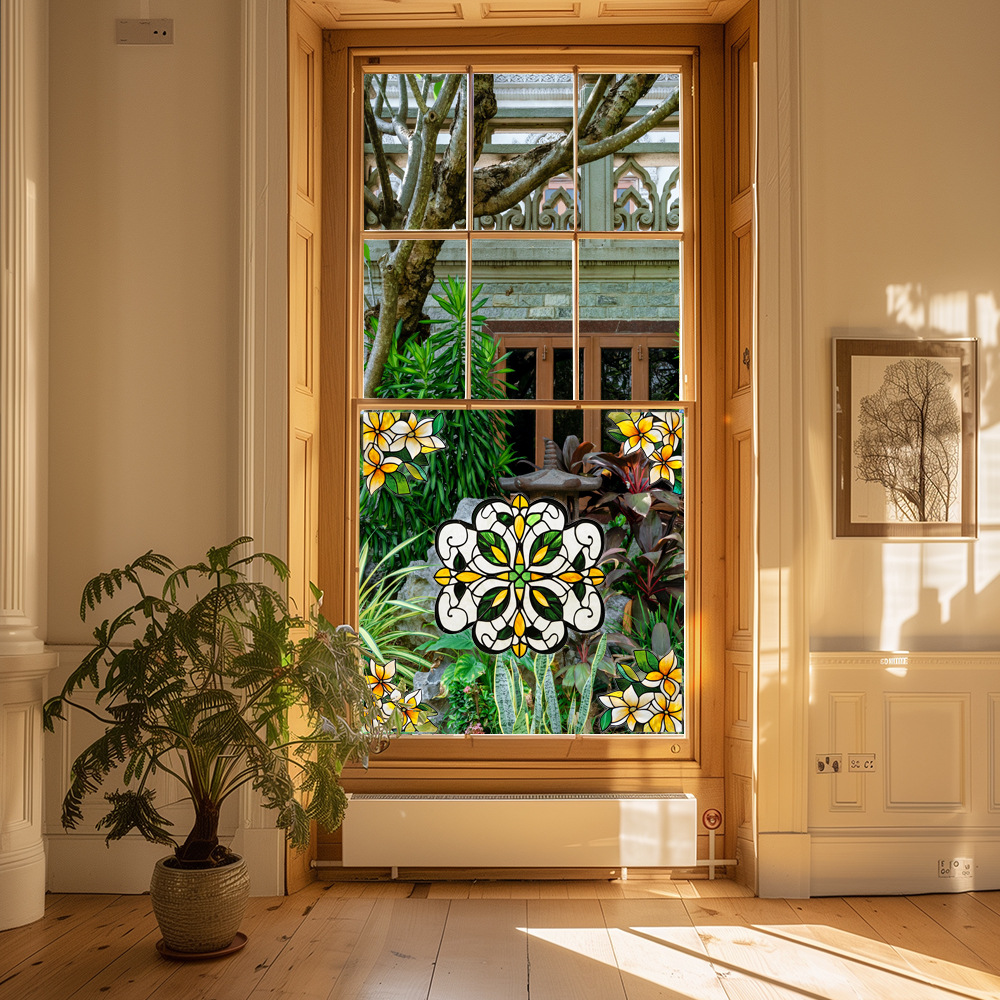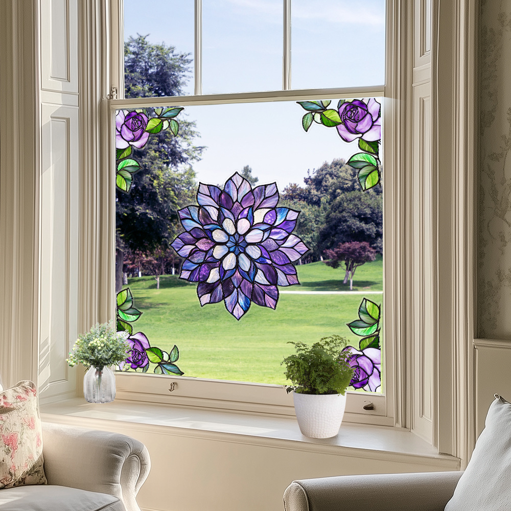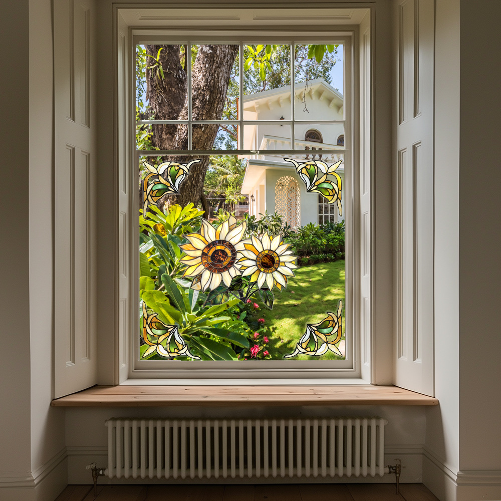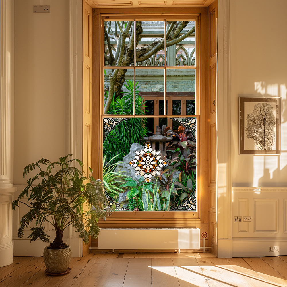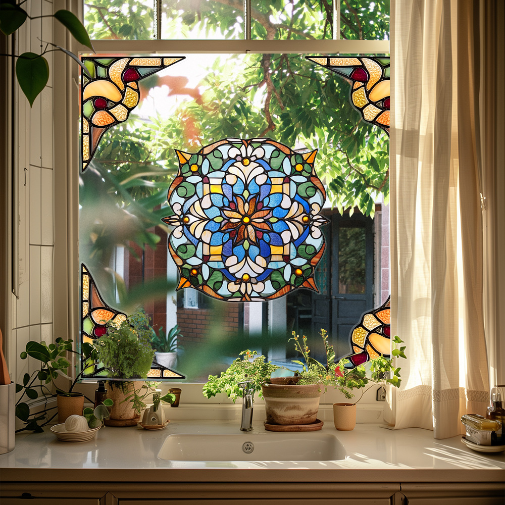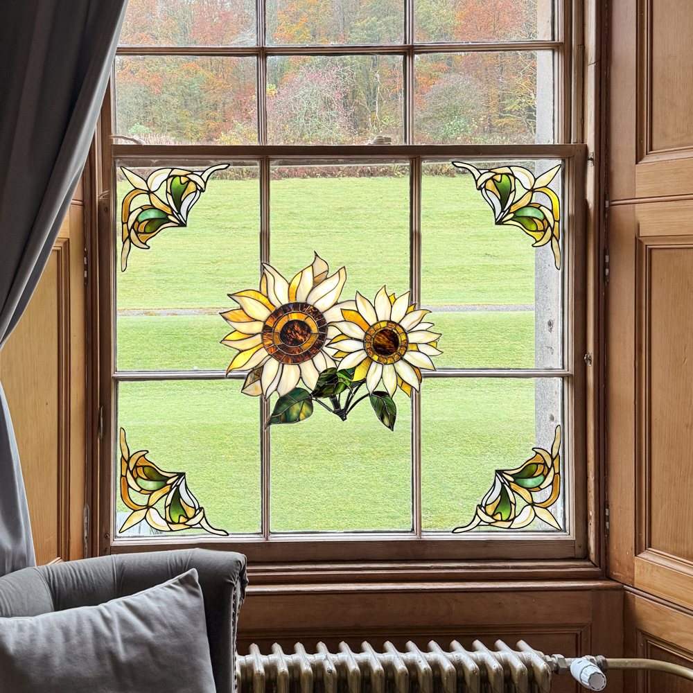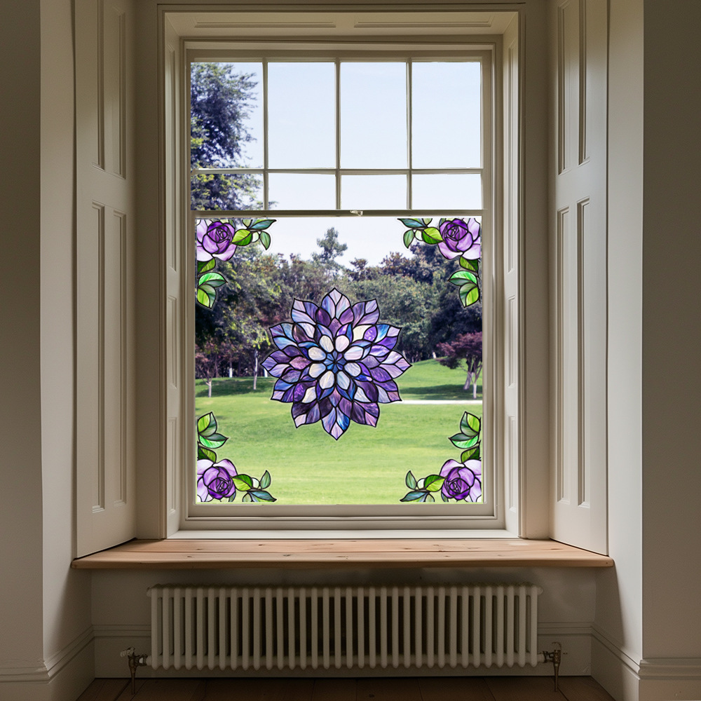 CBCJD301-320 양면 컬러 코너 꽃 정전기 유리 스티커 새 충돌 방지 PVC 경고 창 필름