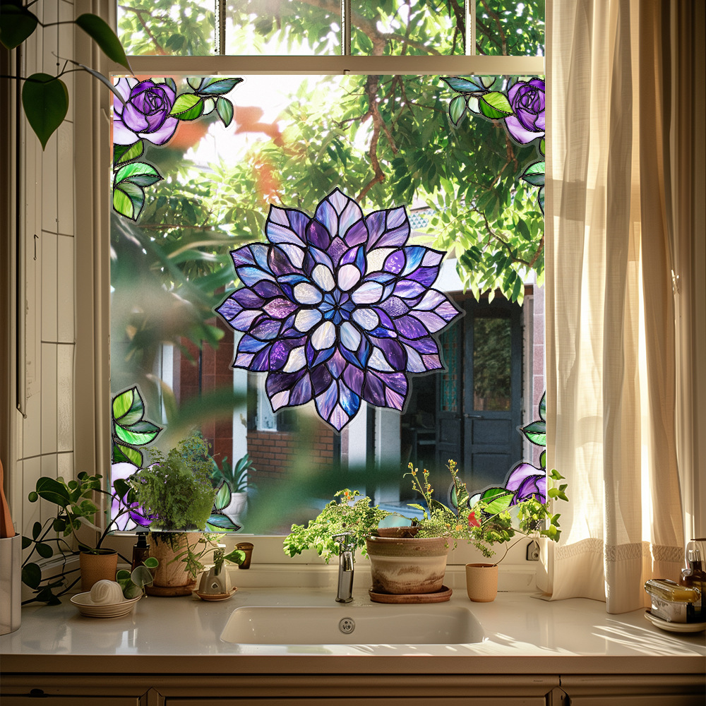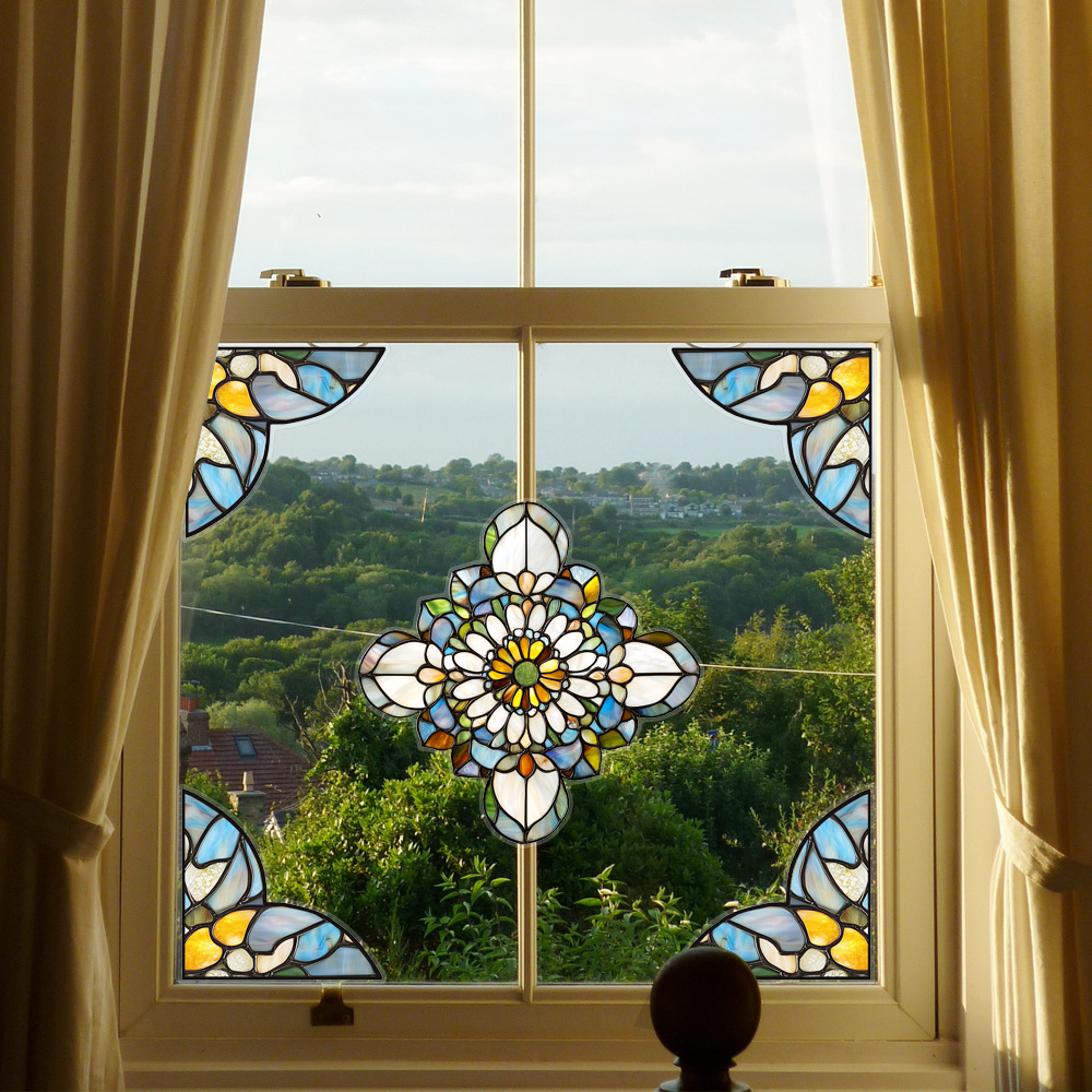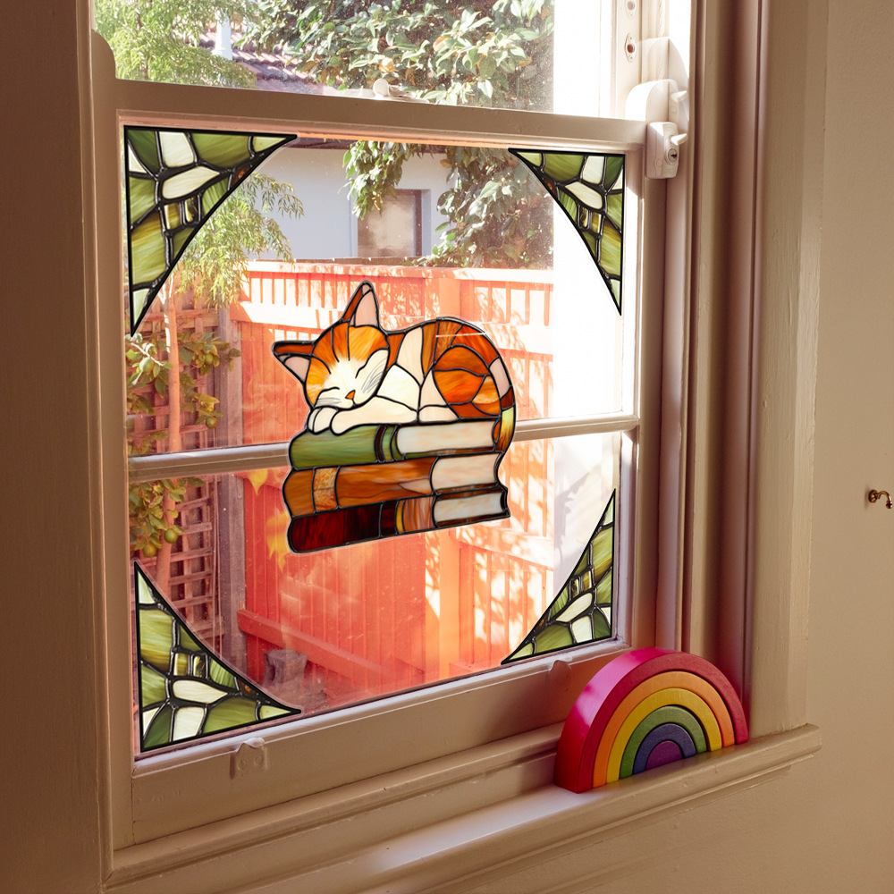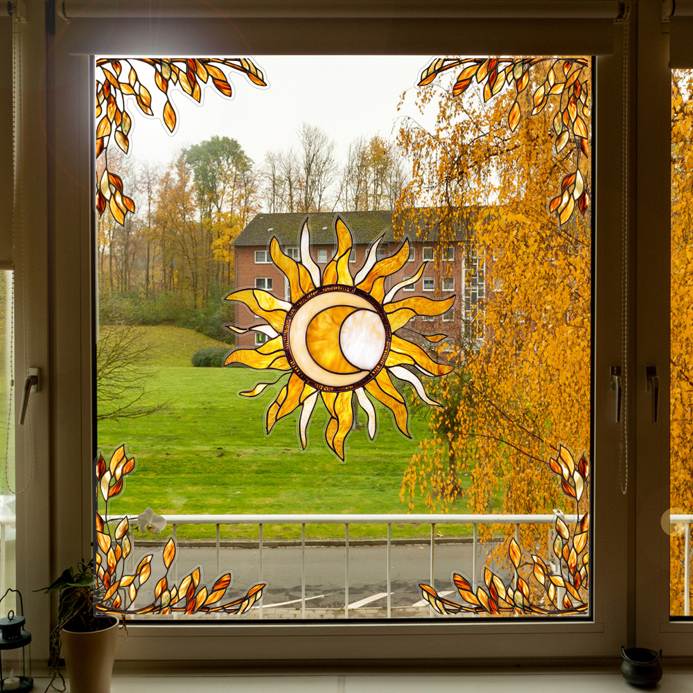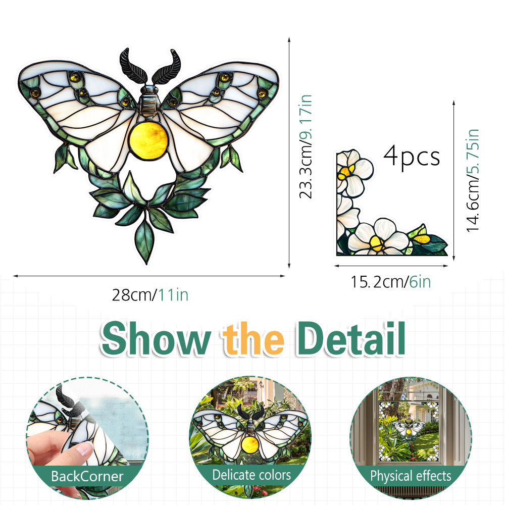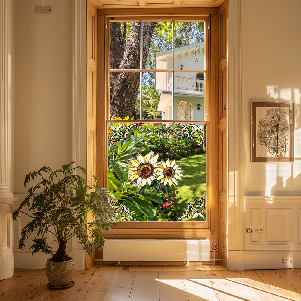 CBCJD301-320 양면 컬러 코너 꽃 정전기 유리 스티커 새 충돌 방지 PVC 경고 창 필름