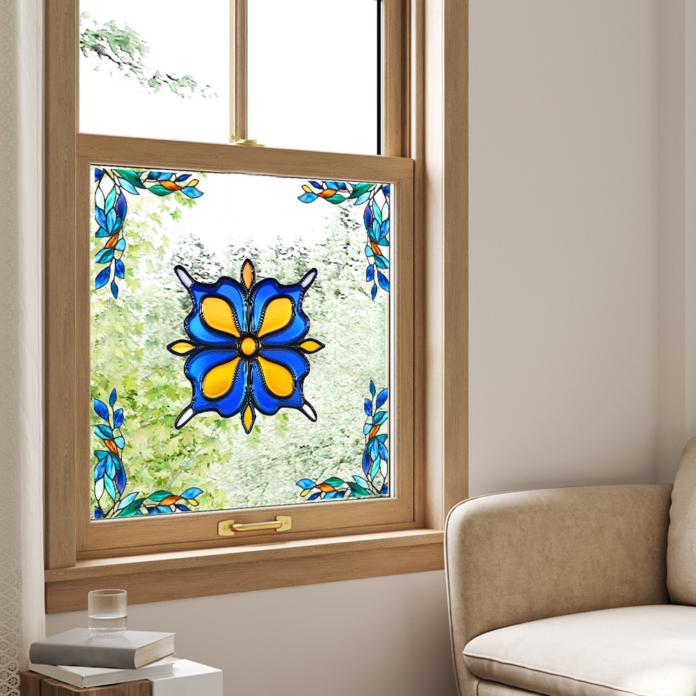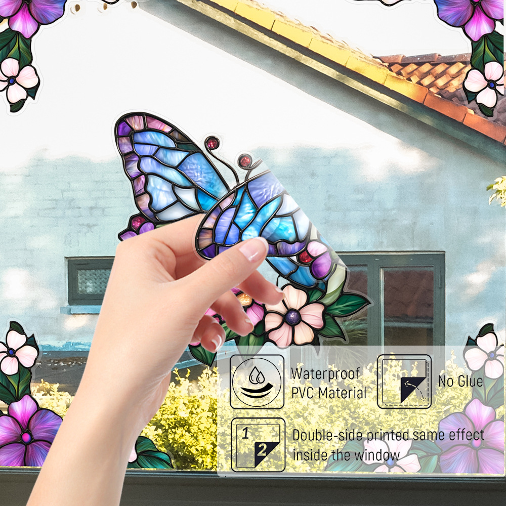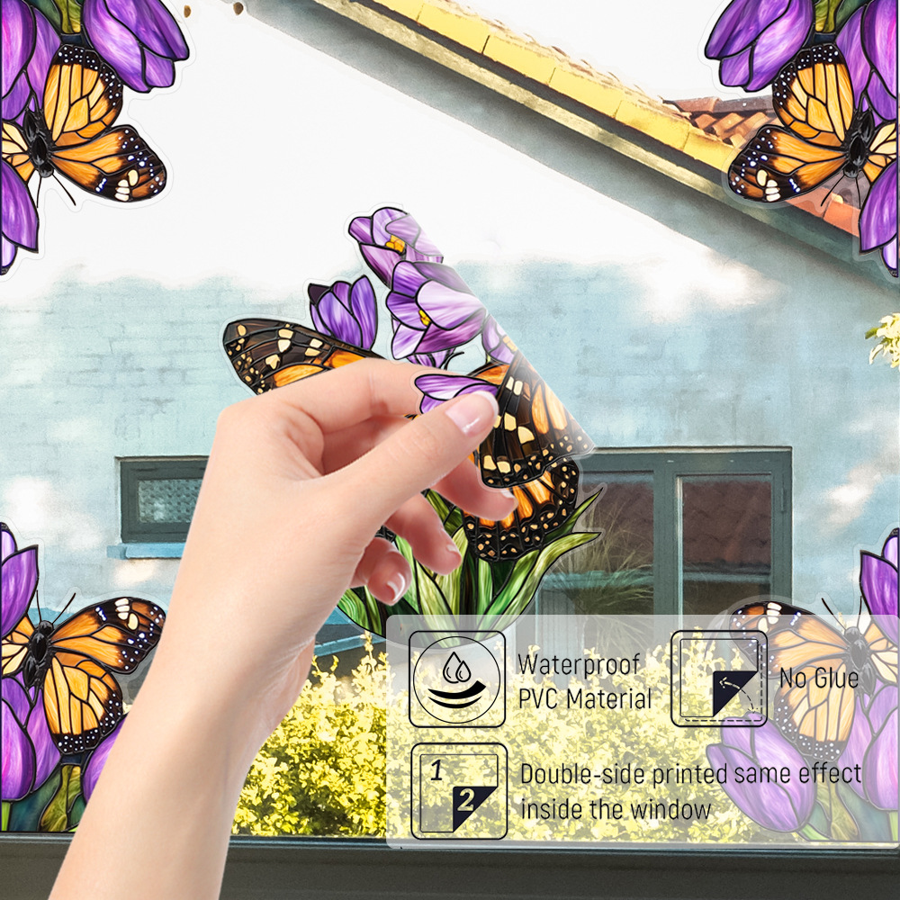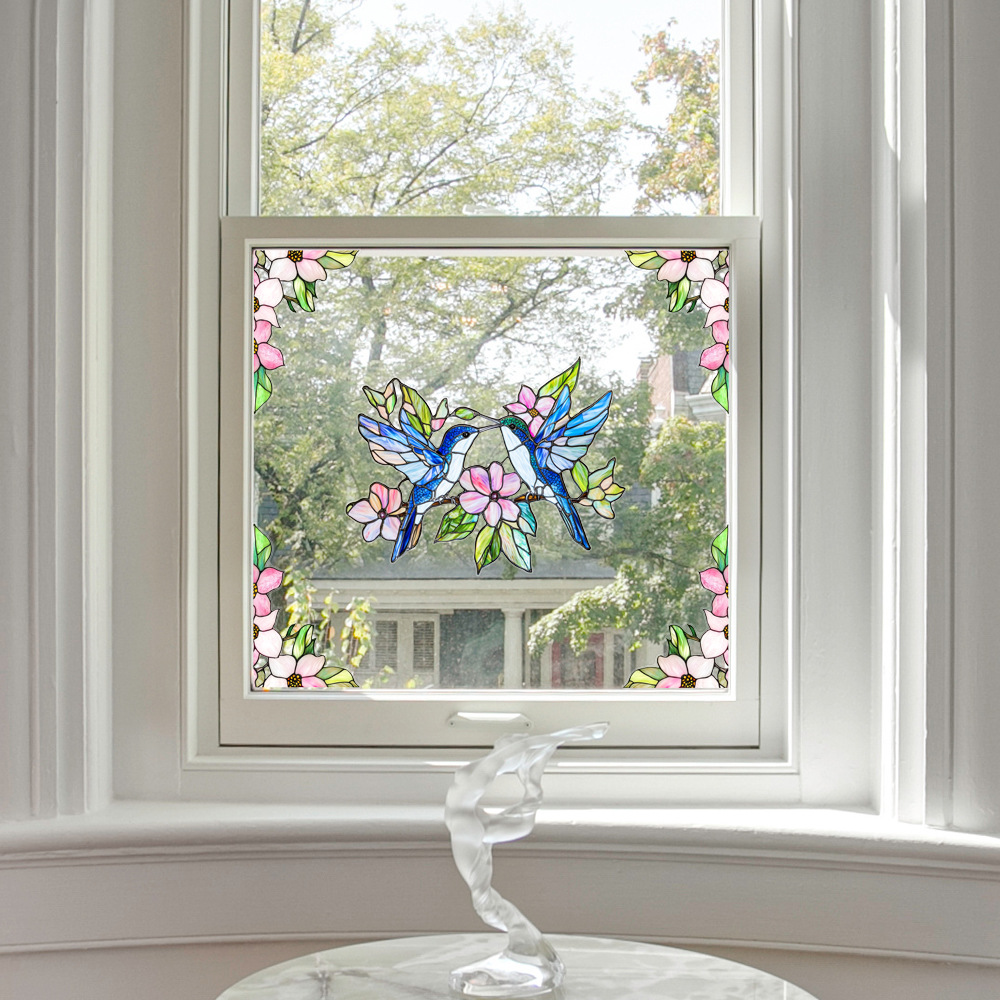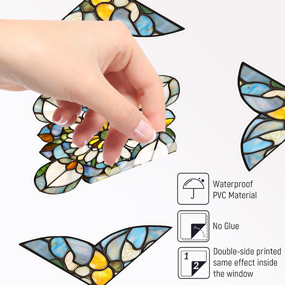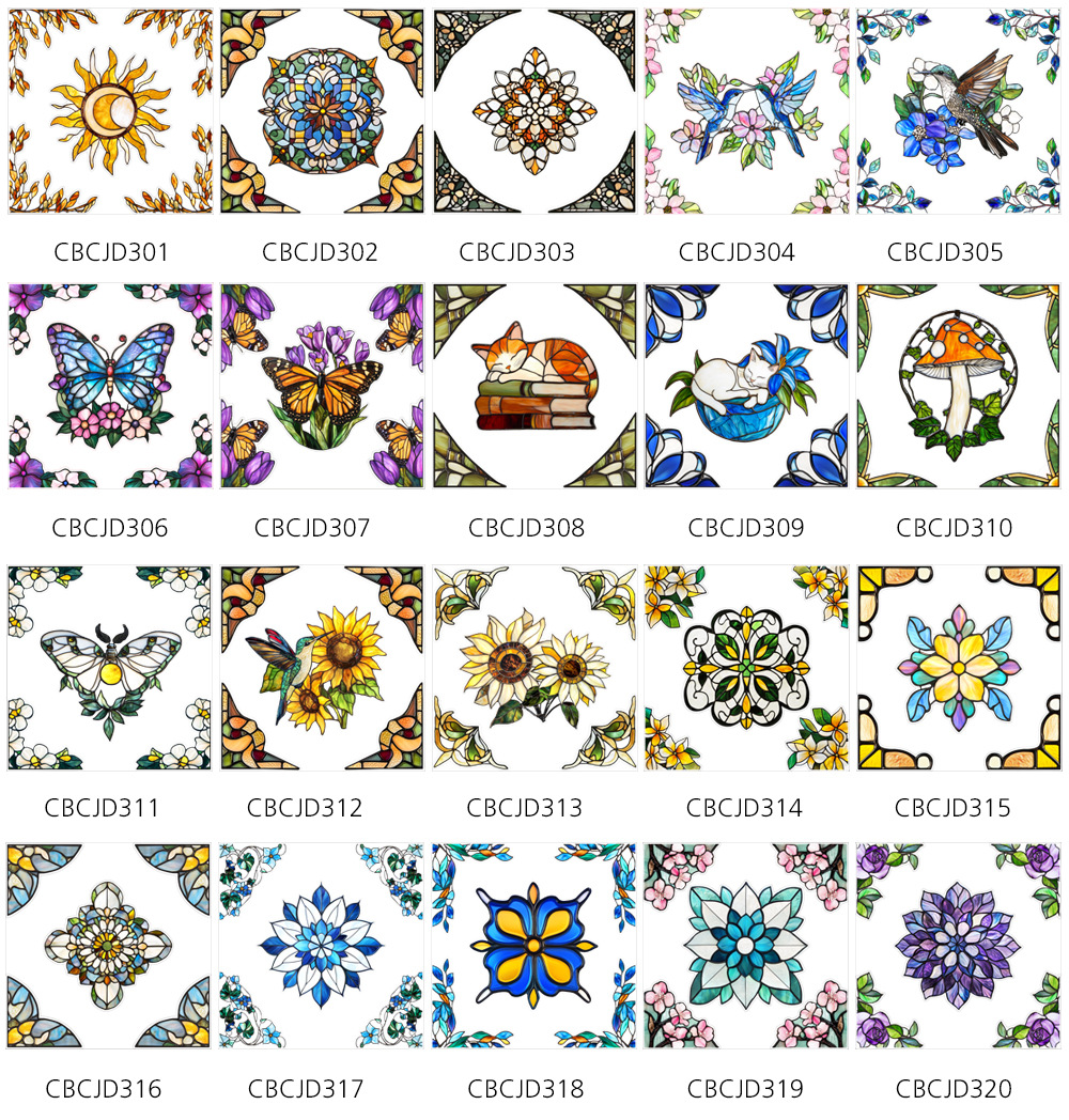 CBCJD301-320 양면 컬러 코너 꽃 정전기 유리 스티커 새 충돌 방지 PVC 경고 창 필름스토어 가기