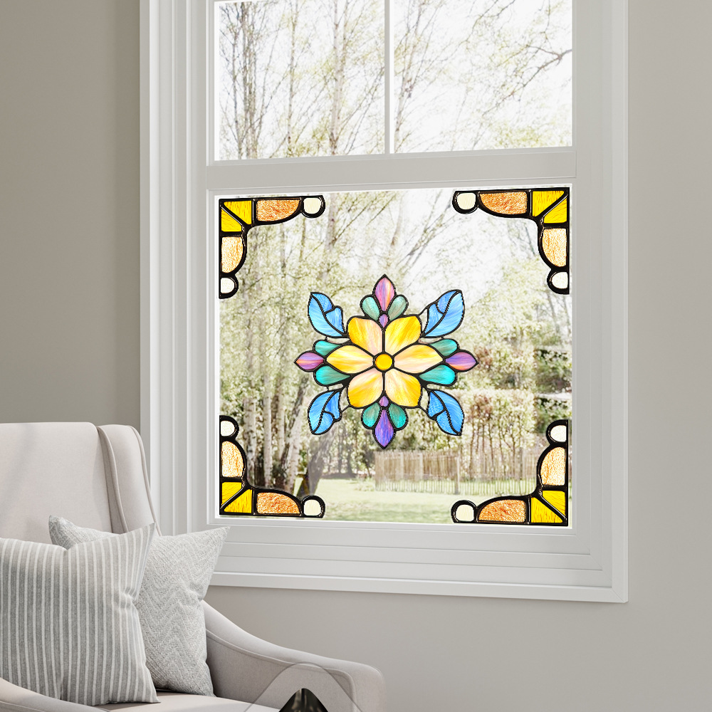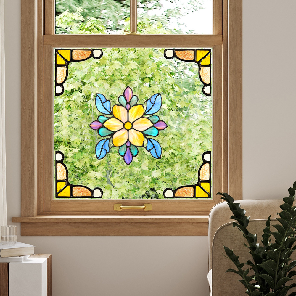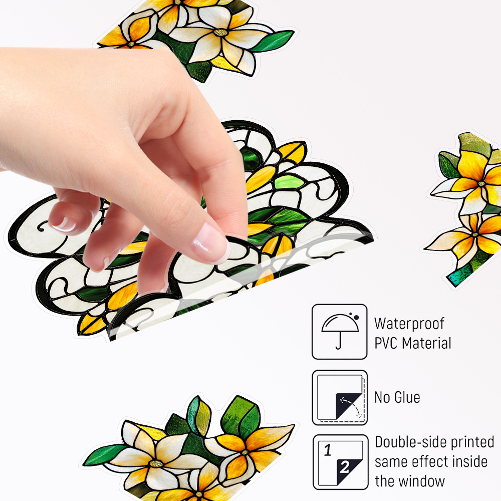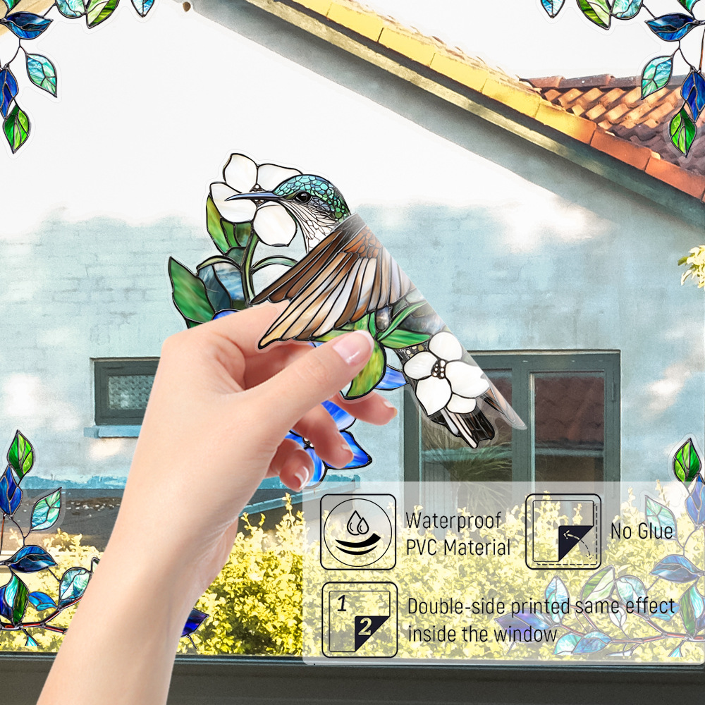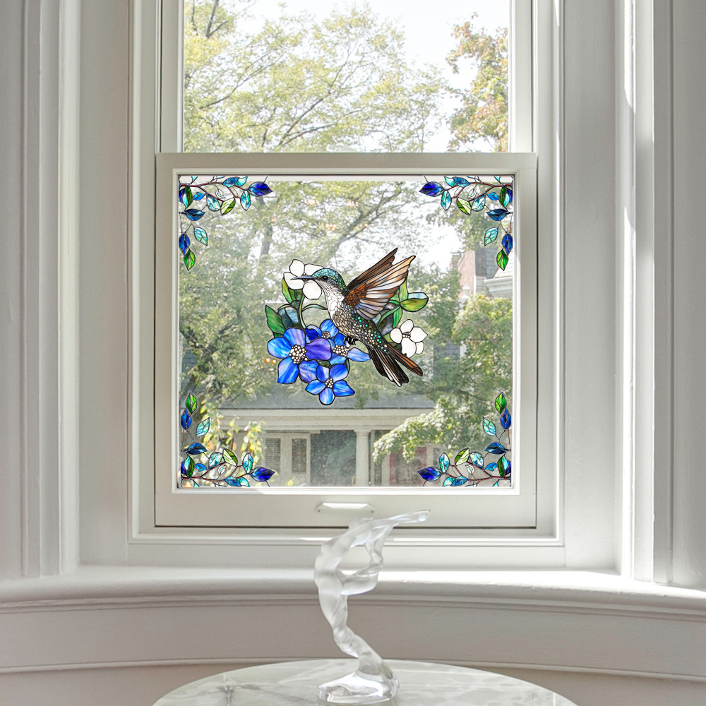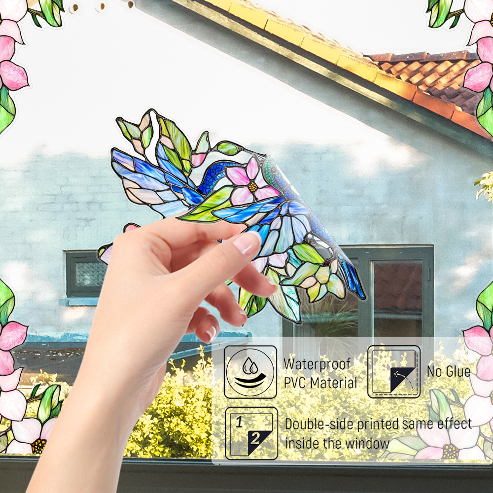 CBCJD301-320 양면 컬러 코너 꽃 정전기 유리 스티커 새 충돌 방지 PVC 경고 창 필름스토어 가기