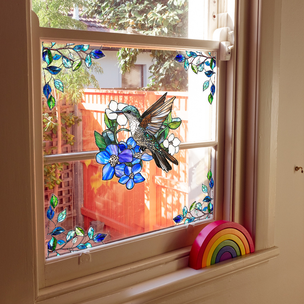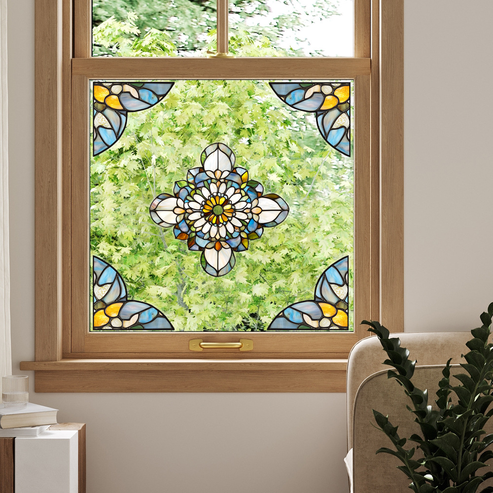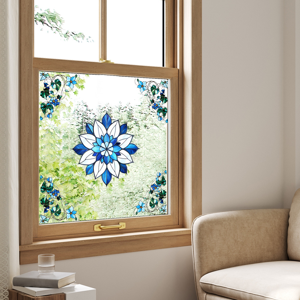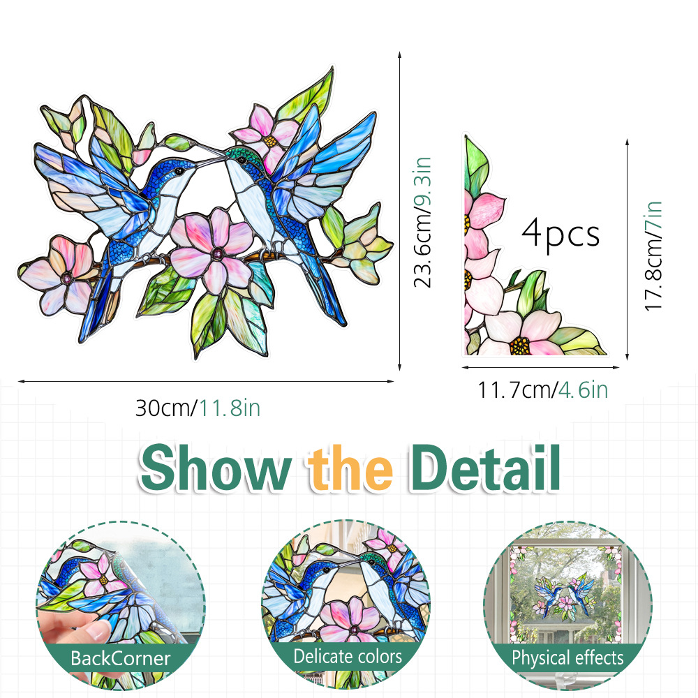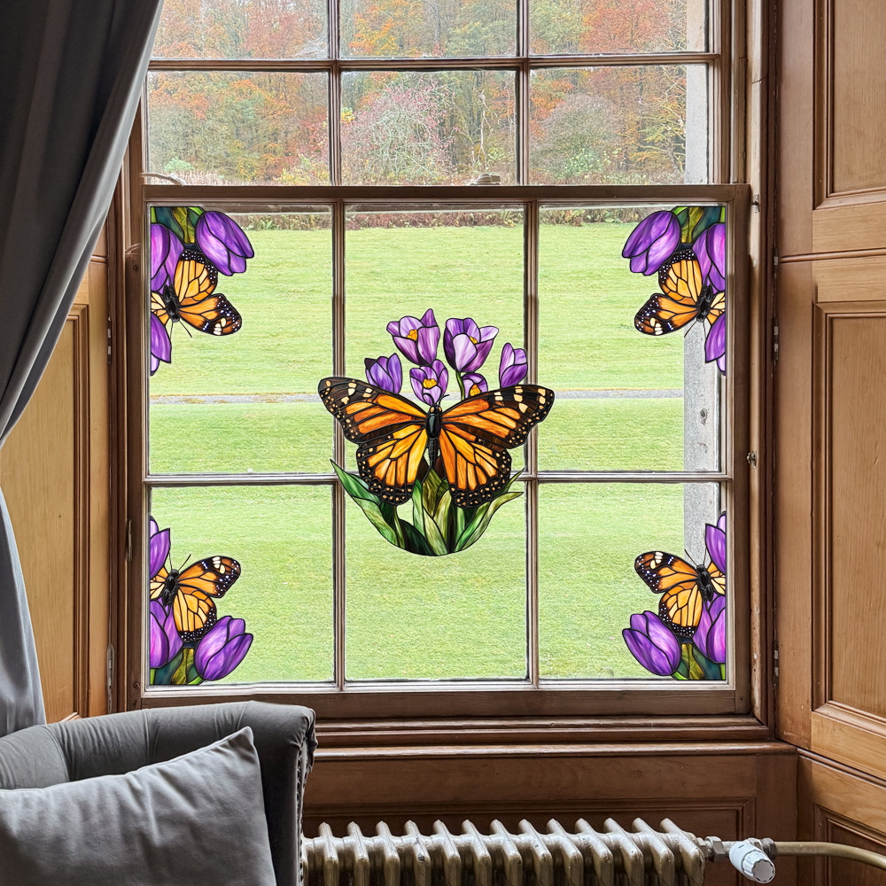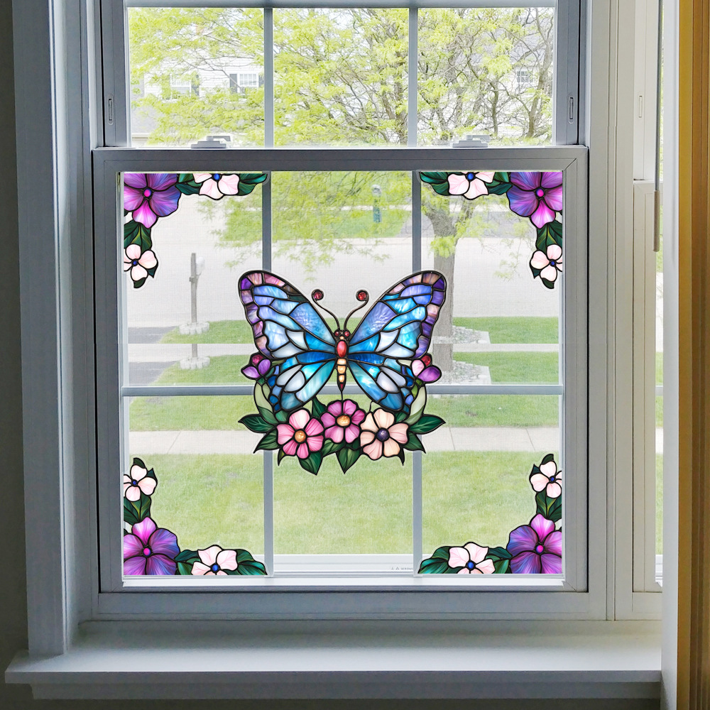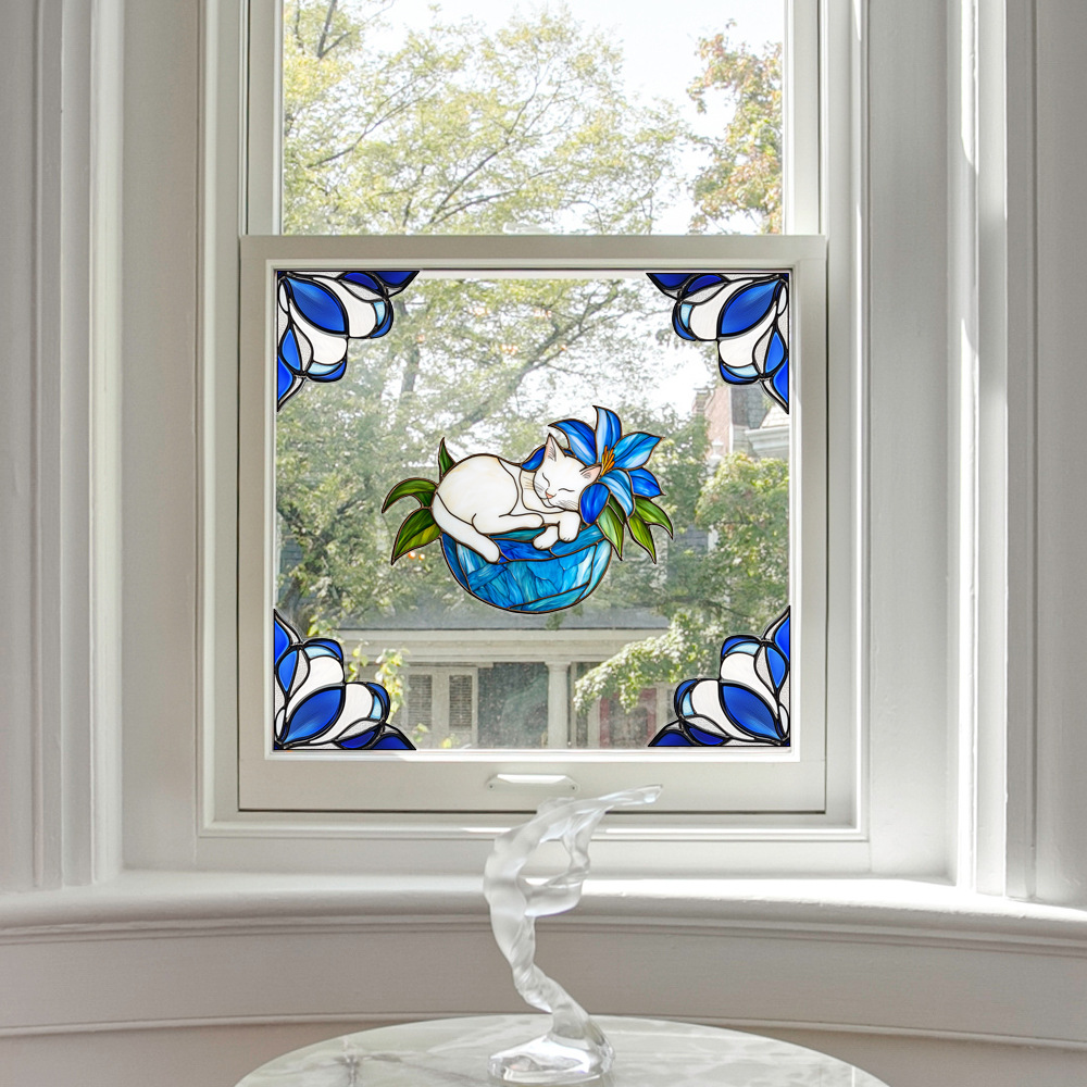 CBCJD301-320 양면 컬러 코너 꽃 정전기 유리 스티커 새 충돌 방지 PVC 경고 창 필름스토어 가기