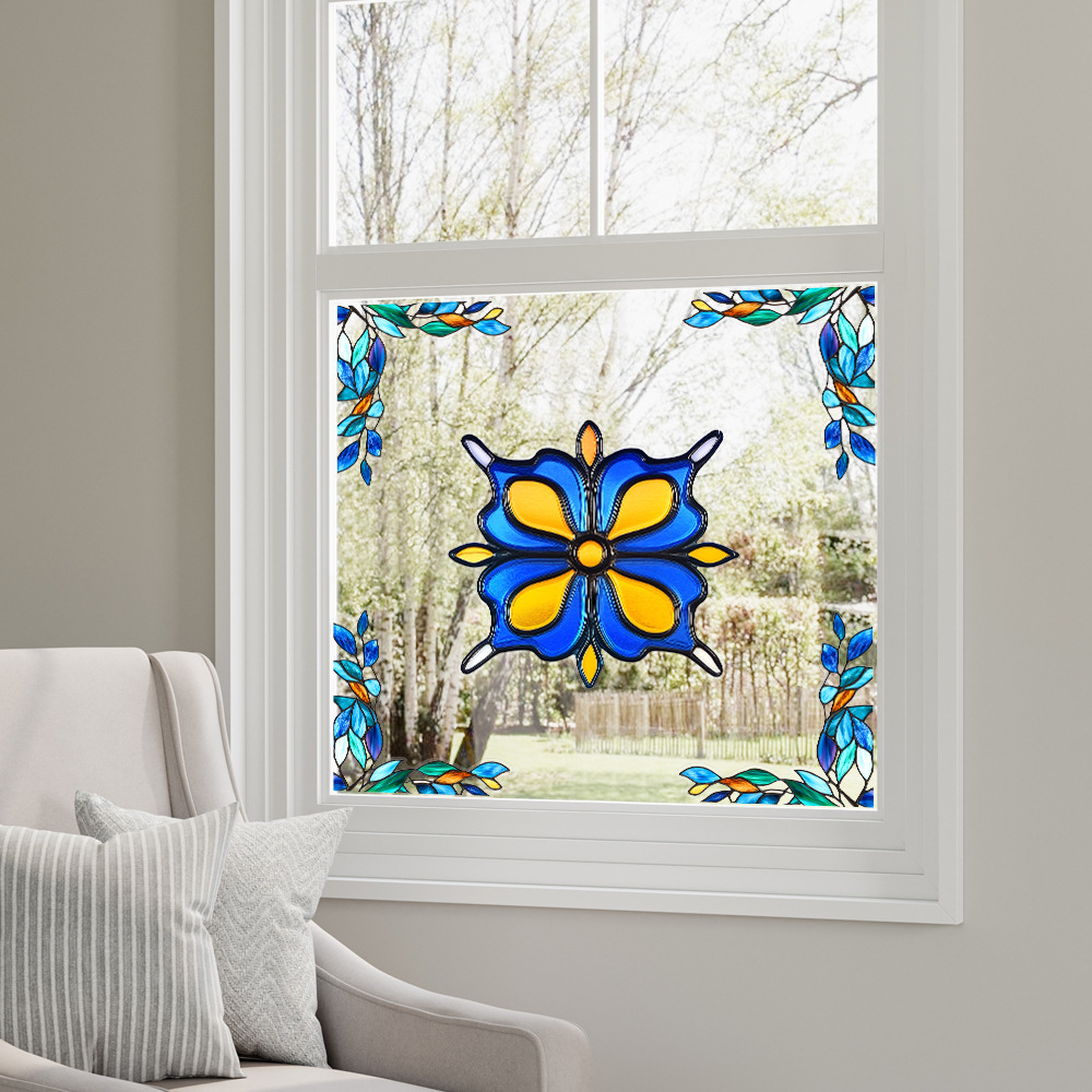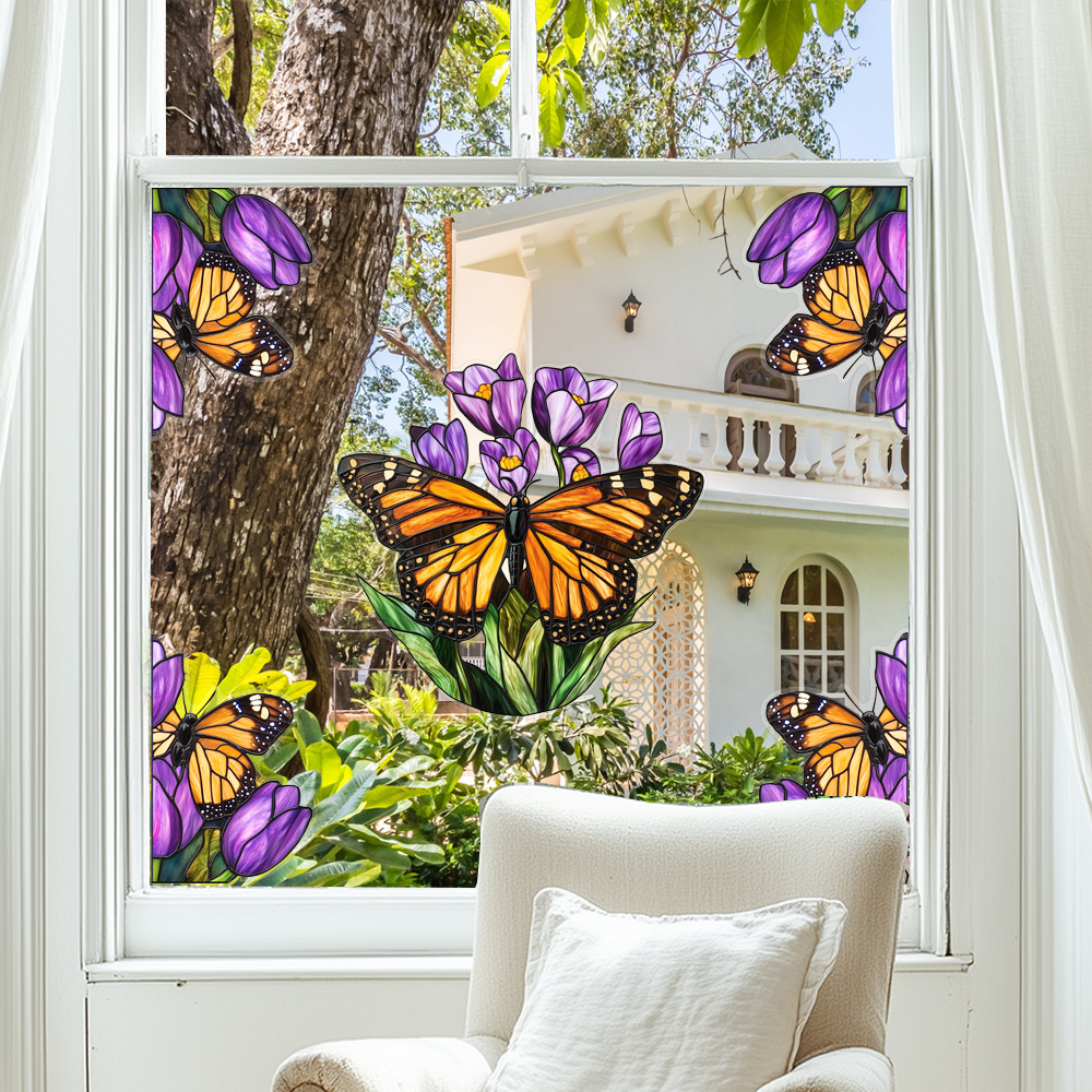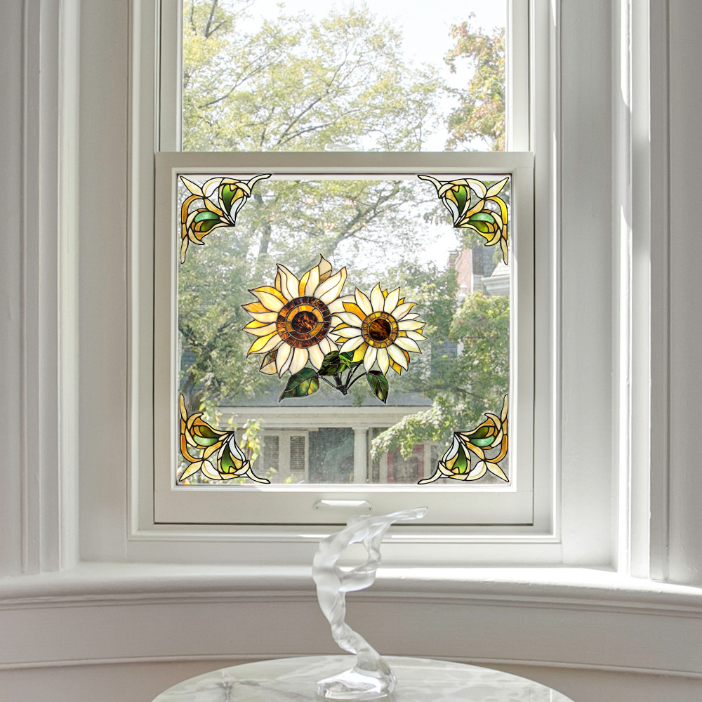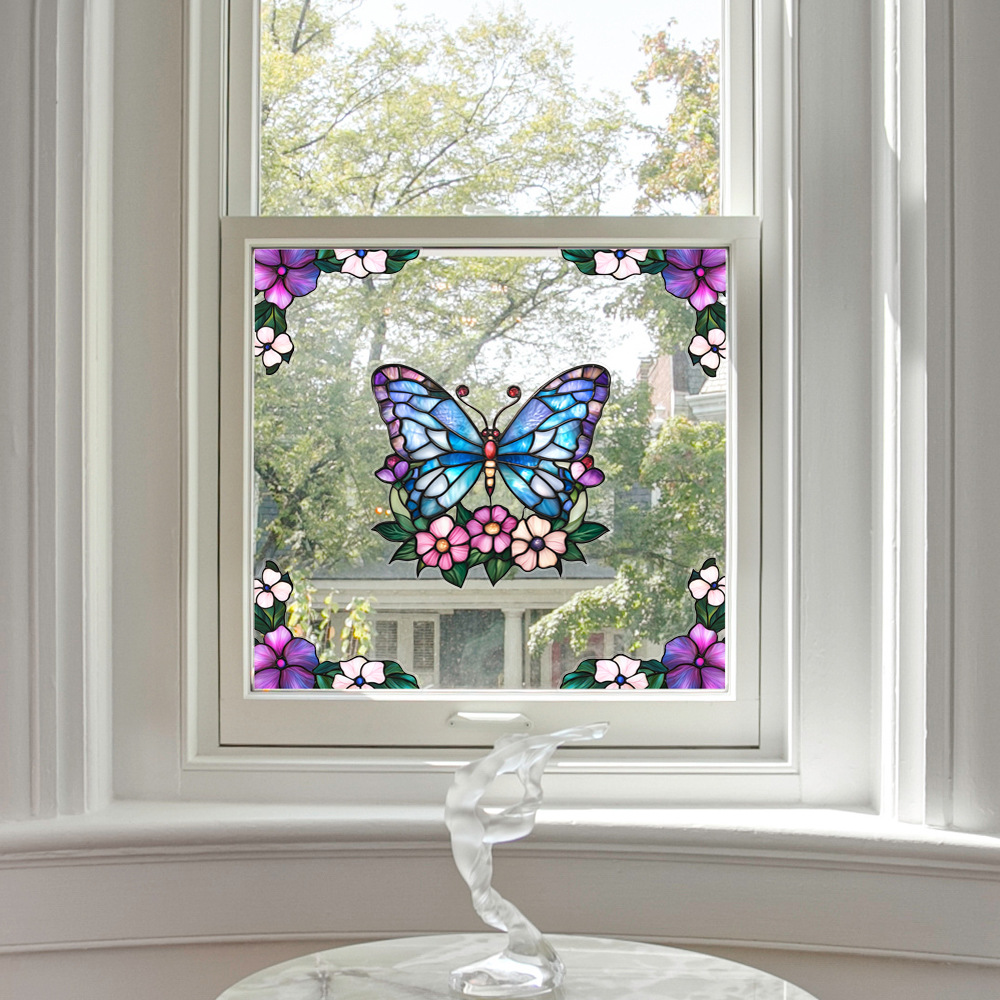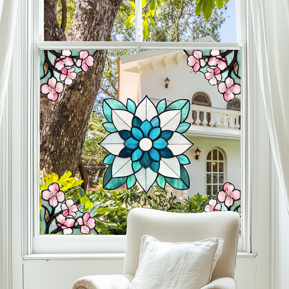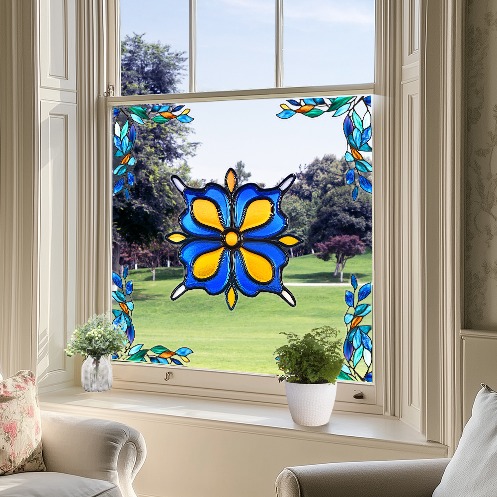 CBCJD301-320 양면 컬러 코너 꽃 정전기 유리 스티커 새 충돌 방지 PVC 경고 창 필름스토어 가기