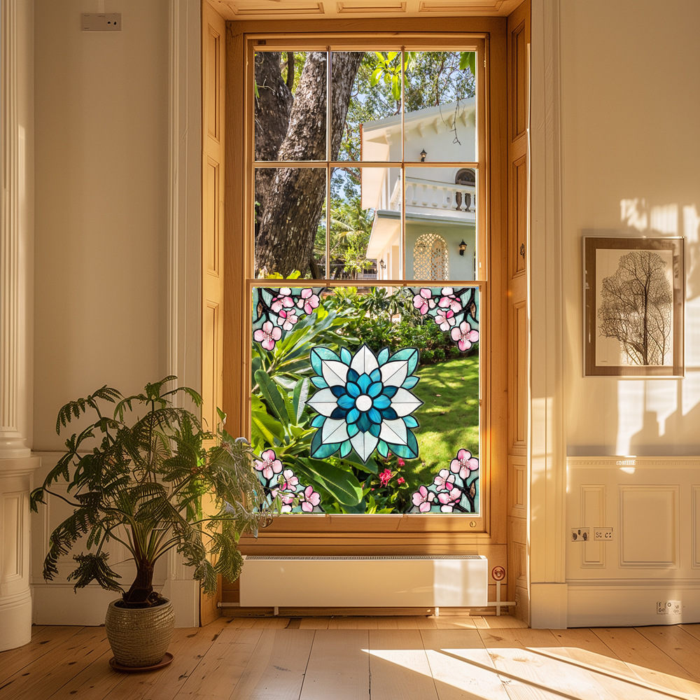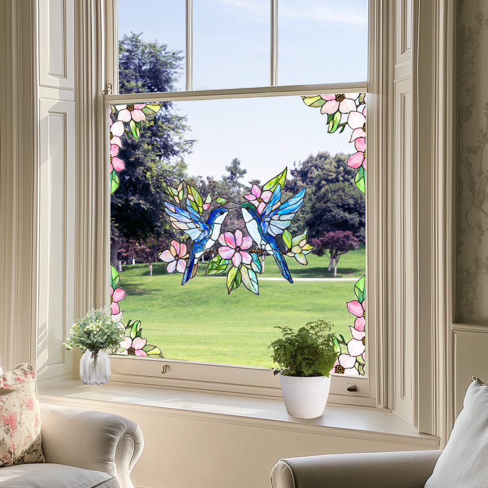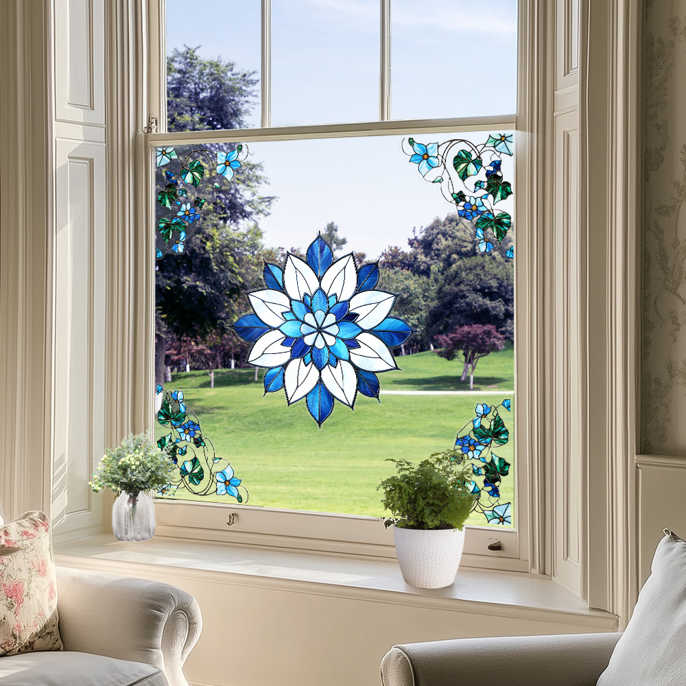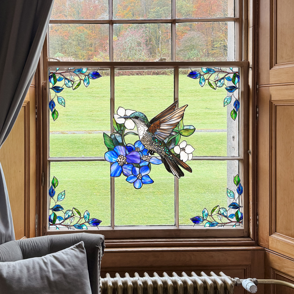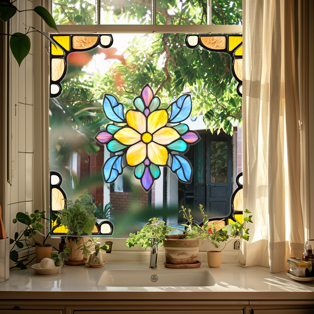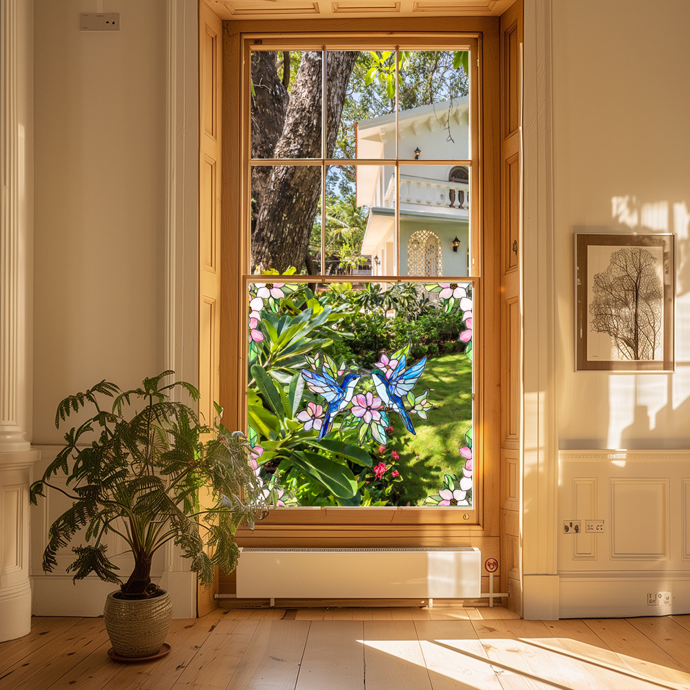 CBCJD301-320 양면 컬러 코너 꽃 정전기 유리 스티커 새 충돌 방지 PVC 경고 창 필름스토어 가기