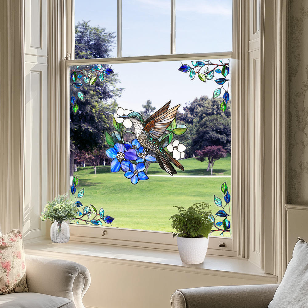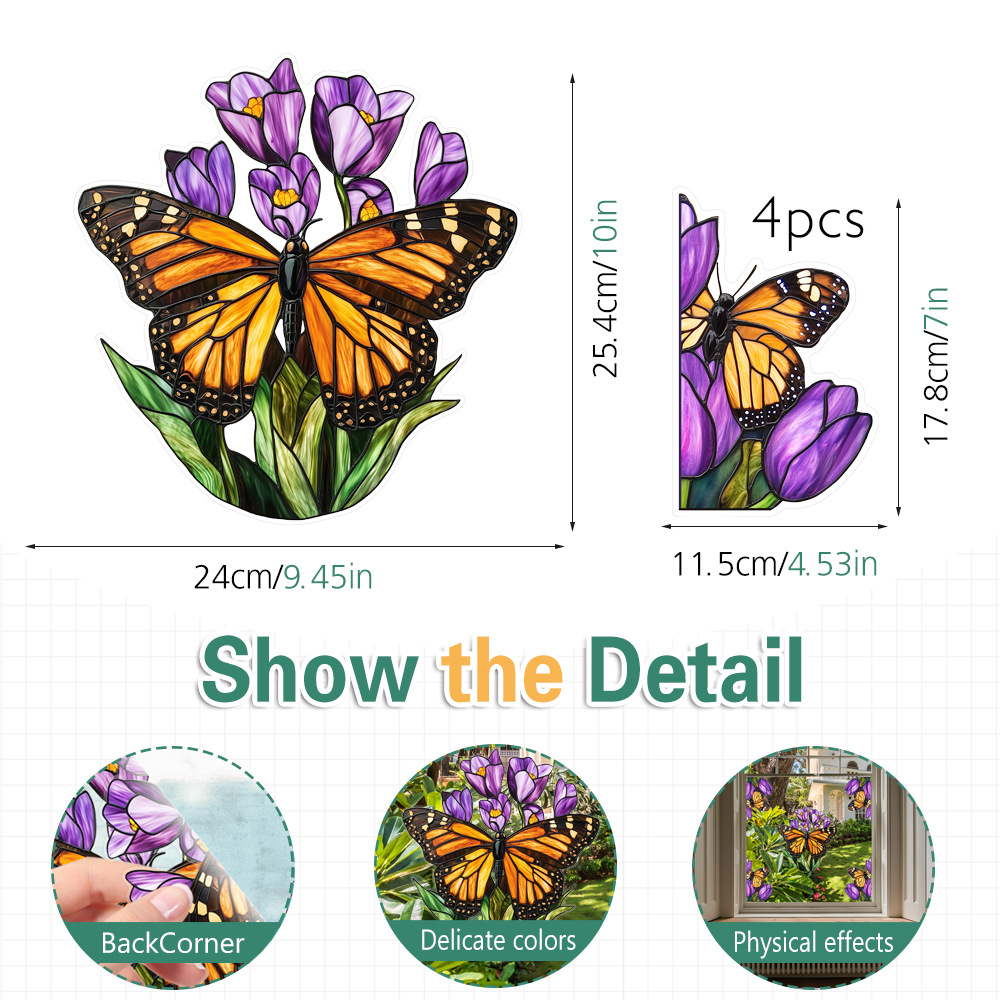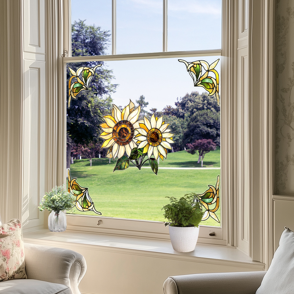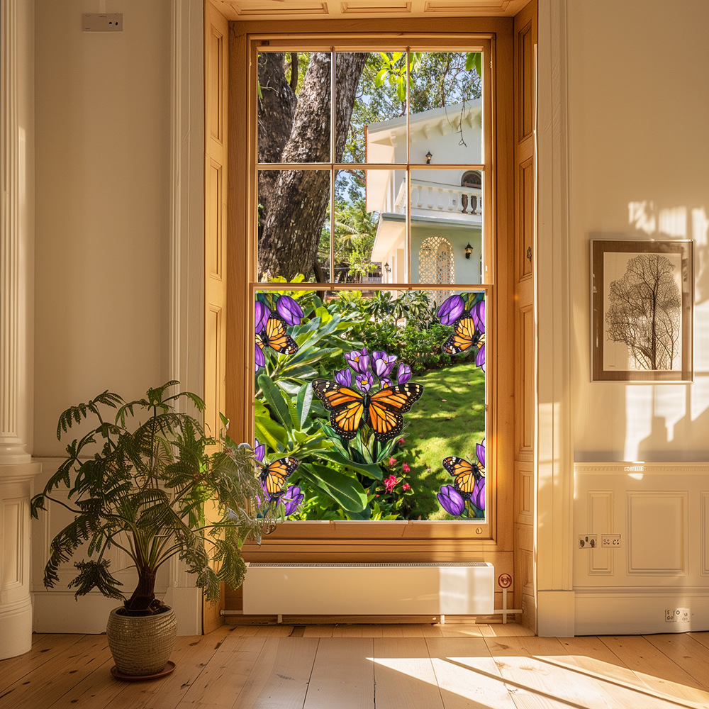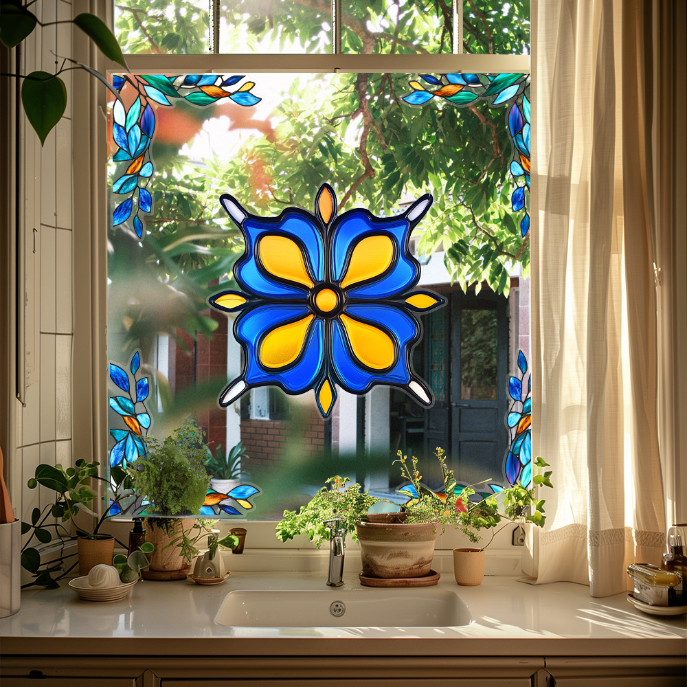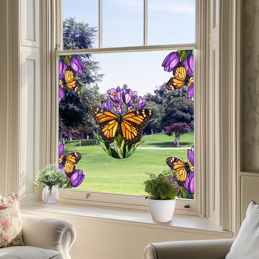 CBCJD301-320 양면 컬러 코너 꽃 정전기 유리 스티커 새 충돌 방지 PVC 경고 창 필름스토어 가기