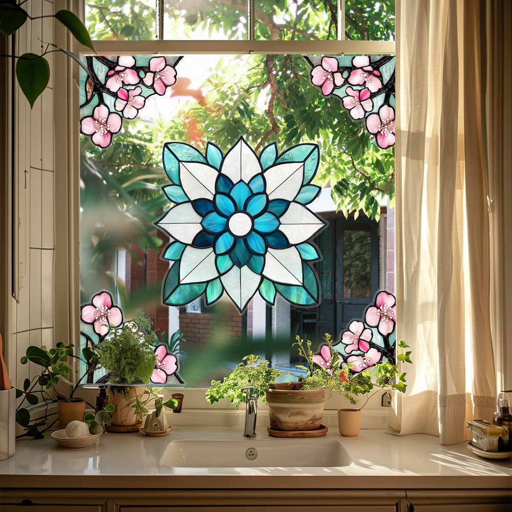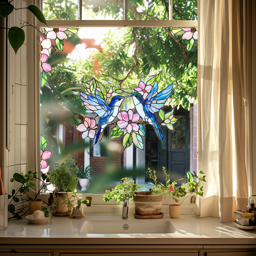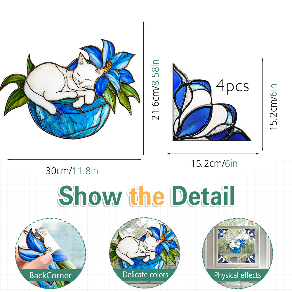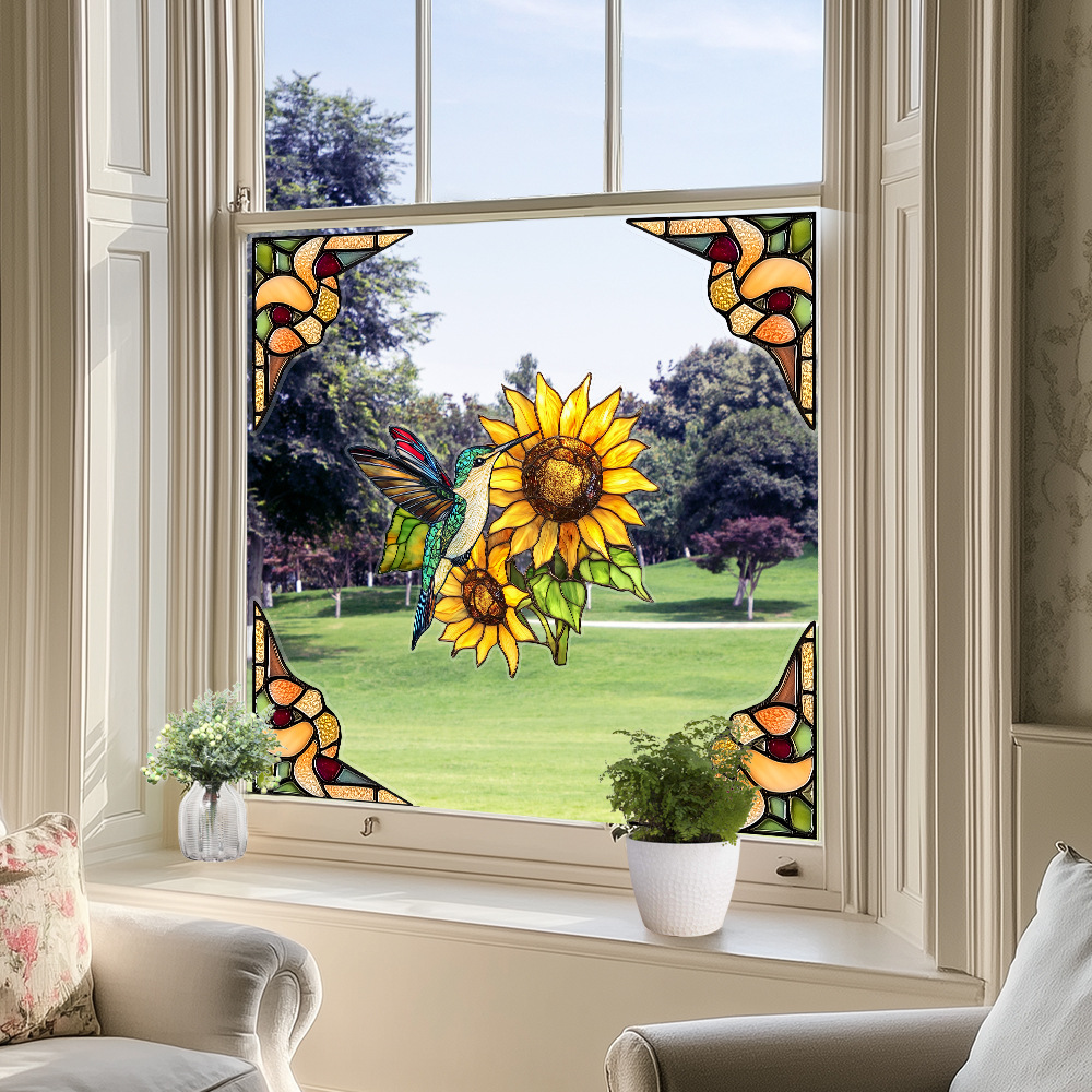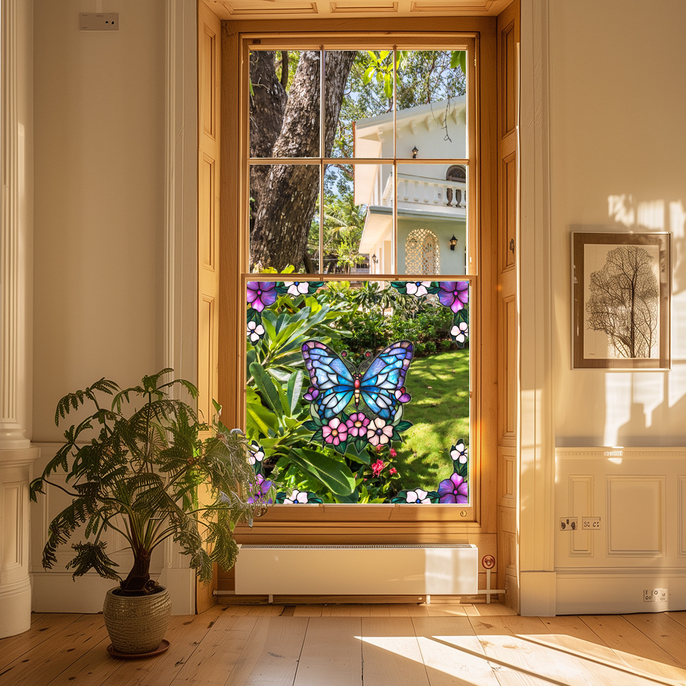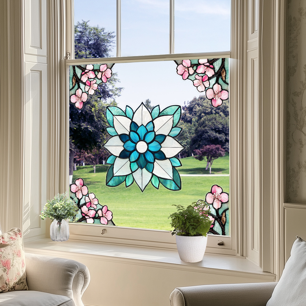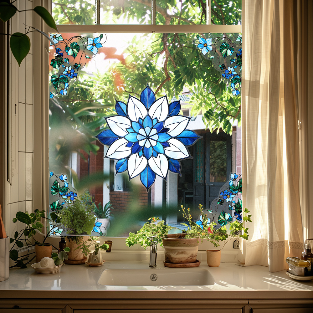 CBCJD301-320 양면 컬러 코너 꽃 정전기 유리 스티커 새 충돌 방지 PVC 경고 창 필름스토어 가기
