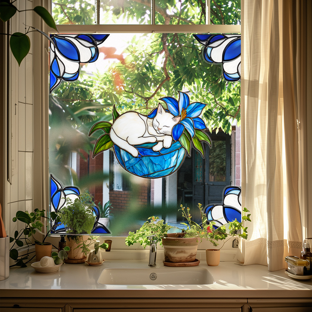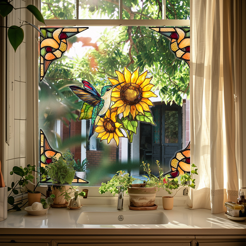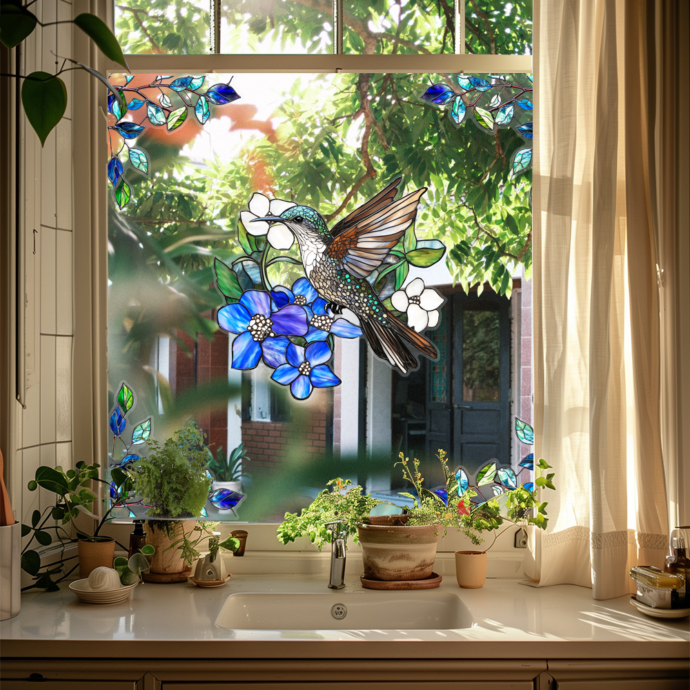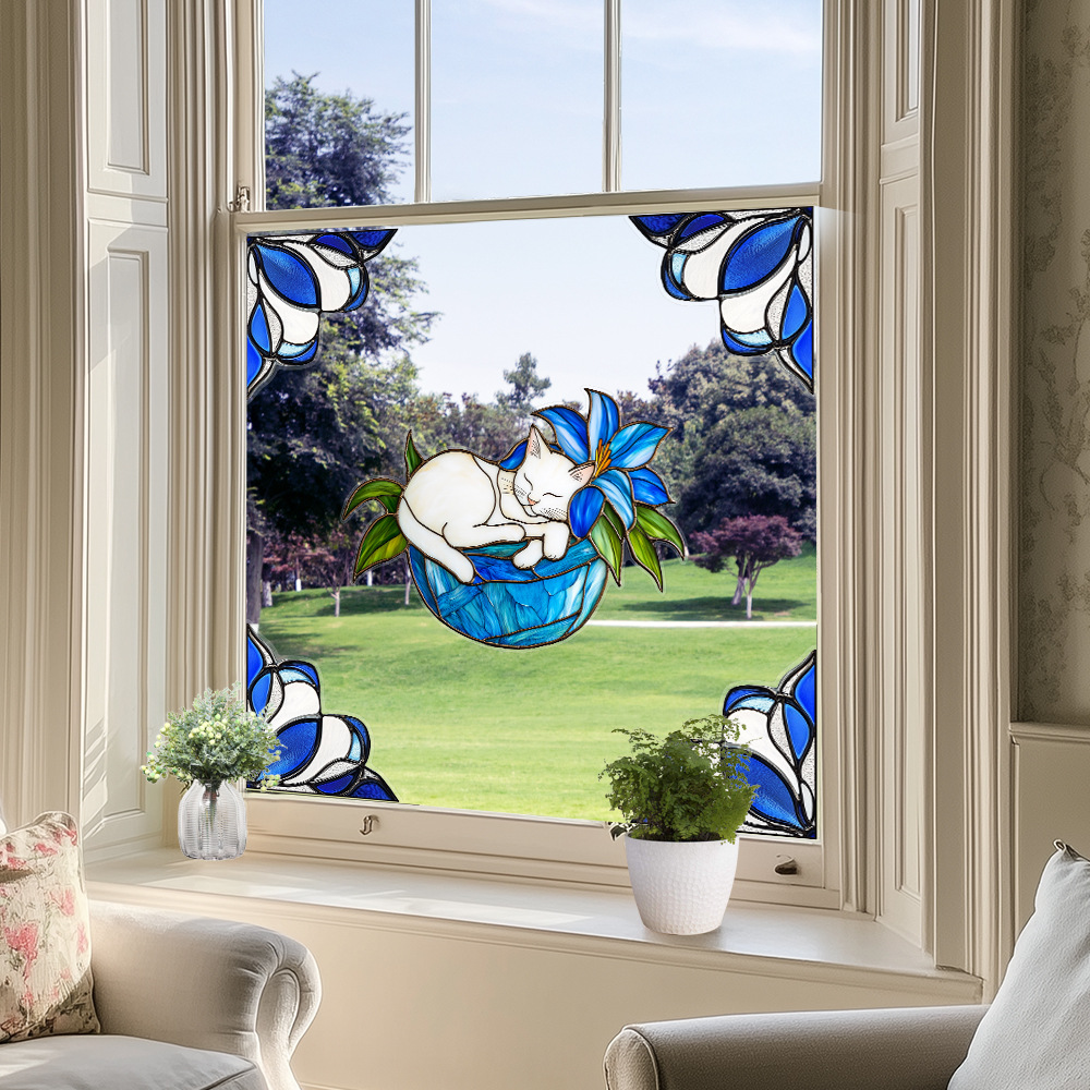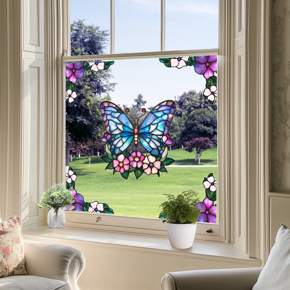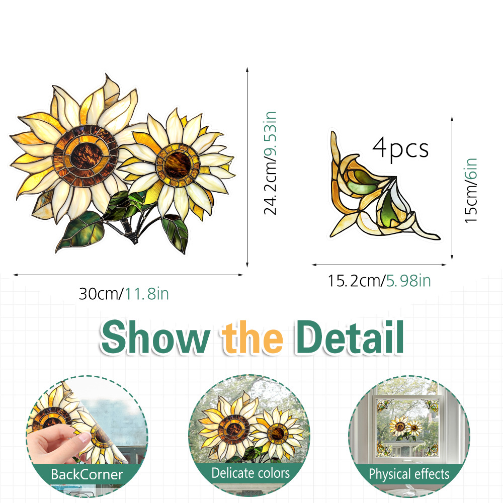 CBCJD301-320 양면 컬러 코너 꽃 정전기 유리 스티커 새 충돌 방지 PVC 경고 창 필름스토어 가기