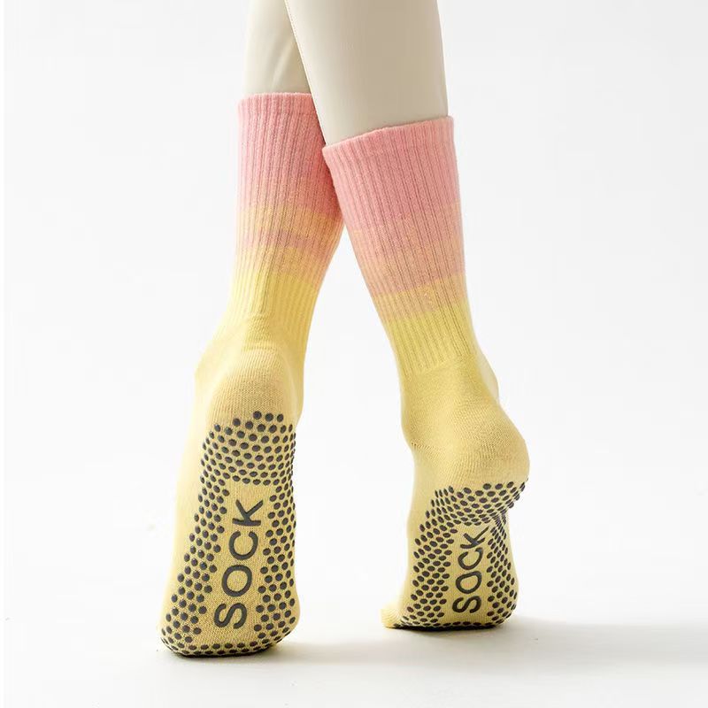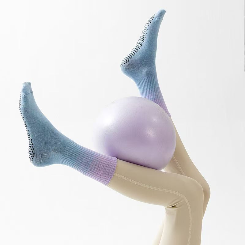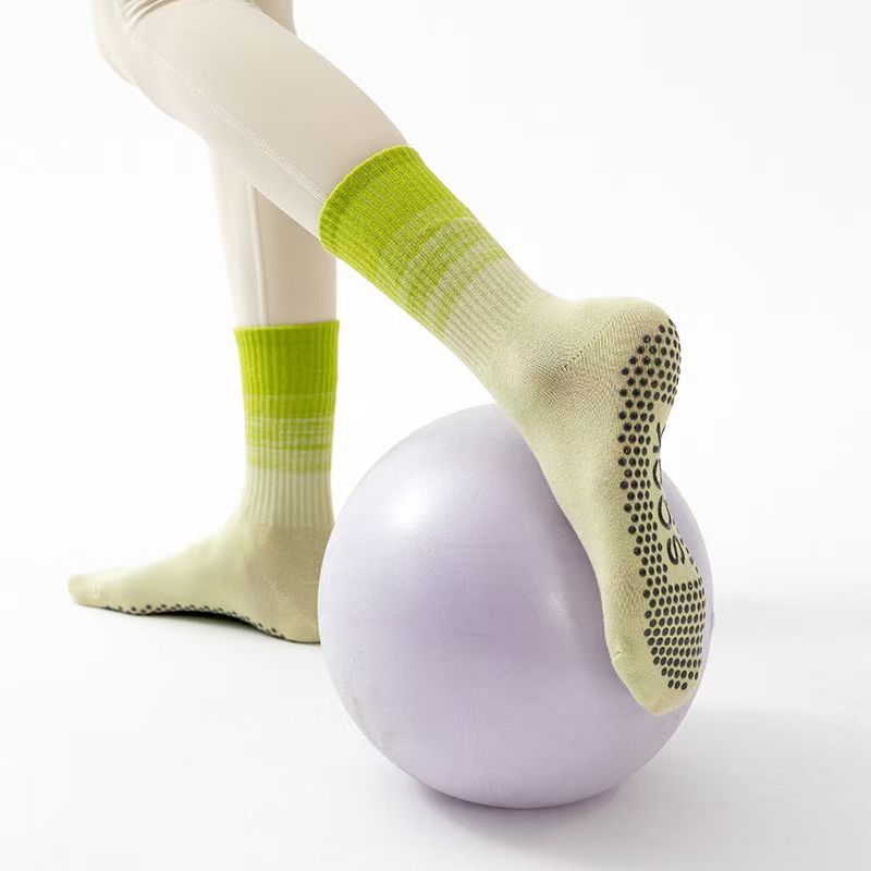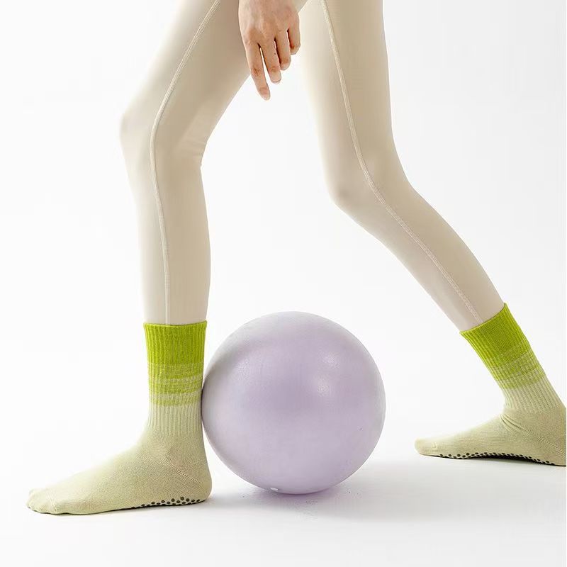 여성용 요가 양말, 중간 길이 양말, 전문 피트니스 운동, 필라테스, 실리콘 미끄럼 방지, 댄스, 롱 그라데이션, 편안함스토어 가기