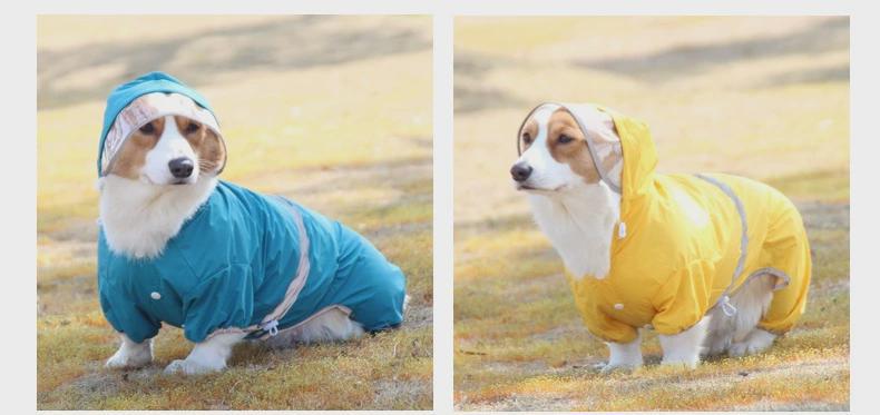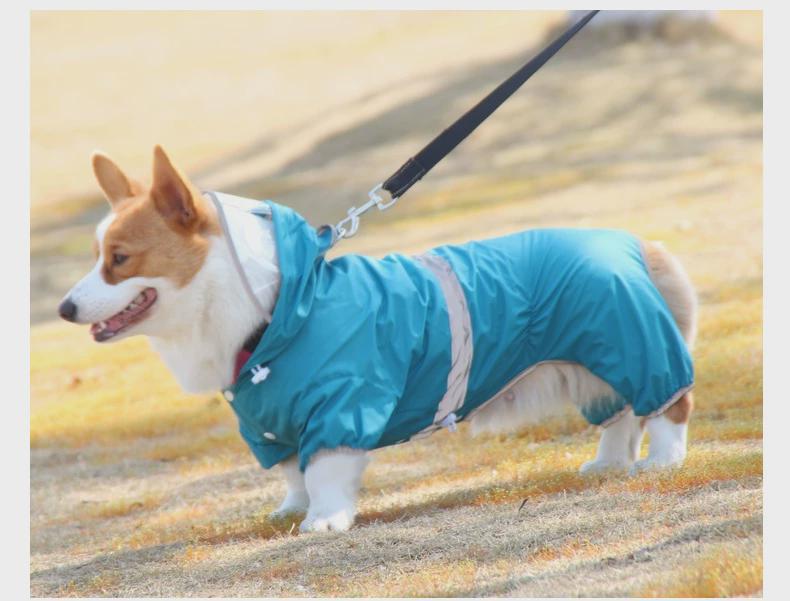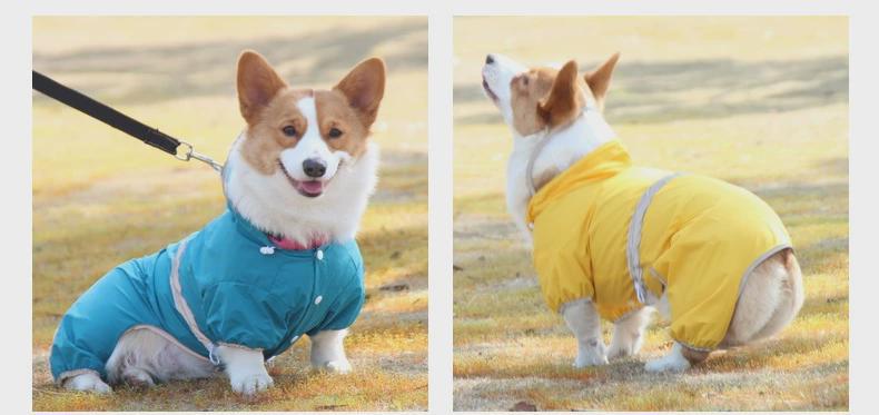코기 개 비옷 배꼽 보호 코기 개 옷 모든 것을 포함하는 작은 개 4 다리 방수 애완 동물 용품스토어 가기