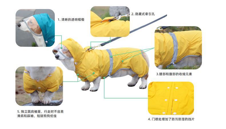 코기 개 비옷 배꼽 보호 코기 개 옷 모든 것을 포함하는 작은 개 4 다리 방수 애완 동물 용품